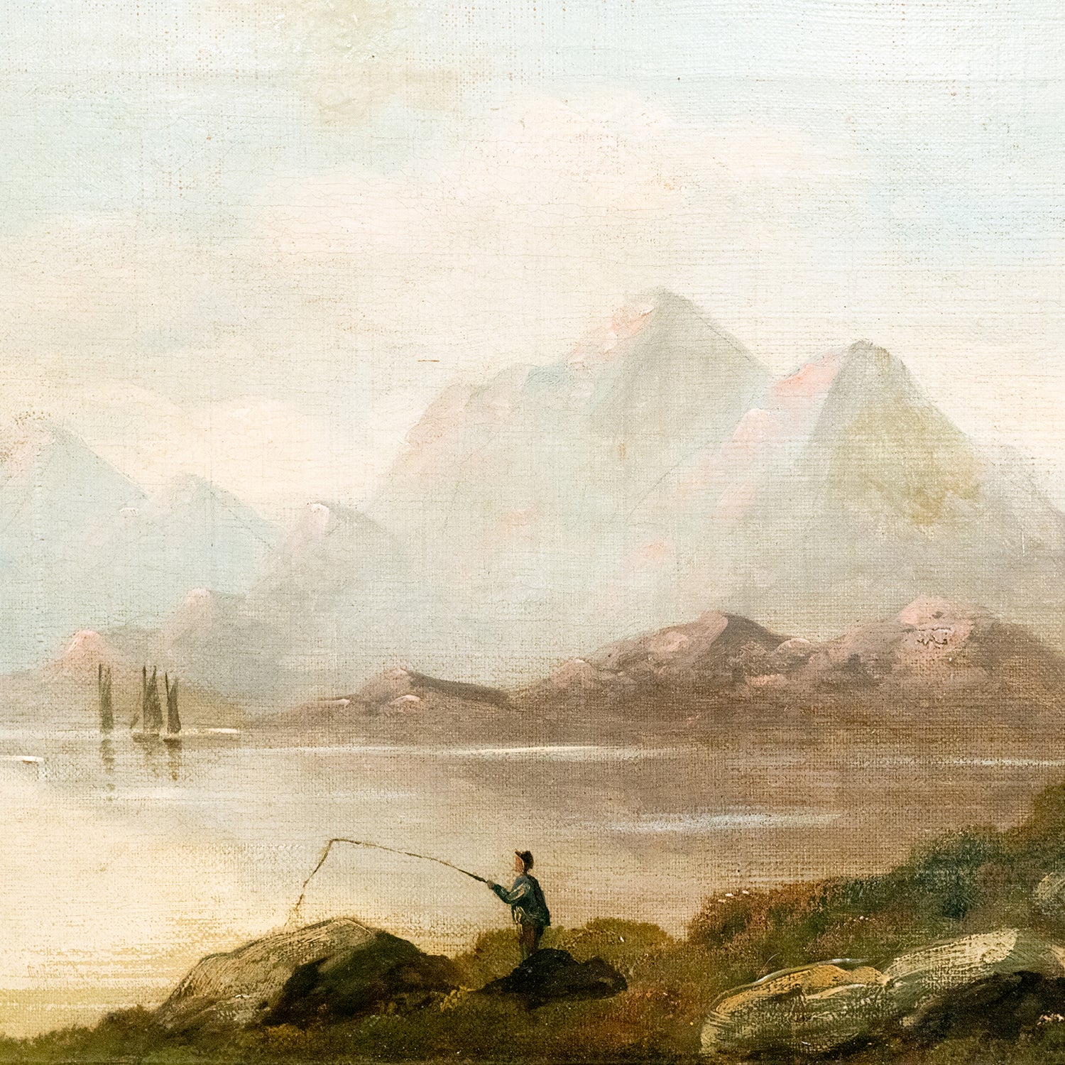 #22214 - Alfred De Breanski Sr. Oil on Canvas Scottish Loch with Fisherman
