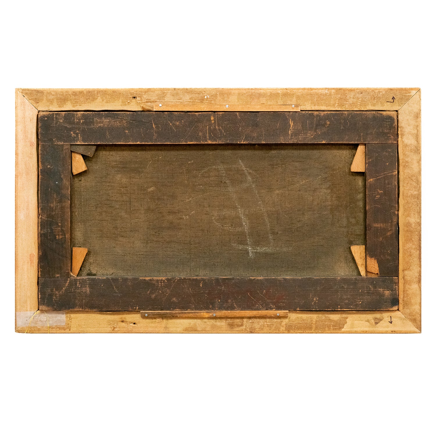 pPainting: 9 1/2 inches high by 17 1/2 inches wide. Framed: 12 1/2 inches high by 20 1/2 inches wide