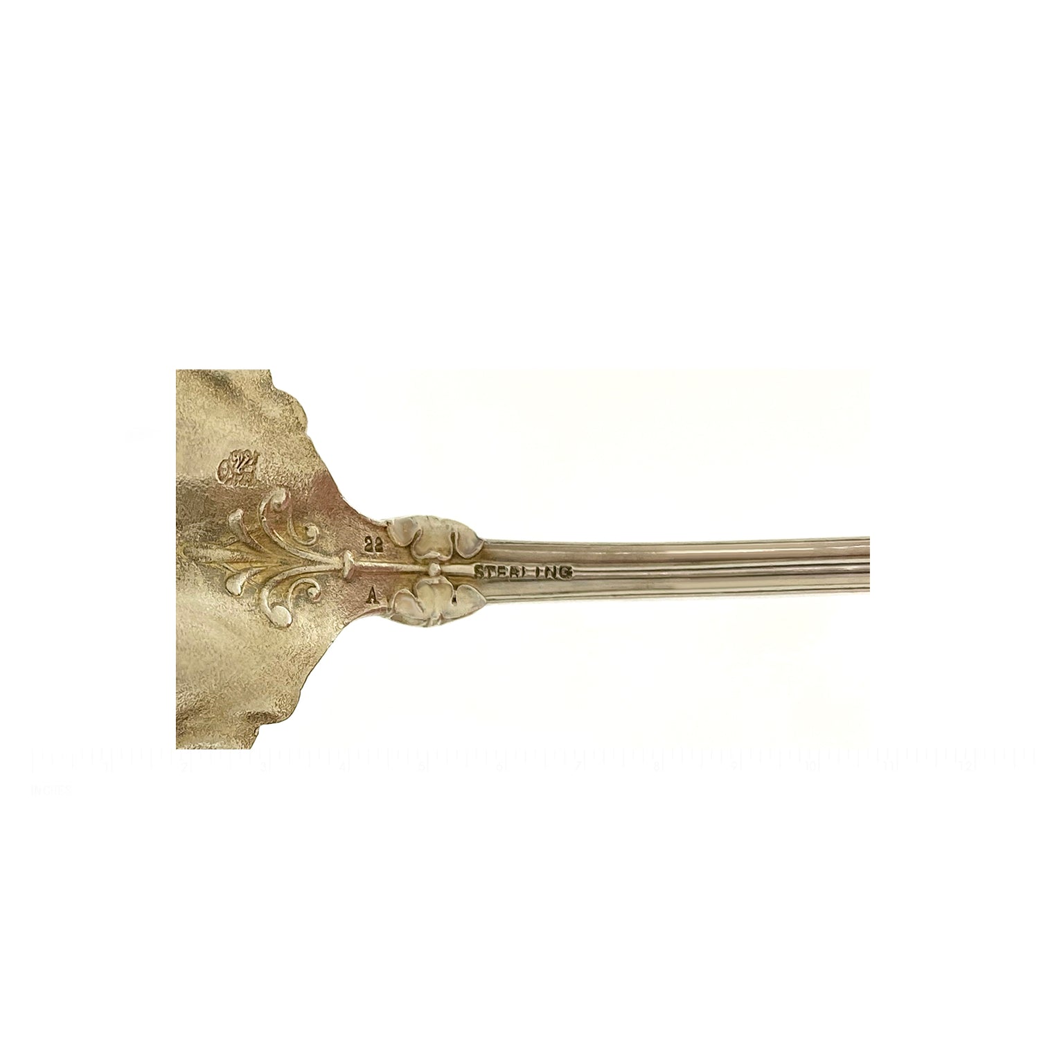 Circa 1880s, Sterling, by Whiting Manufacturing. Alhambra pattern with grape leaves and berries in the bowl. The entire bowl displays an even matte gold wash with beautiful etched or bright-cut bowl. No monogram or removal. Excellent condition.