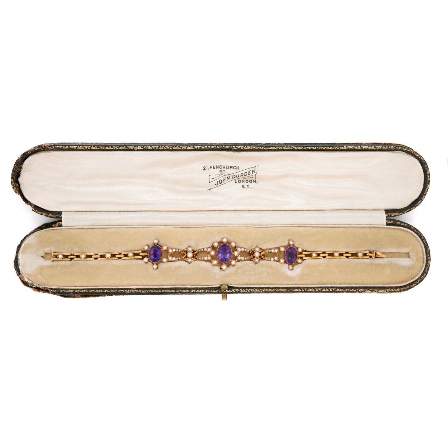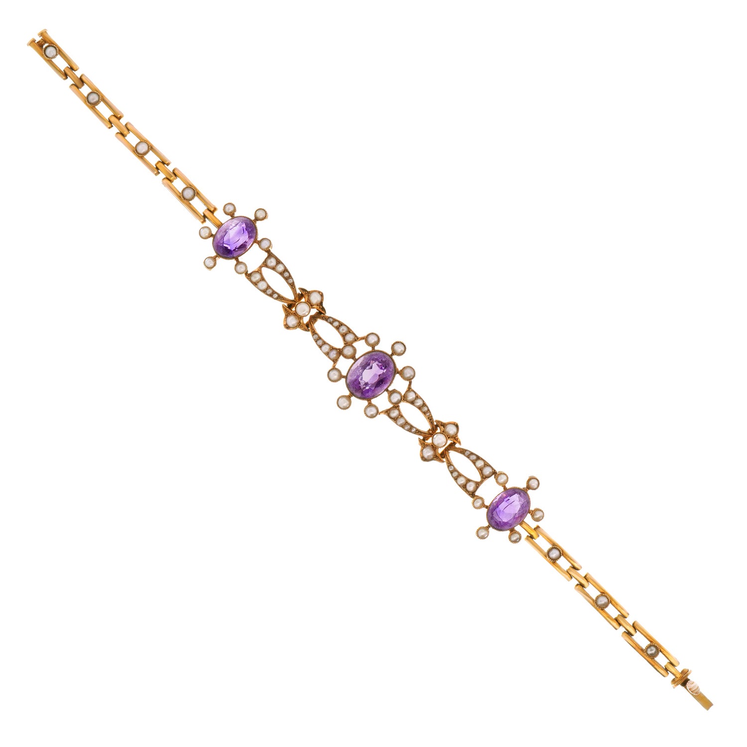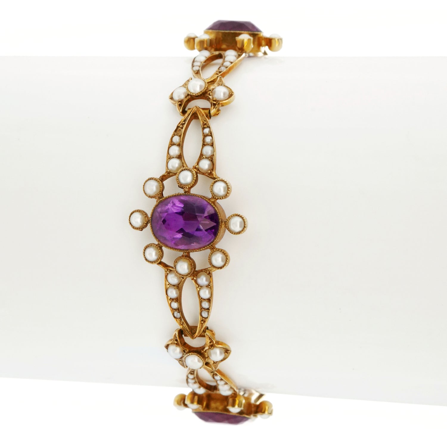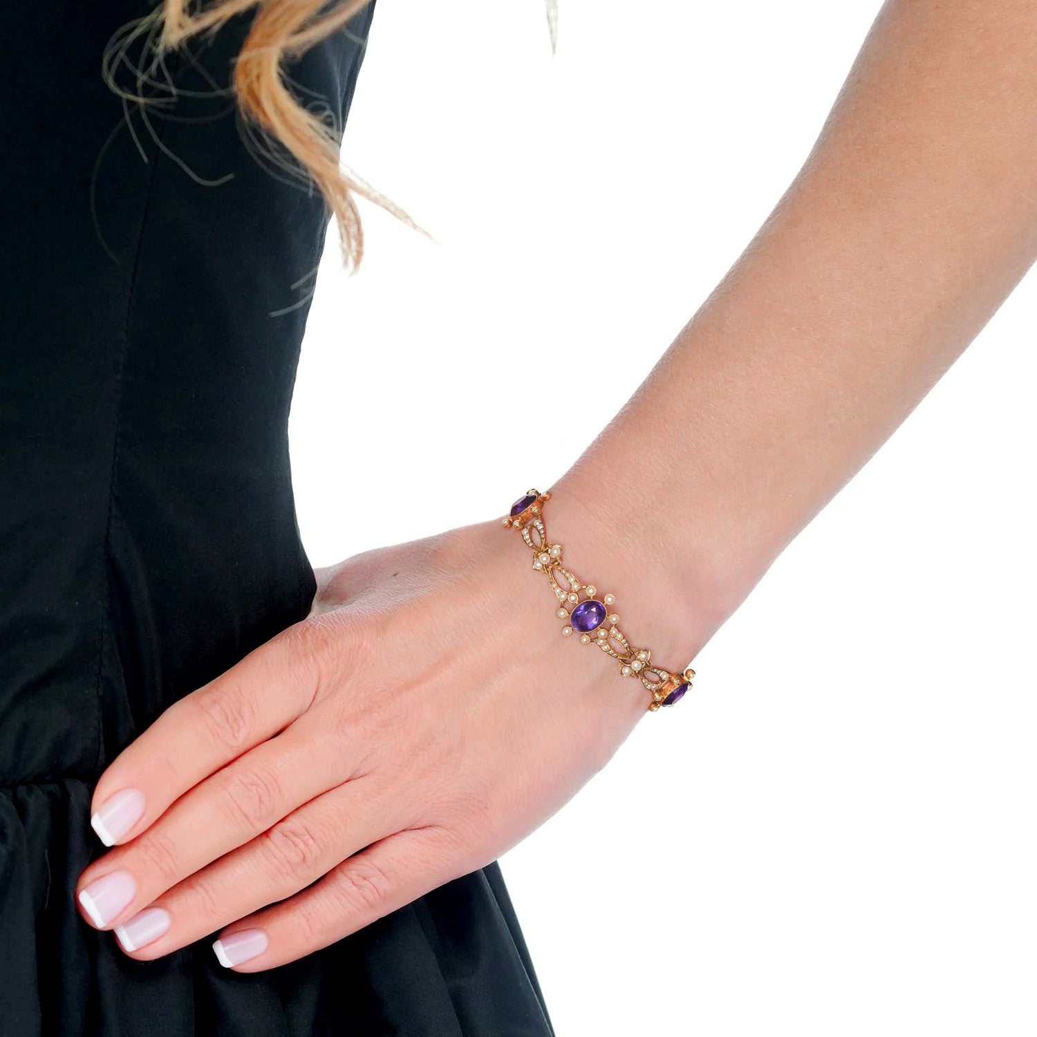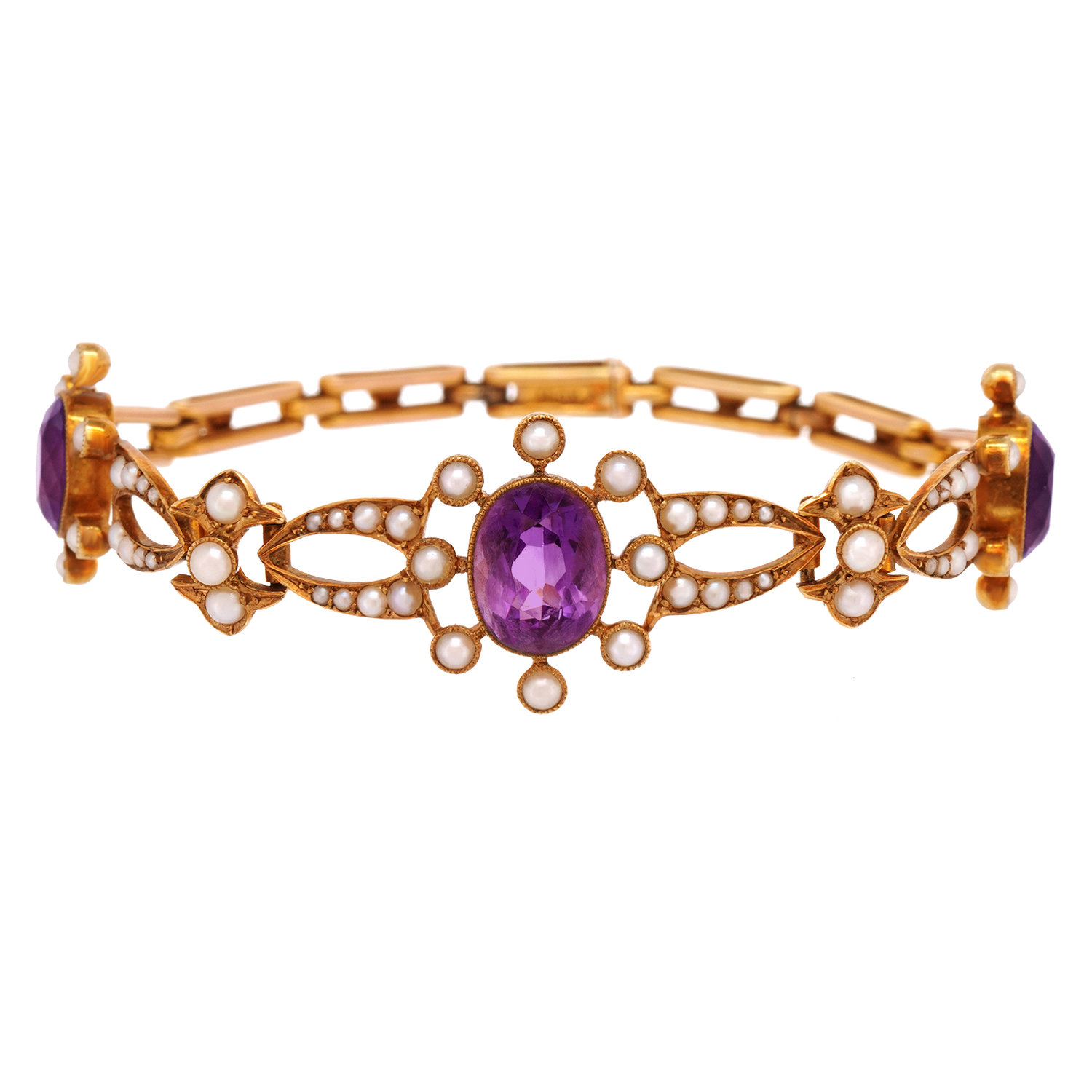 #25095 - Antique Amethyst and Natural Pearl Bracelet