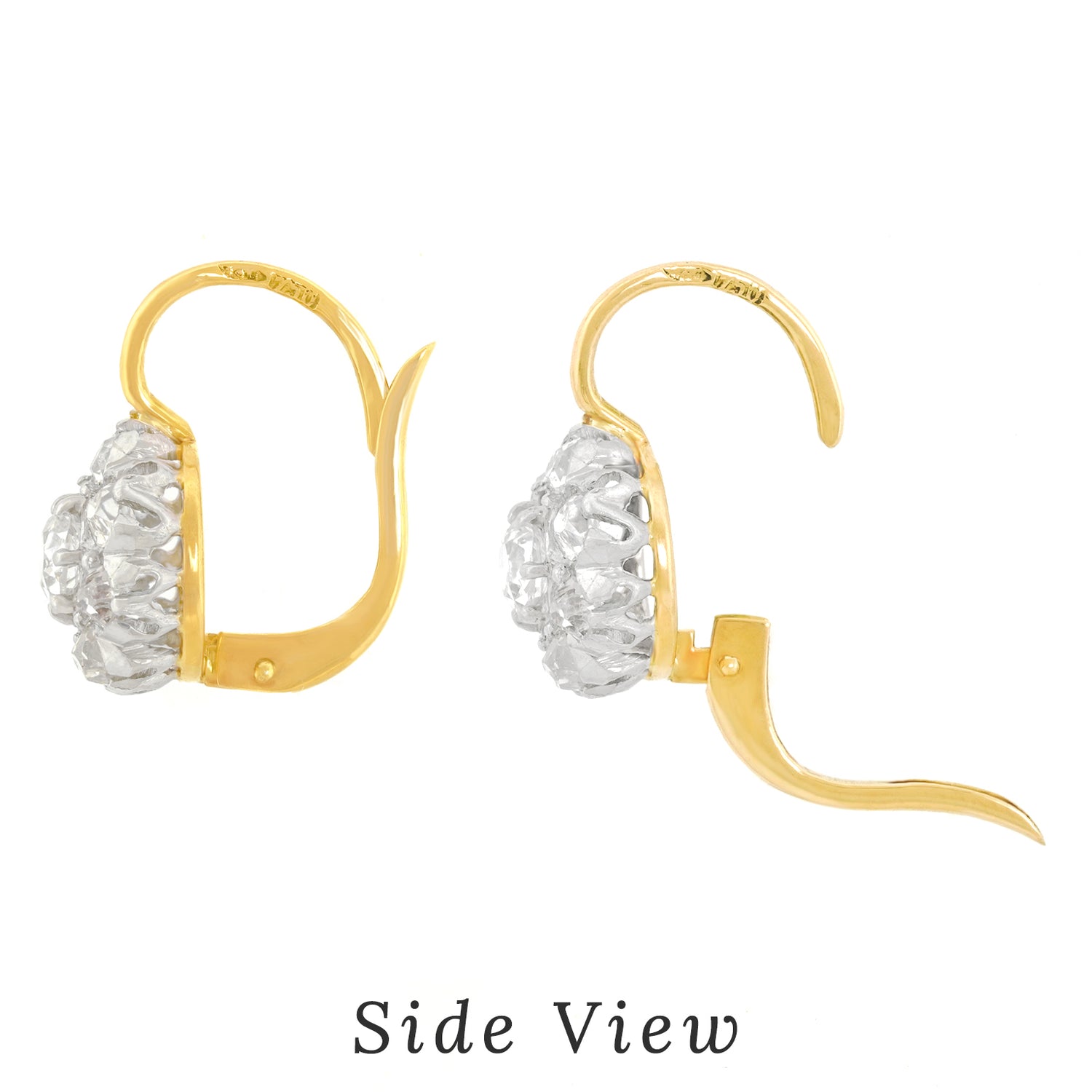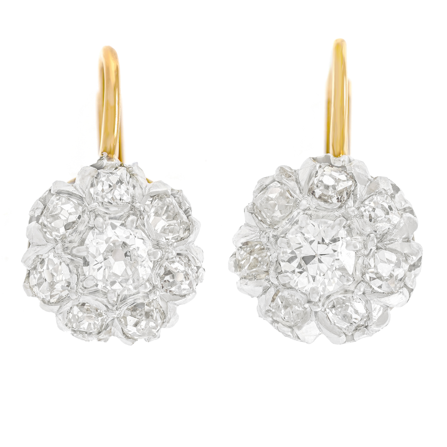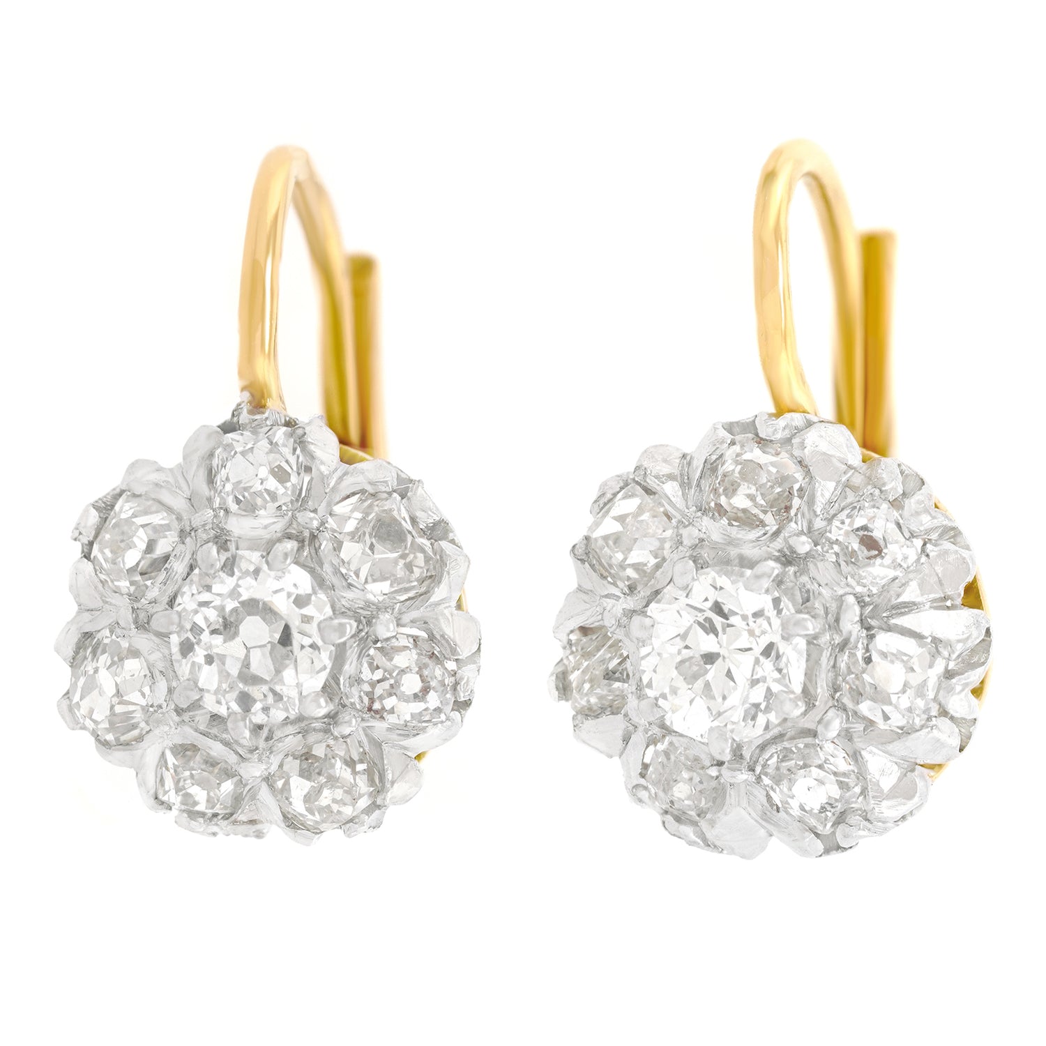 Circa 1910-20s, 18k/Platinum, Genève, Switzerland. Timelessly elegant, these antique diamond drop earrings feature 2.0 carats of old-cut diamonds set in platinum with 18-karat yellow gold wires. From a little black dress to your favorite vintage threads, these antique chic earrings effortlessly go with everything. Finely fashioned, the lever backs make them very secure and easy to wear.  Excellent condition.