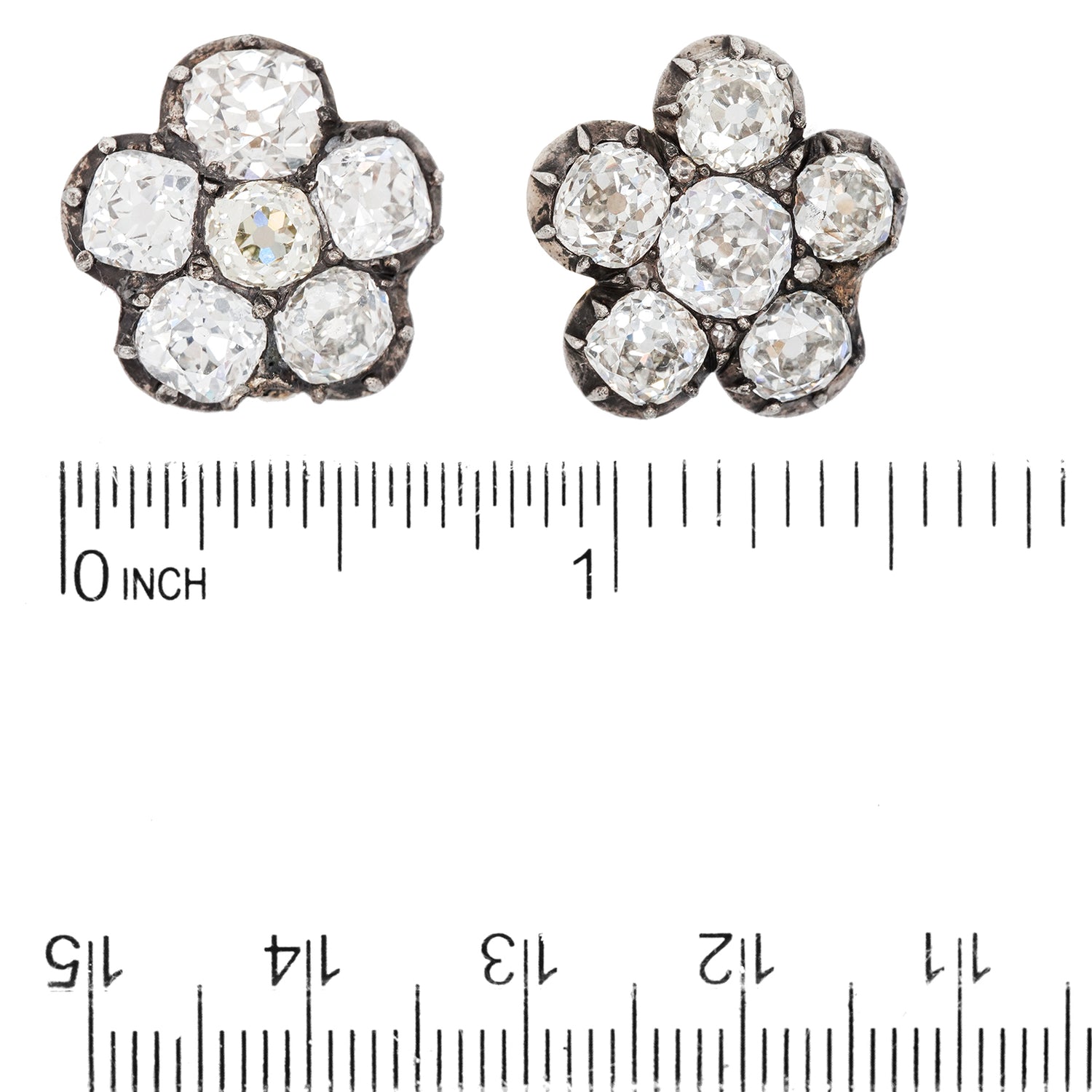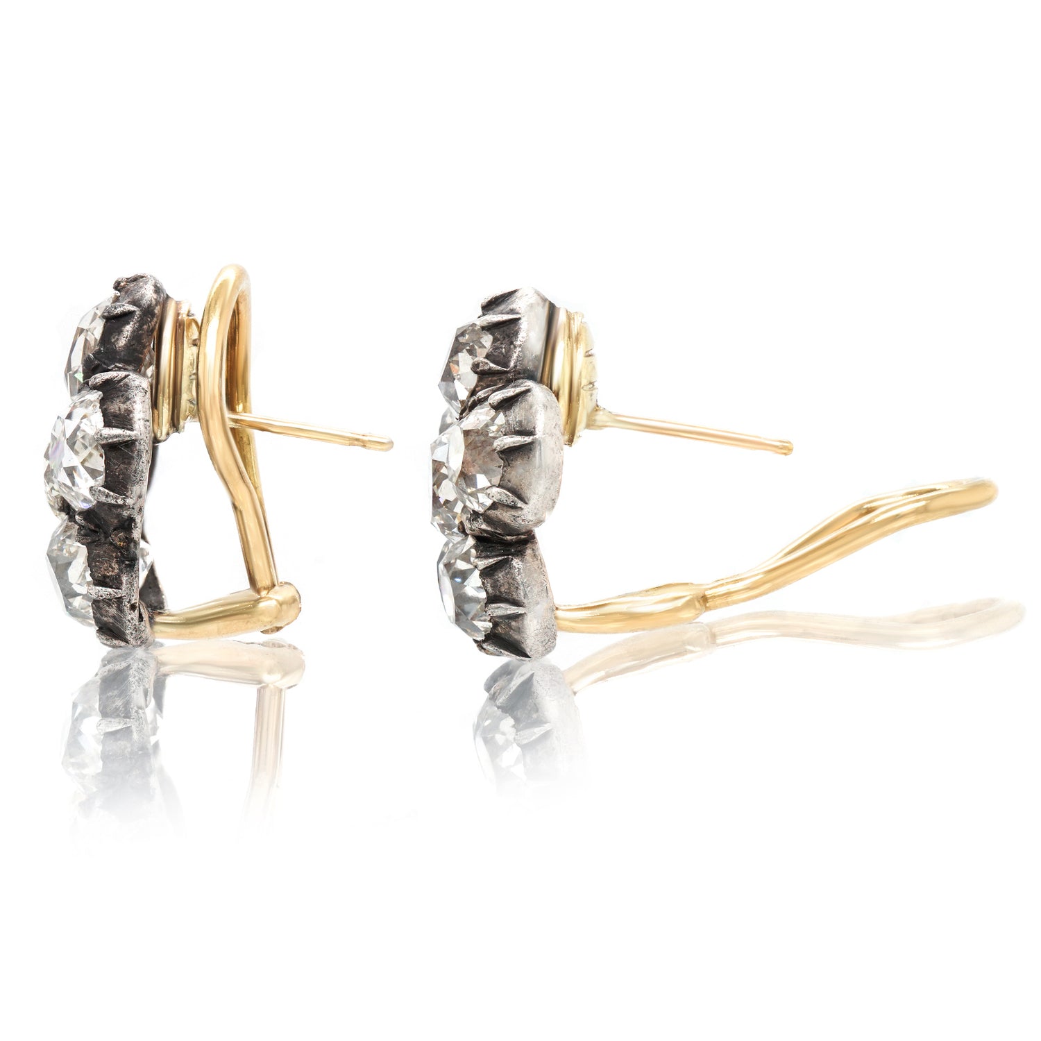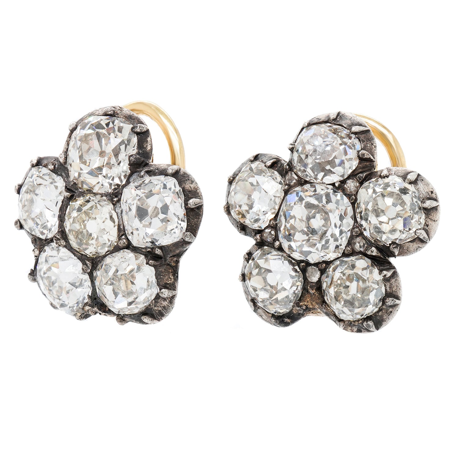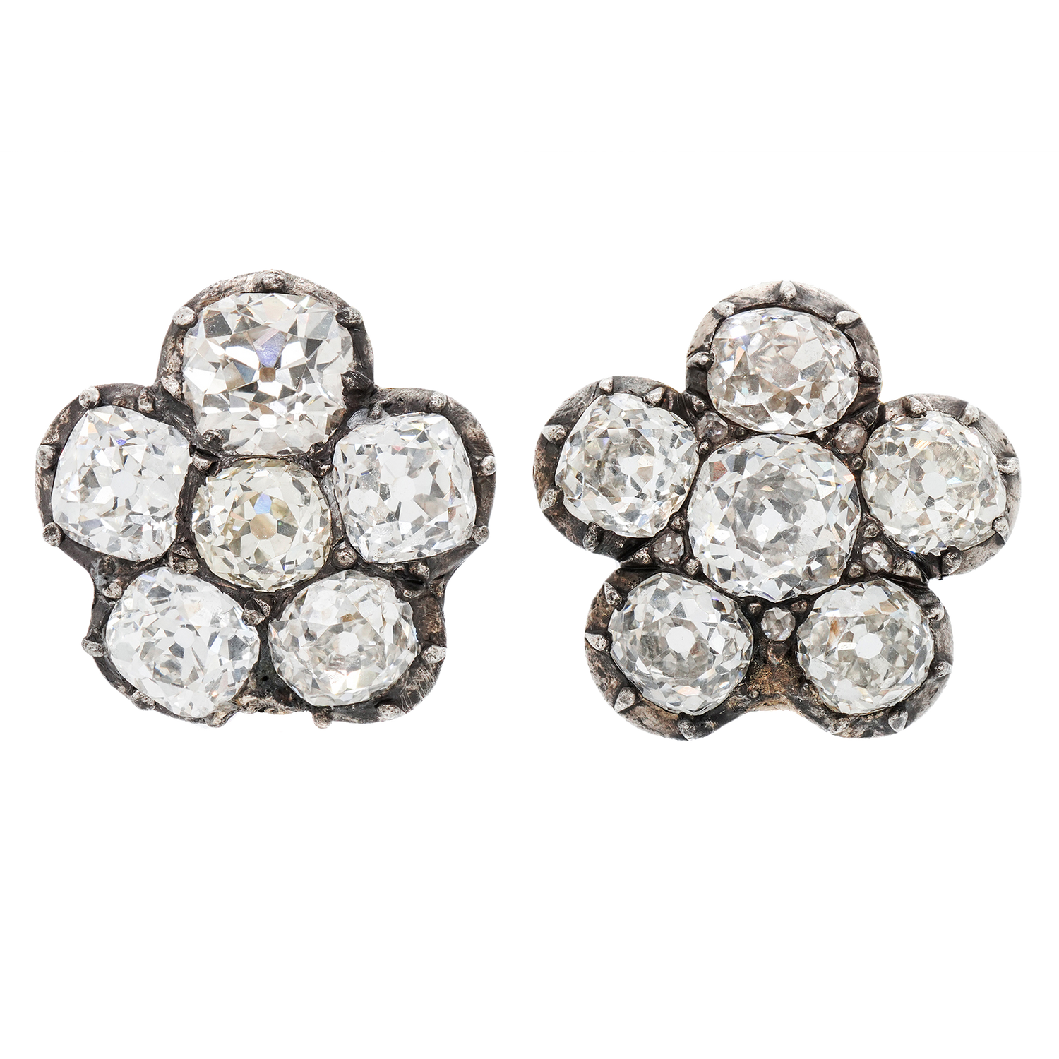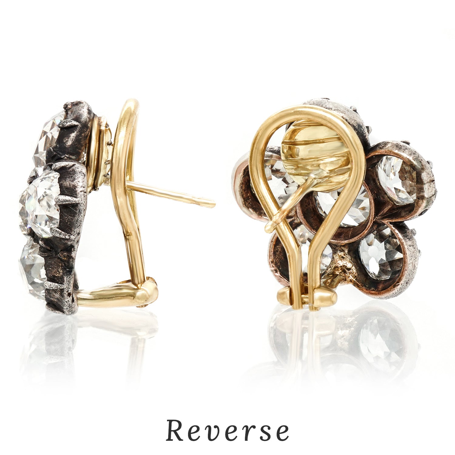Circa 1780-1820, 18k/Silver. If you were stranded on a desert island and could only bring one pair of earrings… If you could only wear one pair of earrings for the rest of your life… If you could only… you get the idea! These spectacular "over 200-year-old" earrings feature 10.0 carats of old cut diamonds (G-I color, and one K color, SI1-VS clarity), that sparkle perfectly. From a little black dress to your favorite vintage threads, these antique chic earrings effortlessly go with everything! Excellent condition.