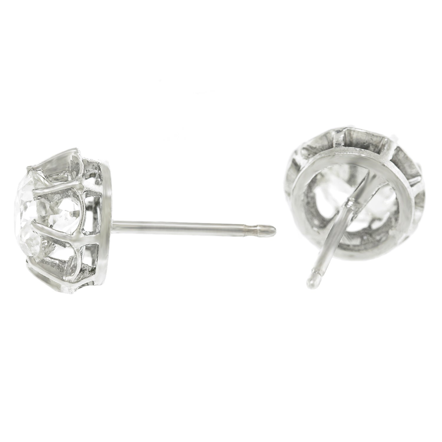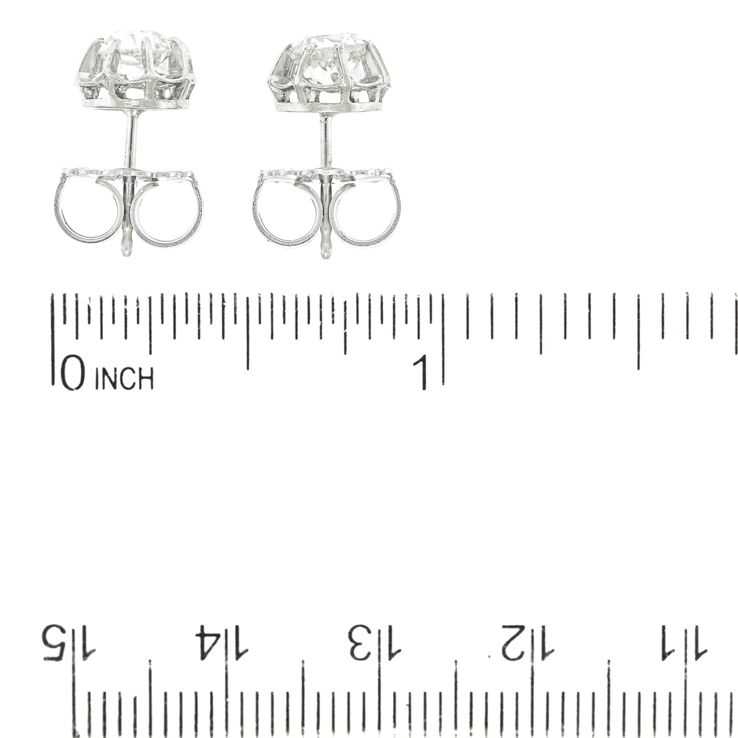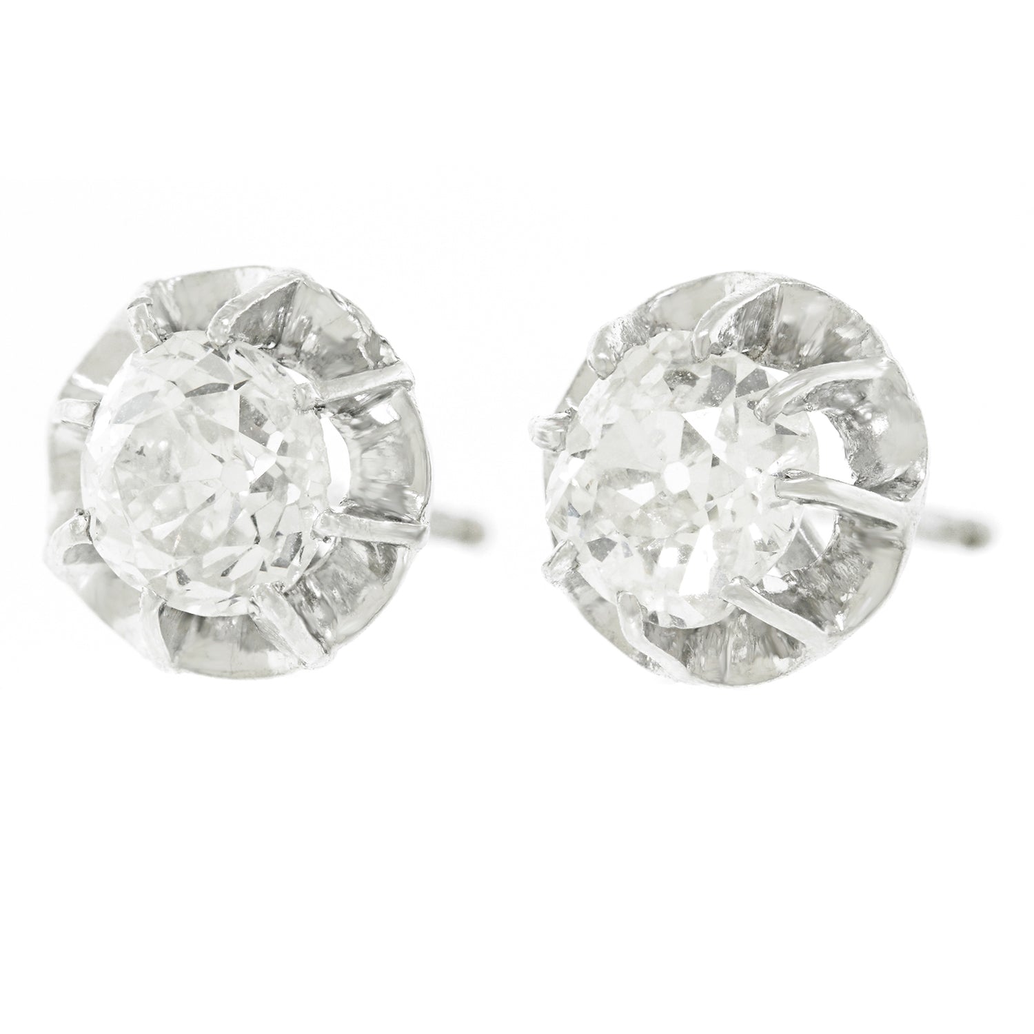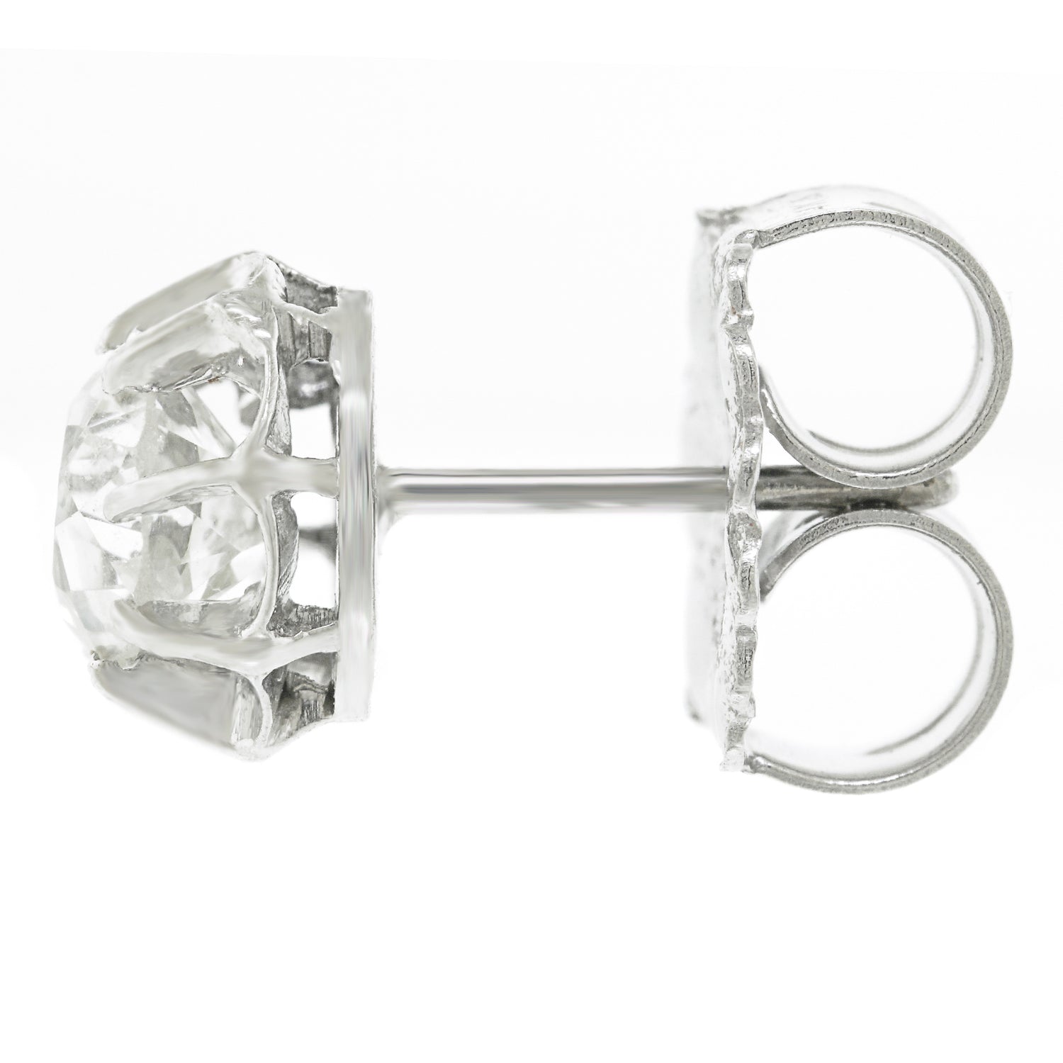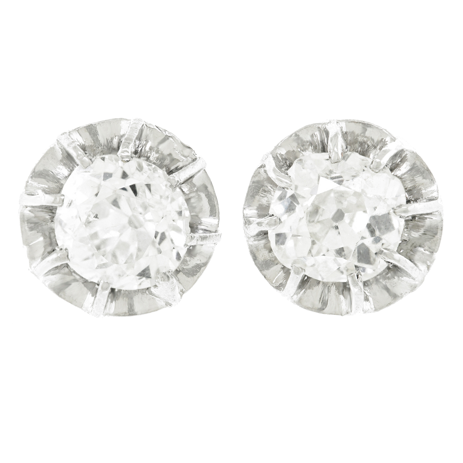 Circa 1890s, 18k. Set with two gorgeous .70-carat old cut diamonds (H-I color SI2 clarity), these antique stud earrings are a rare find. The early mine-cut diamonds have a subtle visual quality, they reflect and refract in a measured manner, casting broad prismatic shafts of light. Converted to eighteen-karat white gold posts, these earrings have been modernized for everyday wear. Excellent condition.