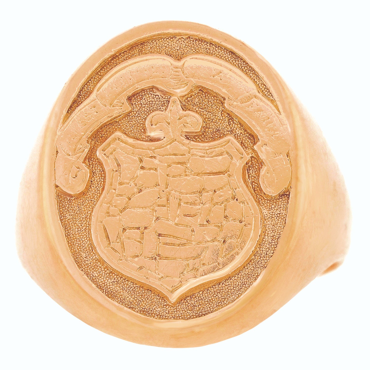 Circa 1890s, 14k, American. Decorated with a crisp armorial, this antique signet ring has a charming town and country look. Classic lines, heavy gold, and a balanced scale make this a perfect everyday gold ring. Beautifully made, it is in excellent condition.