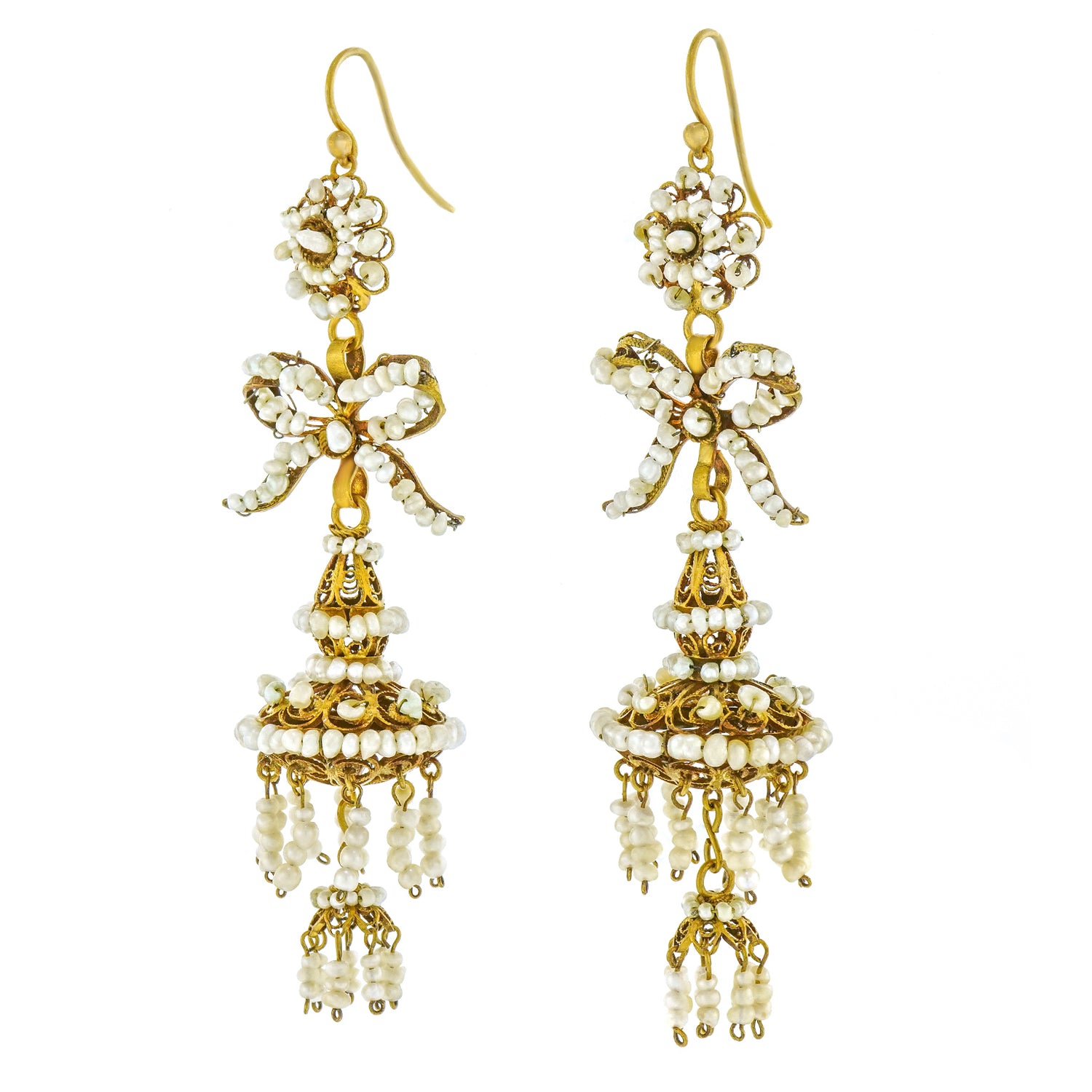 #24732 - Antique Pearl Chandelier Earrings c1870s