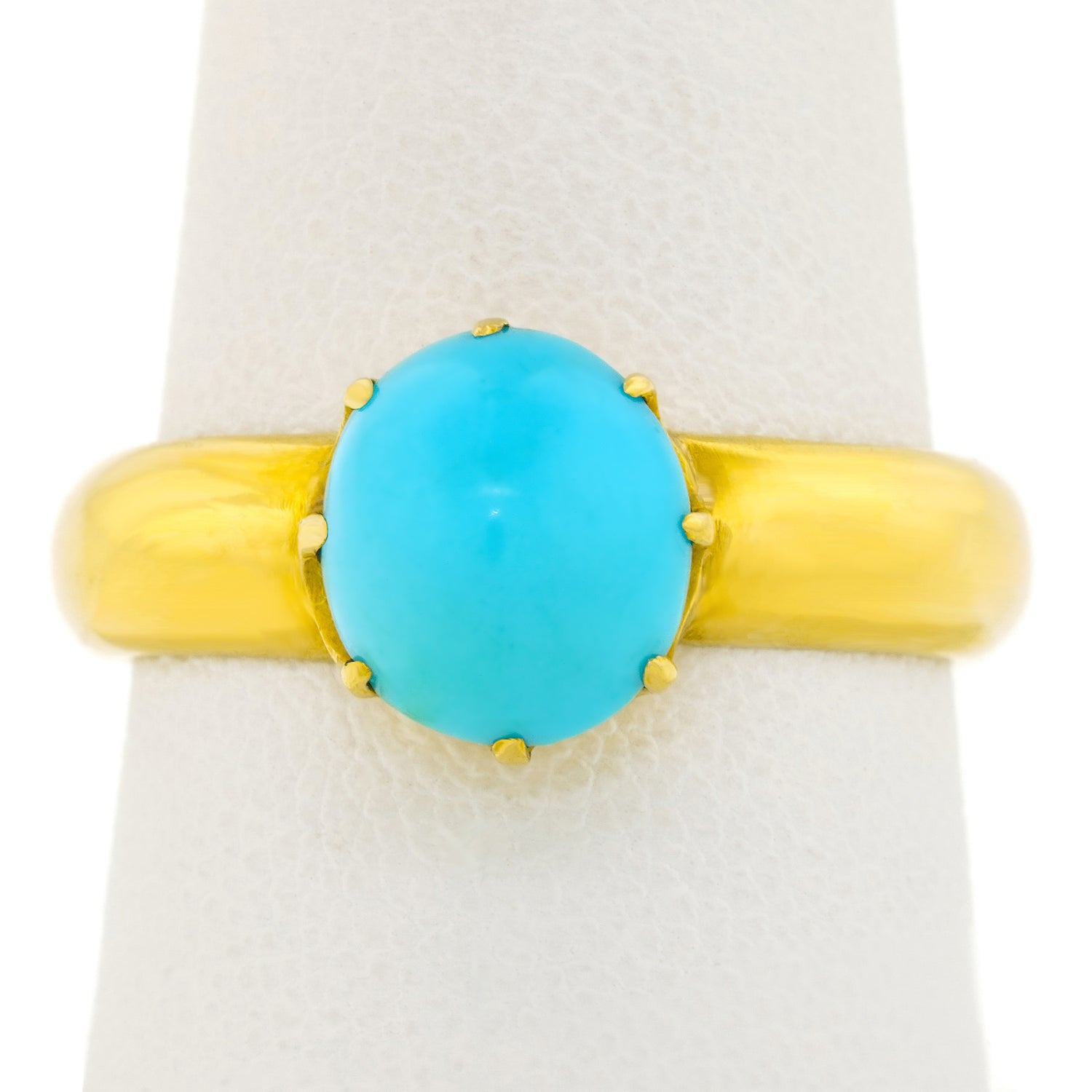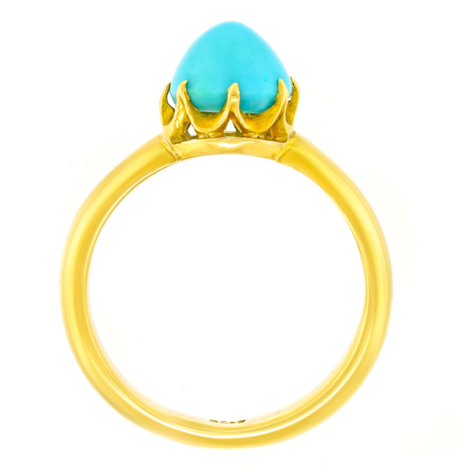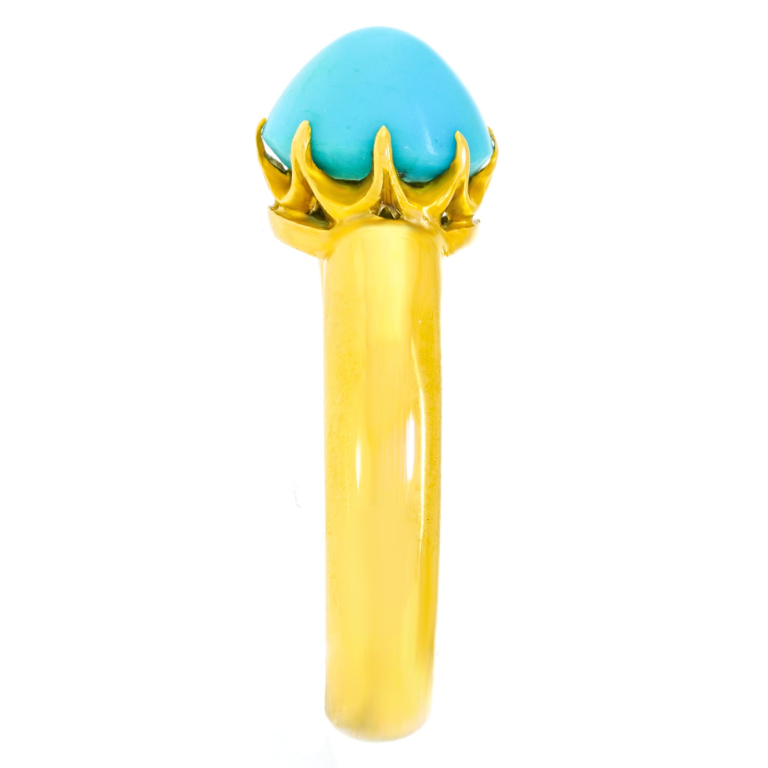 Stone Details: The hue of this Persian turquoise is a very lively blue with superb visual presentation. Rare in this quality, turquoise this color is particularly exquisite set in yellow gold.