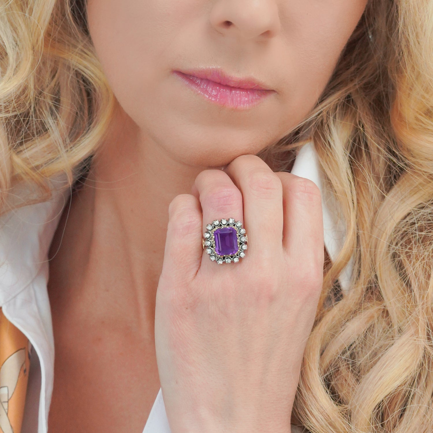 Antique Spanish Amethyst and Diamond Ring