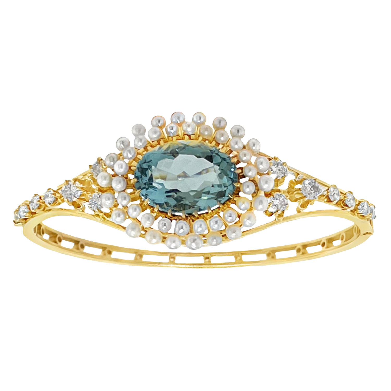 #27320 - Antiques Aquamarine, Pearl and Diamond Bracelet by Pierre Cordier