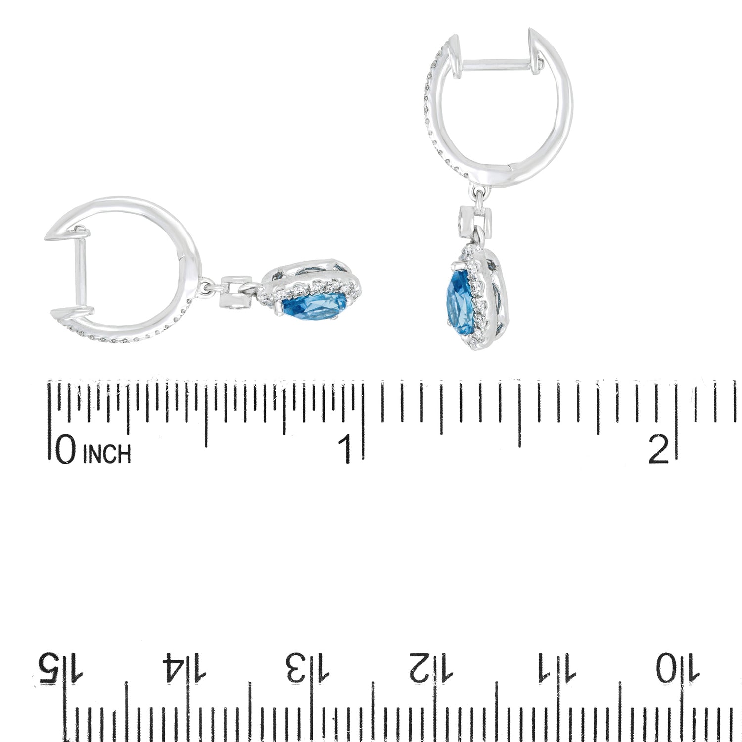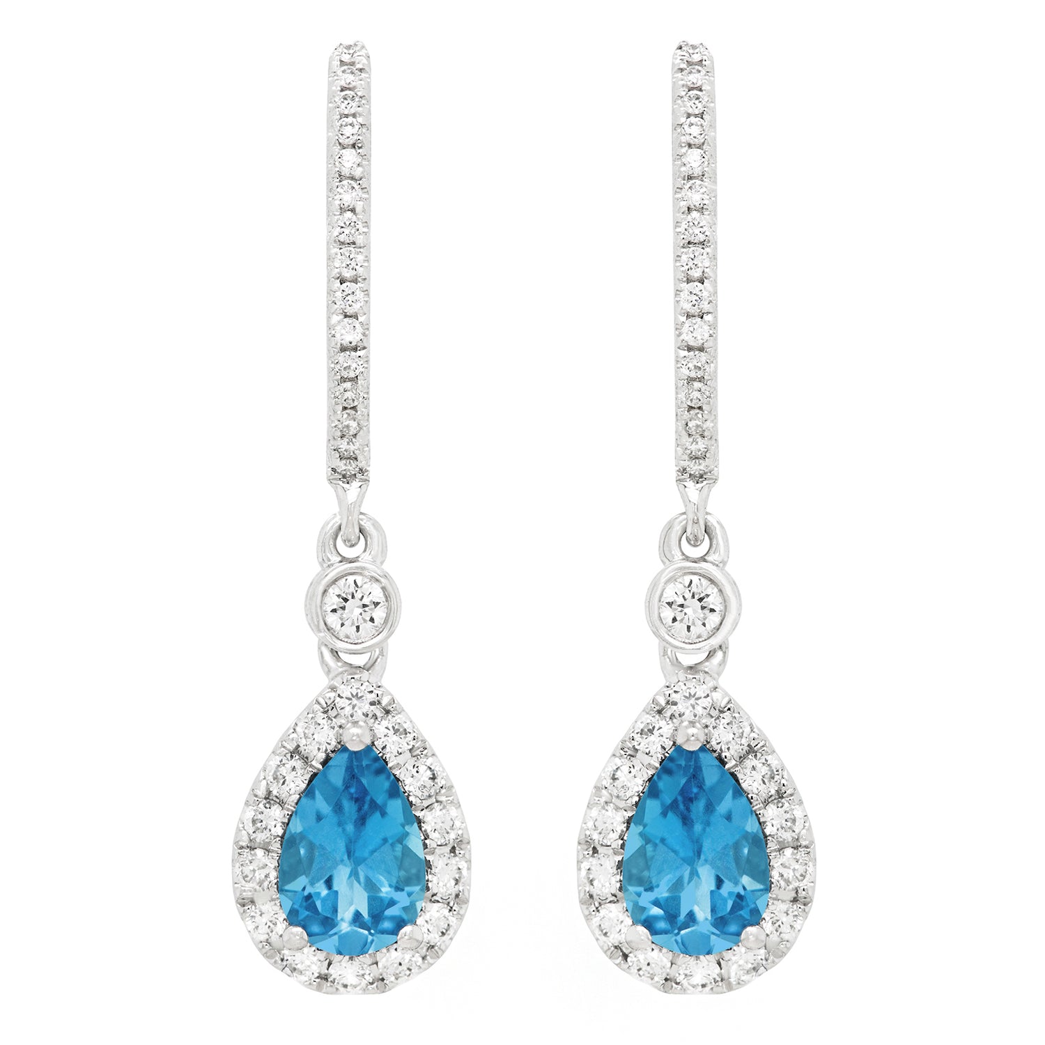 Circa 2000, 14k, American.  Victorian style meets its charming modern expression in these chic drop earrings. Set with exceptionally hued aquamarine surrounded by diamonds, they are at home in any moment of fashion. Beautifully made, they are in excellent condition.