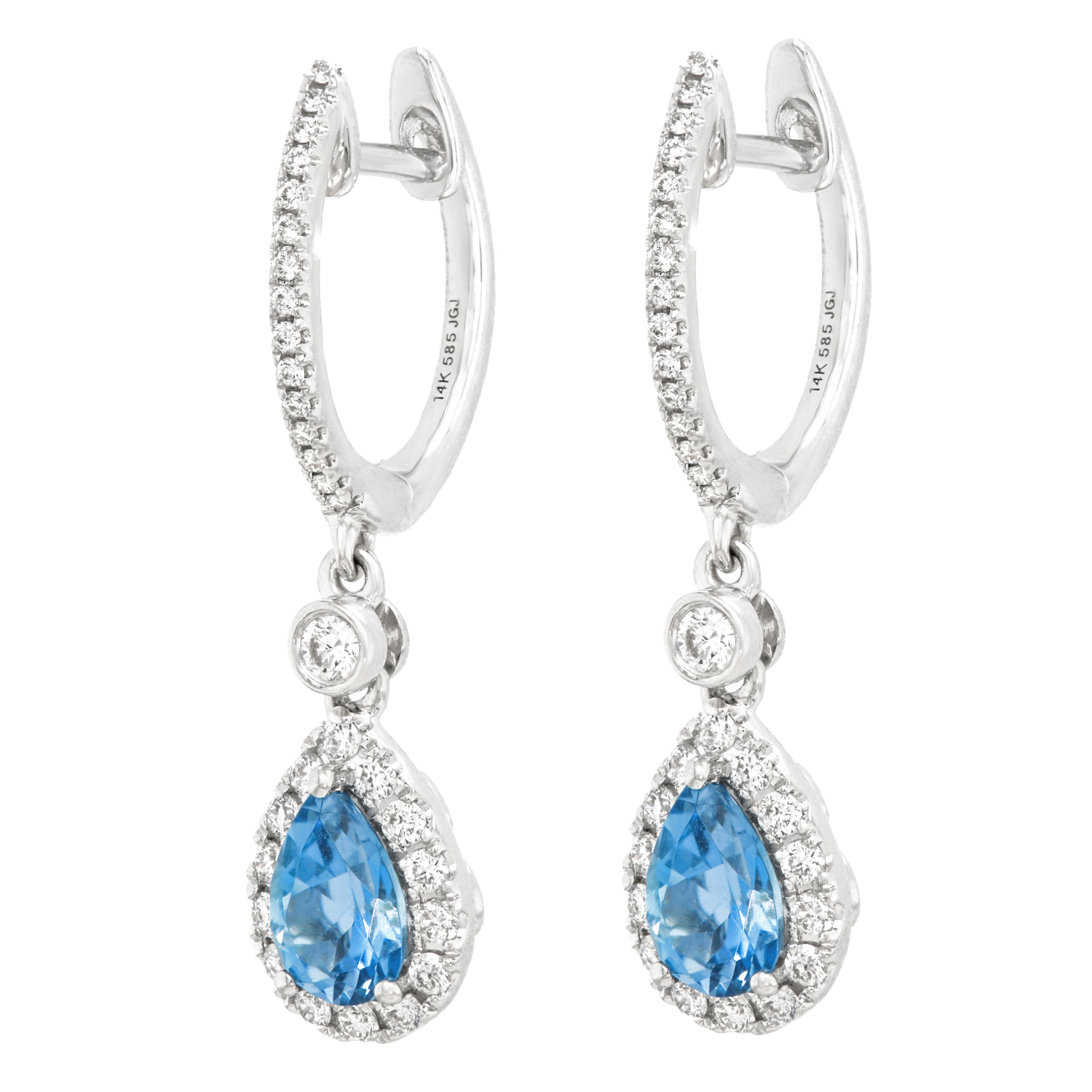 Aquamarine and Diamond Drop Earrings 14k c2000 American