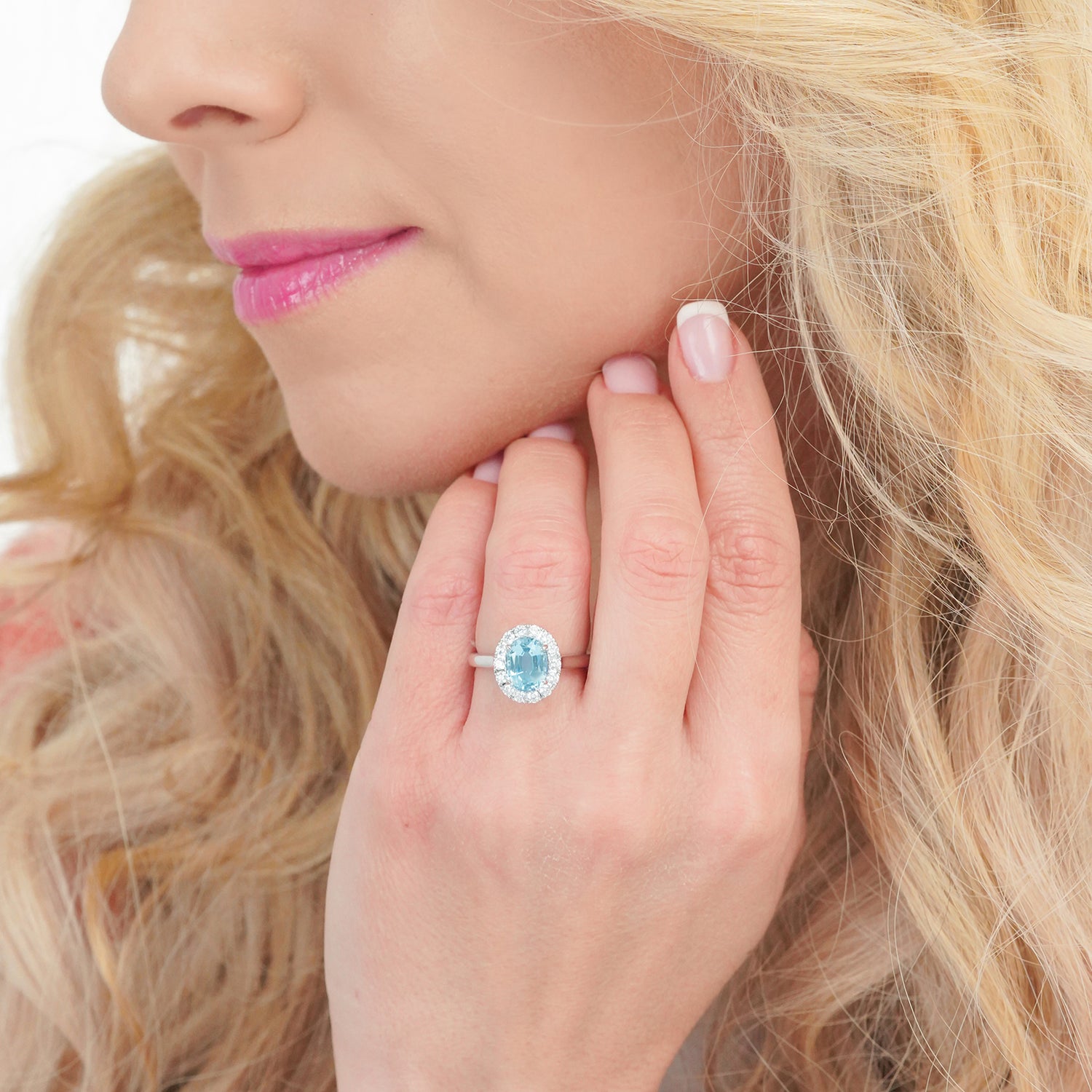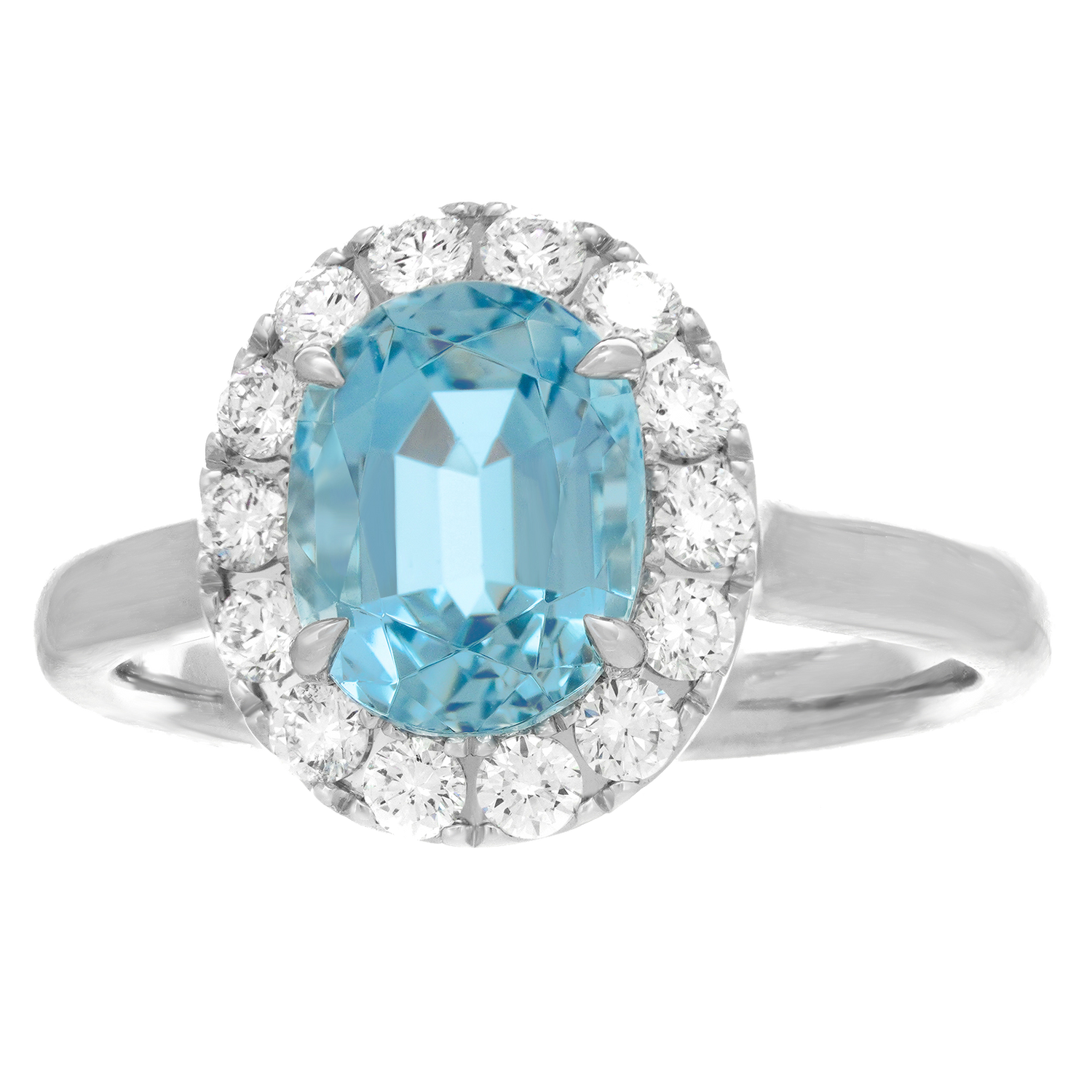 Stones: 2.25 carat aquamarine and .70 carats total weight of G color, SI1 clarity diamonds