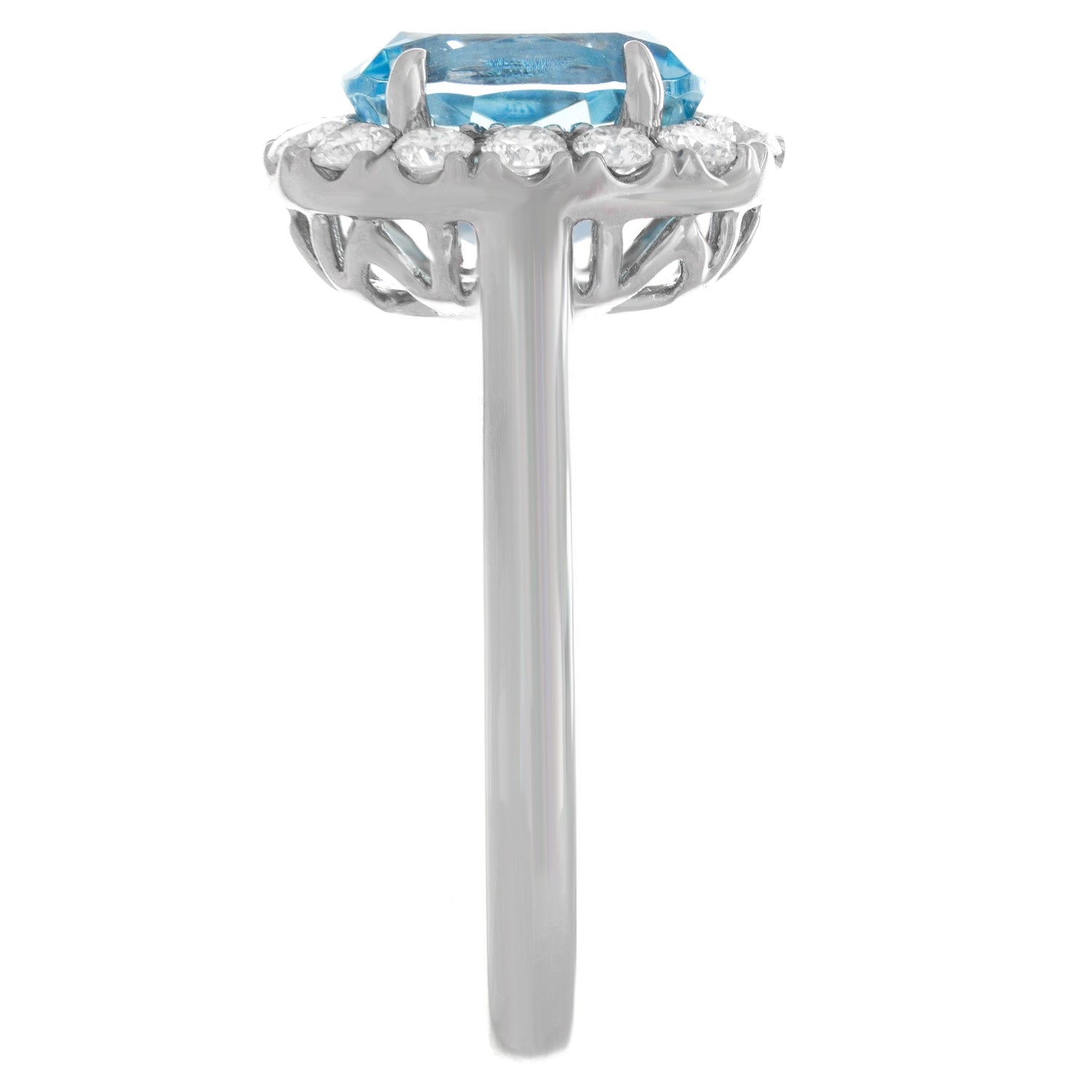 Circa 2000s, 14k, American. Set with a gorgeous 2.25 carat vivid blue aquamarine accented by .70 carats of brilliant white diamonds (G color, SI1 clarity), this timeless ring is a fashion staple! Beautifully made in 14k white gold, it is in excellent condition.