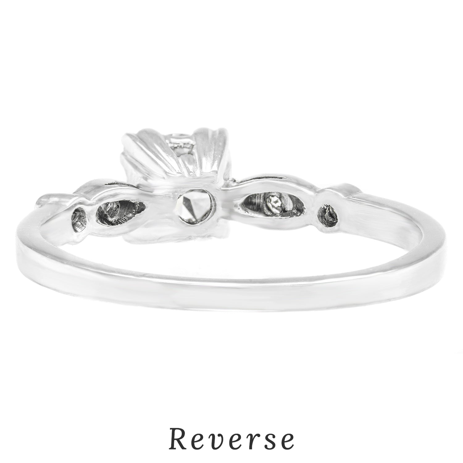 Stones: .42 carat J color, SI2 clarity diamond plus .08 carats total weight of I color, SI1 clarity accent diamonds