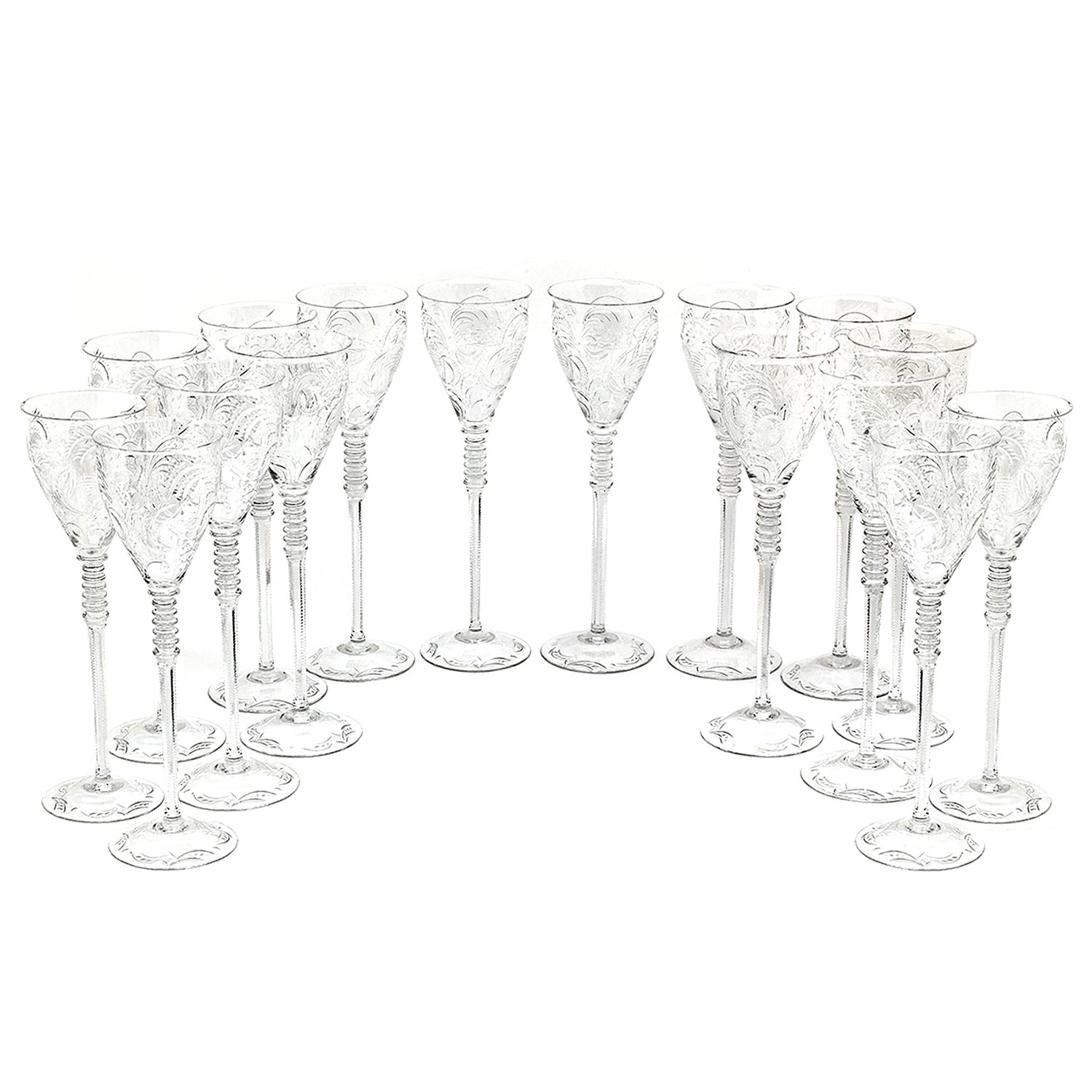 #18389 - Art Deco Crystal Water Goblets Set of 16 Extra Tall