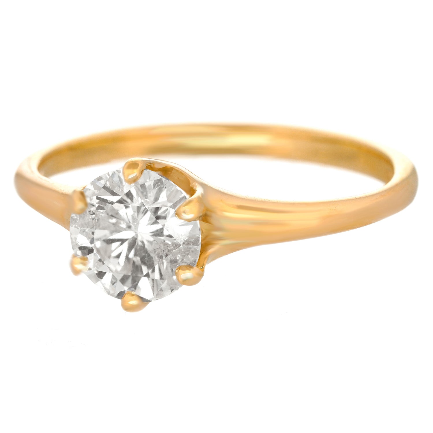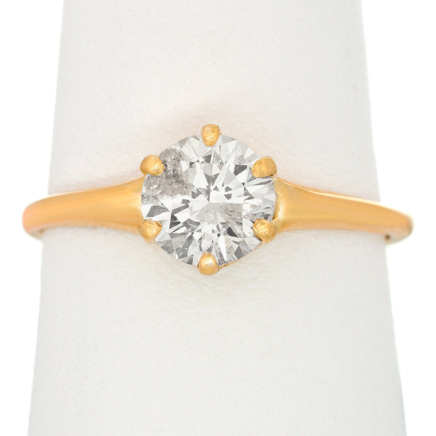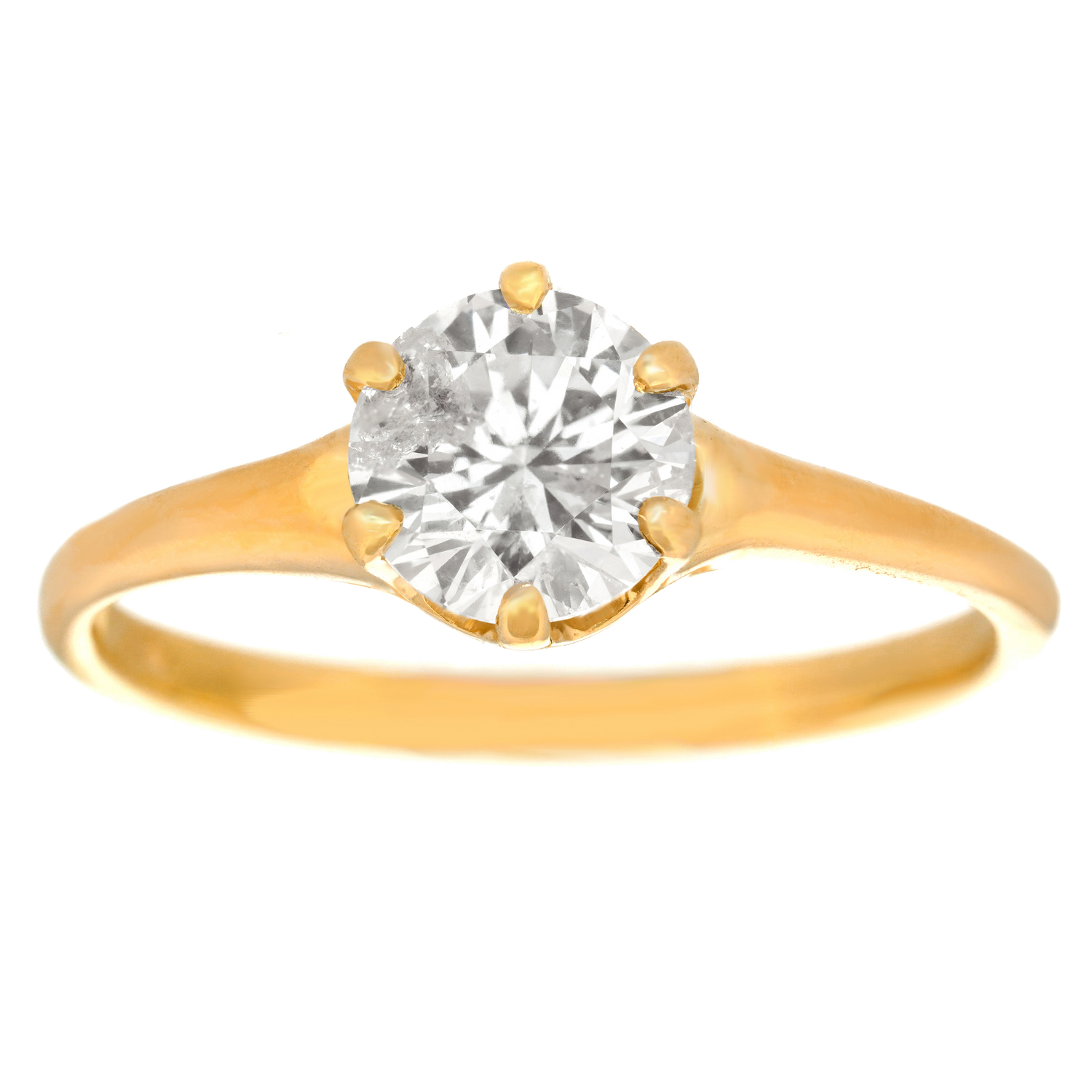 Circa 1920s, 14k, American. Set with a sparkly white 1.07-carat diamond (G color, I1 clarity), this classic 1920s yellow gold engagement ring is perfection! The six-prong mounting is elegantly understated; it's all about the diamond! This ring is finely fabricated in 14k, and the matching antique diamond is beautiful. Excellent condition.