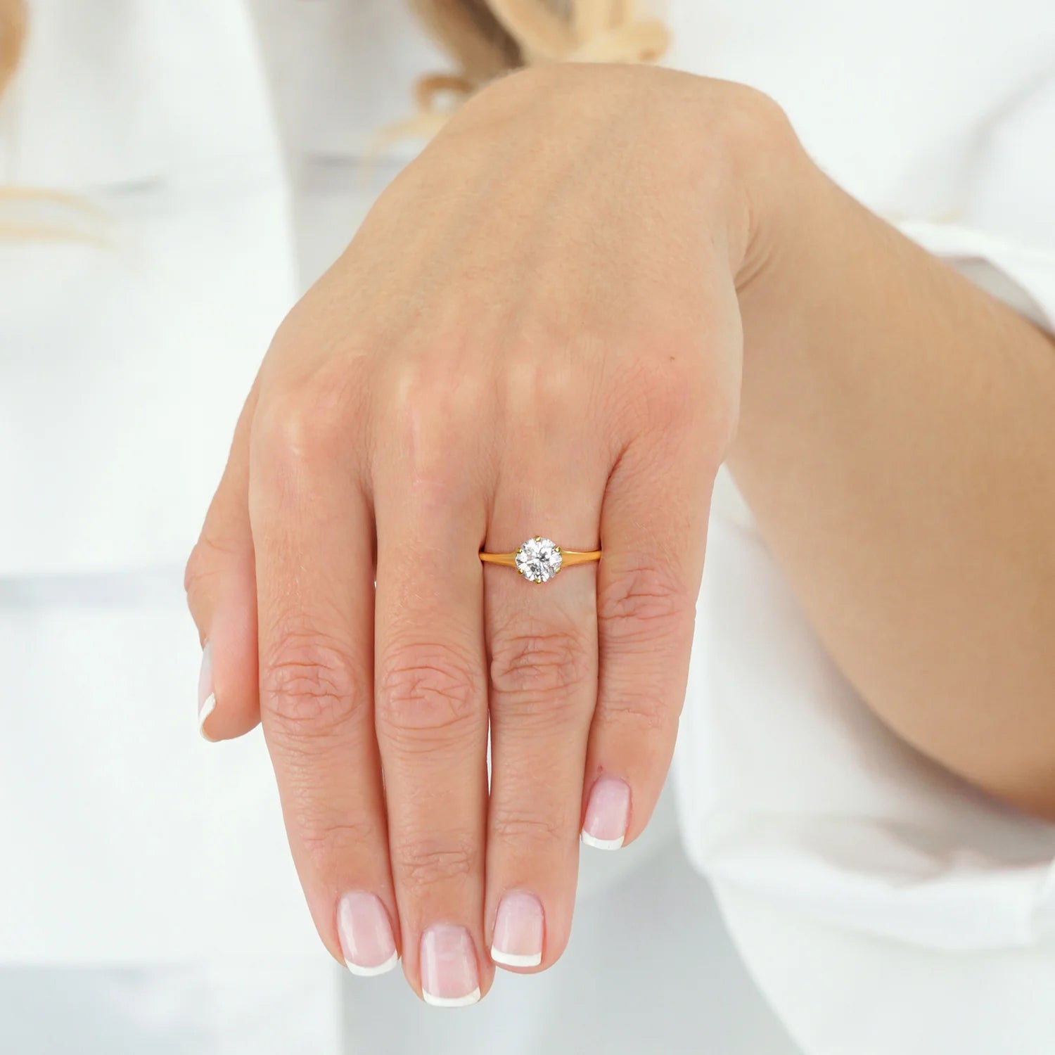 Remarks from Lawrence Jeffrey: “Yellow gold engagement rings are delightfully romantic.”