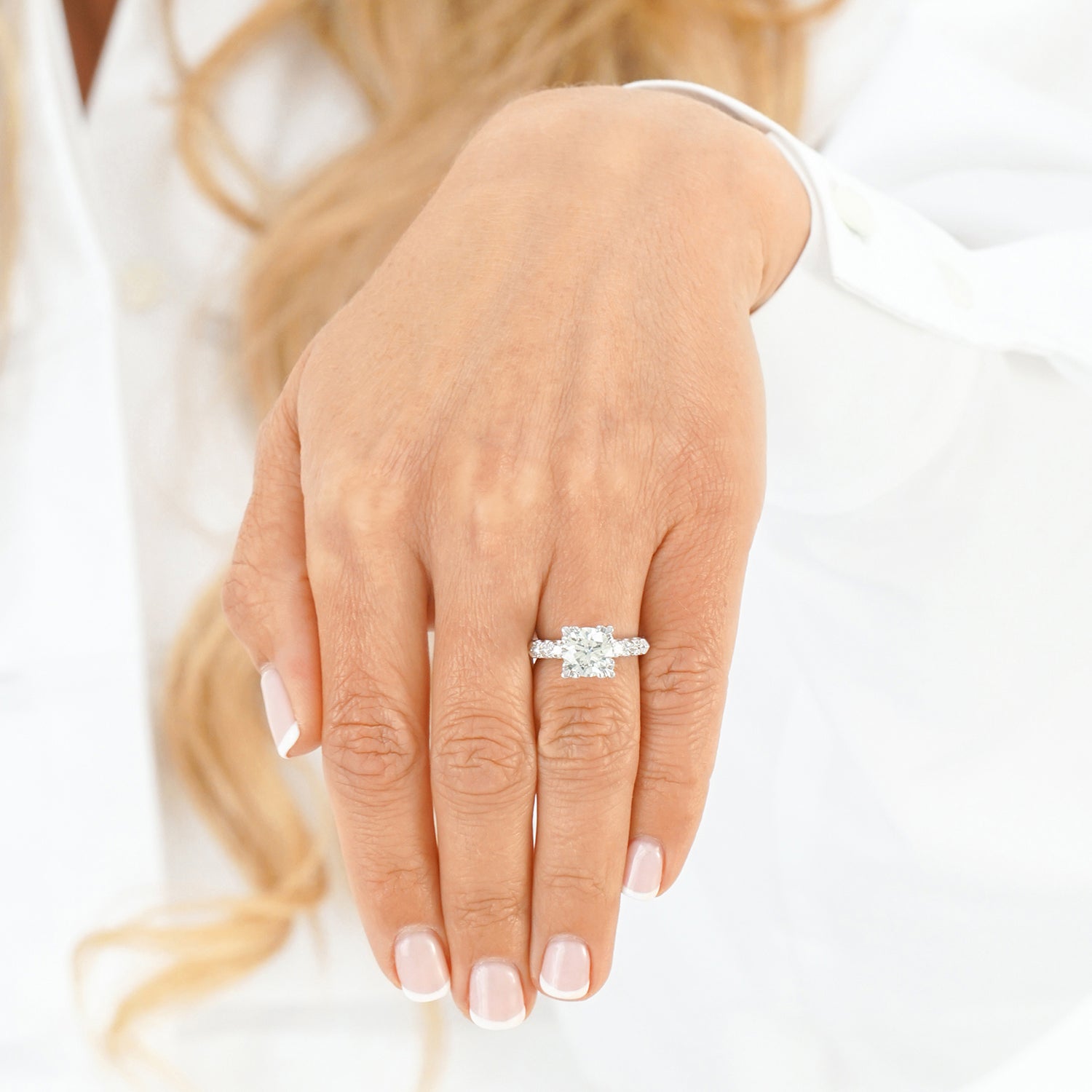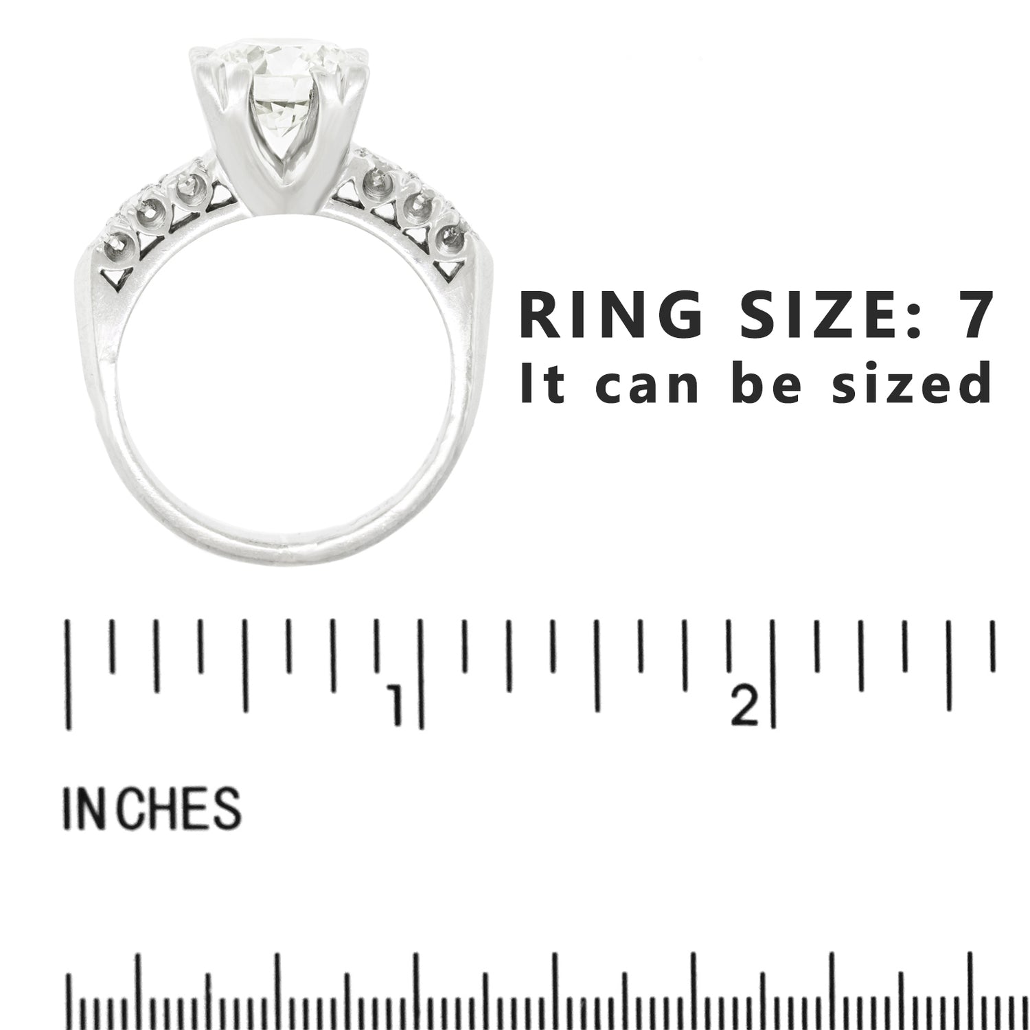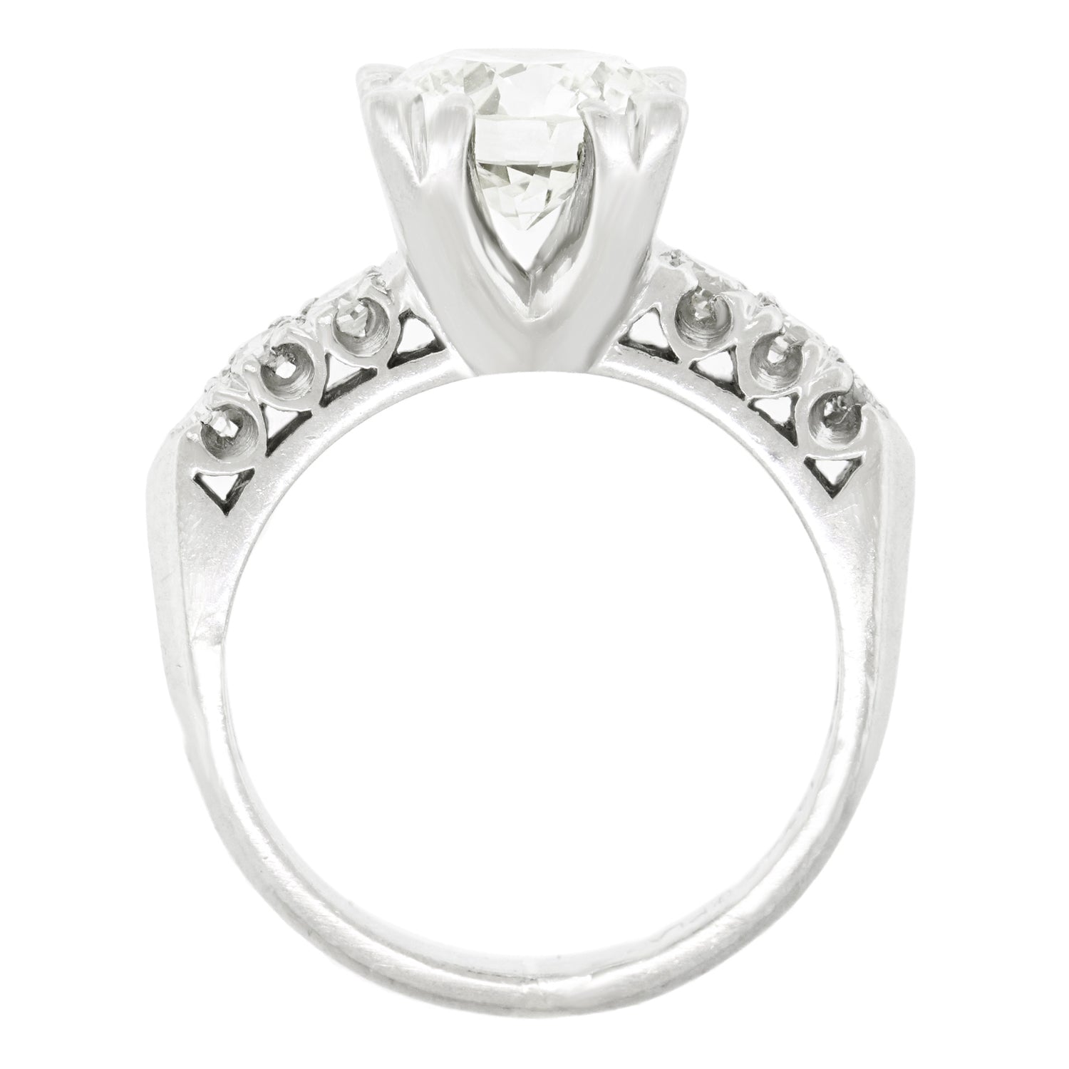 Stones: 1.90 carat K color, VS1 clarity diamond and .22 carats total weight of K color, SI clarity side diamonds.