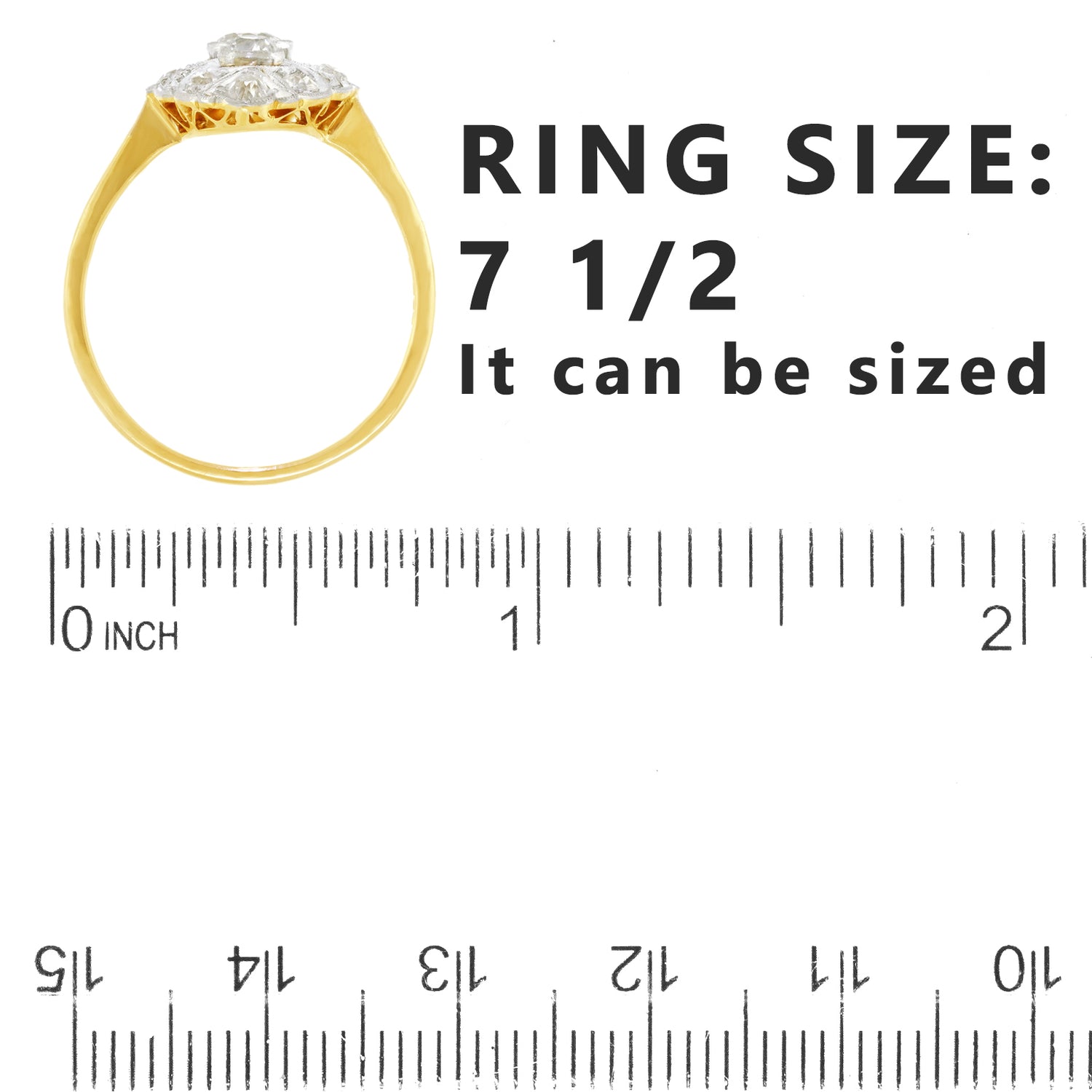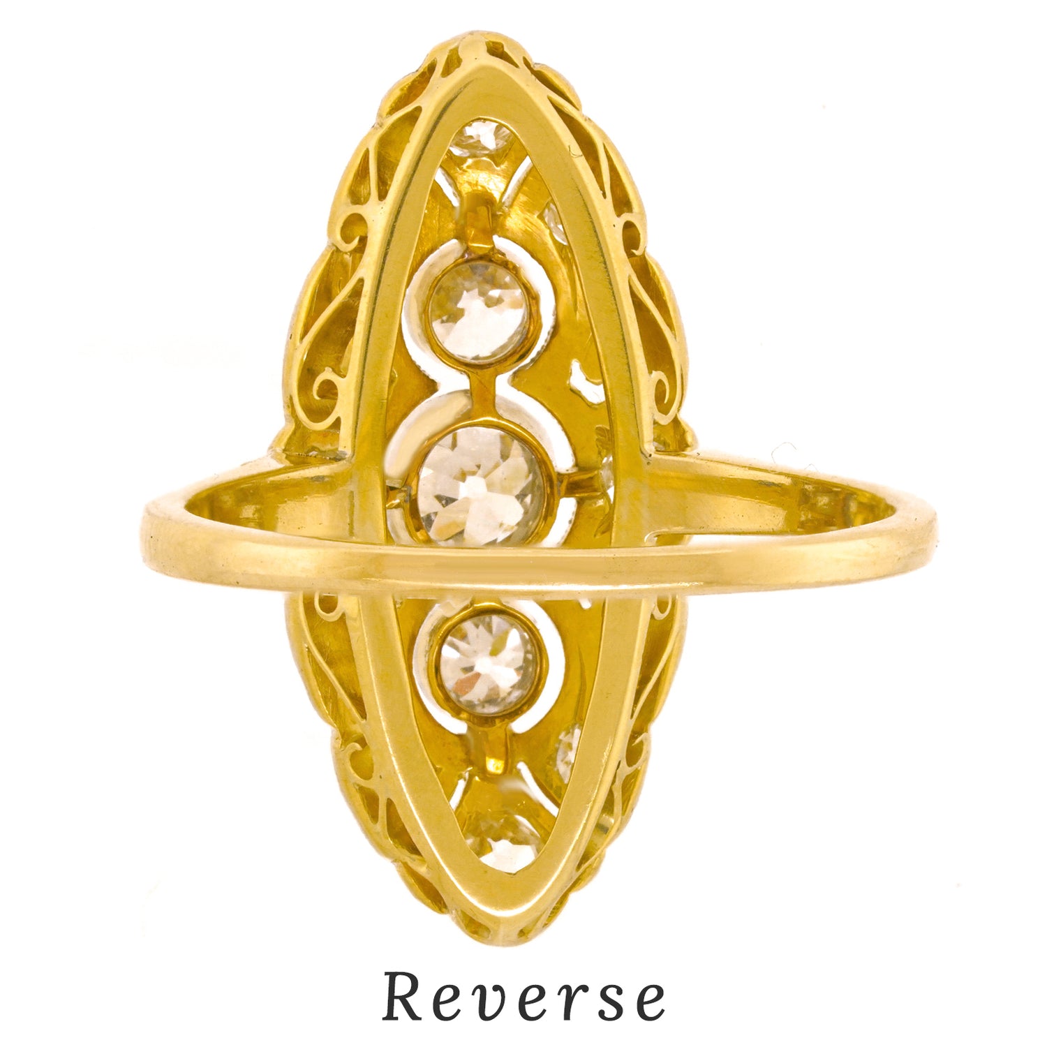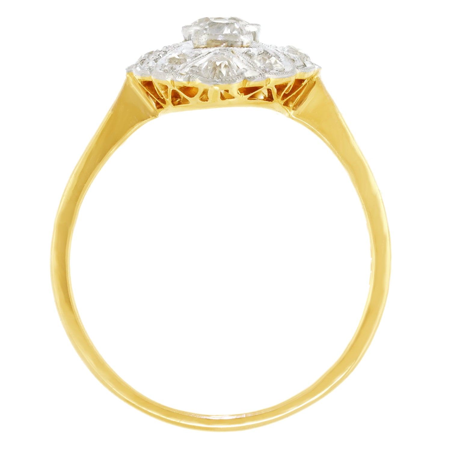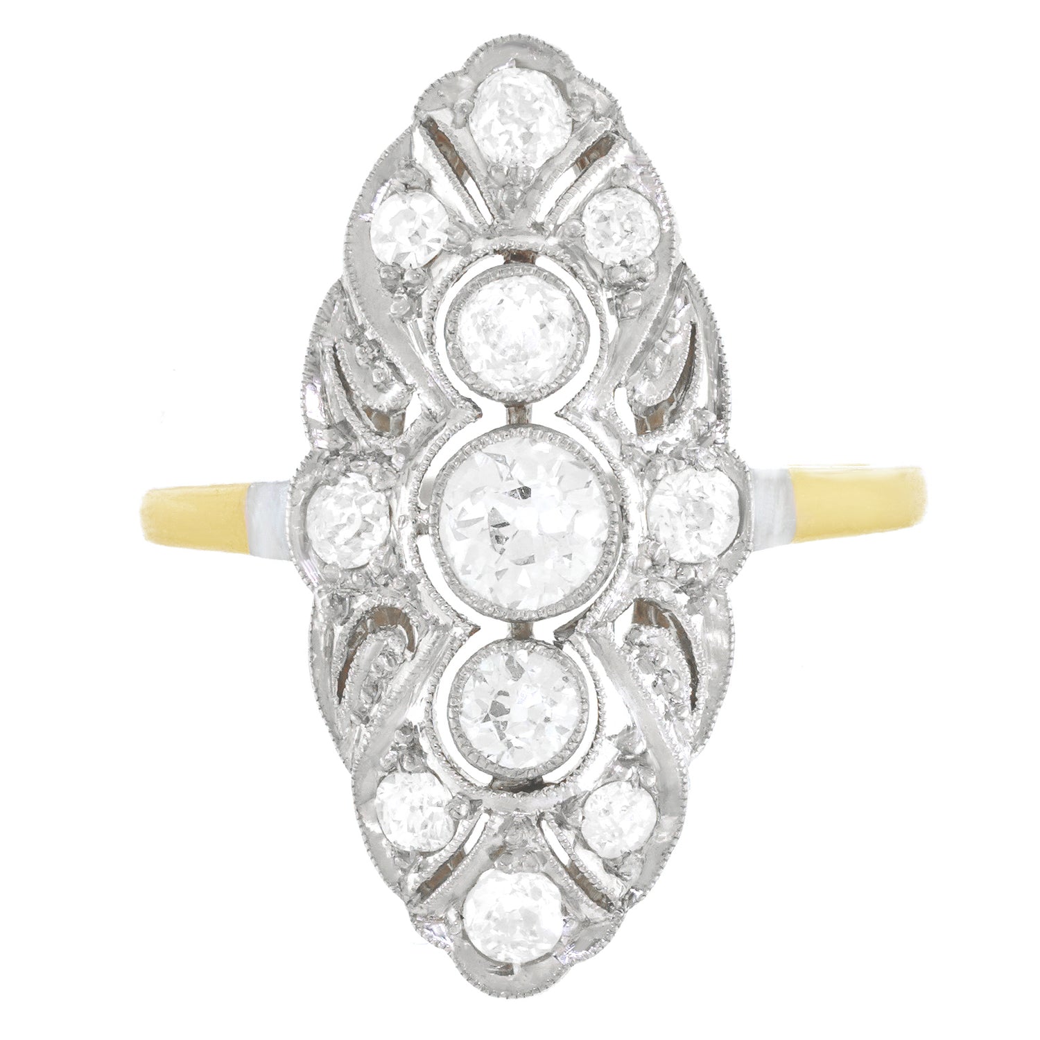 Circa 1920s, 14k / Platinum. Set with 1.10 carats of old cut diamonds, this romantic Art Deco ring features a platinum filigree top and a fourteen karat yellow gold undergallery and band. Flawless for every day, it is finely fashioned and in excellent condition.