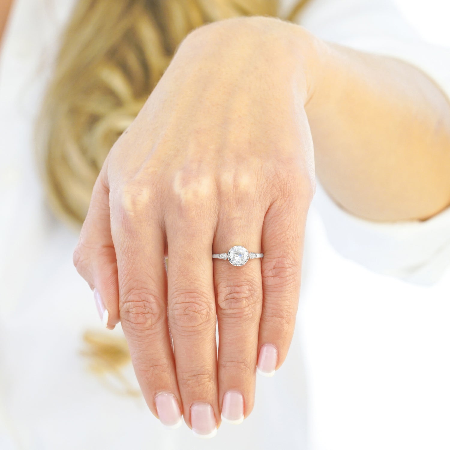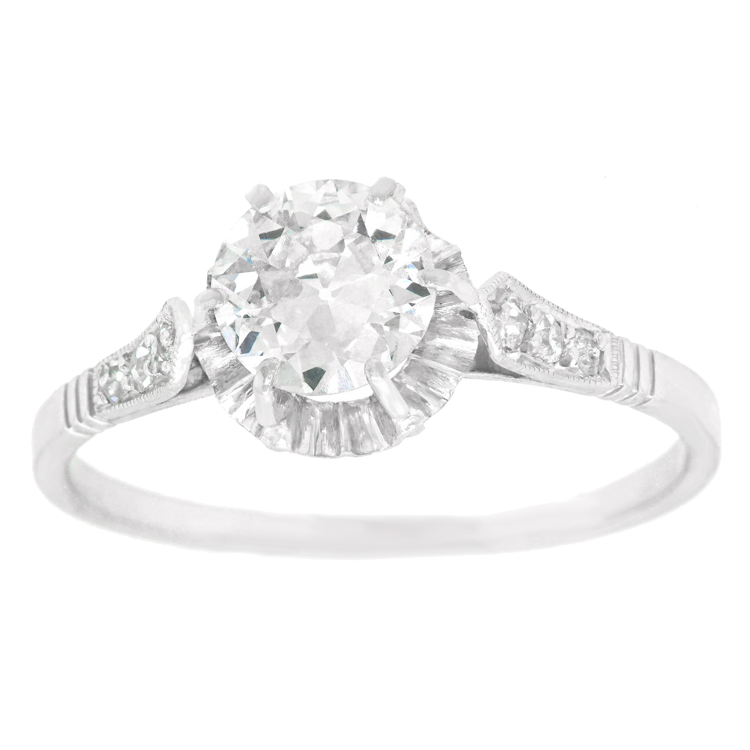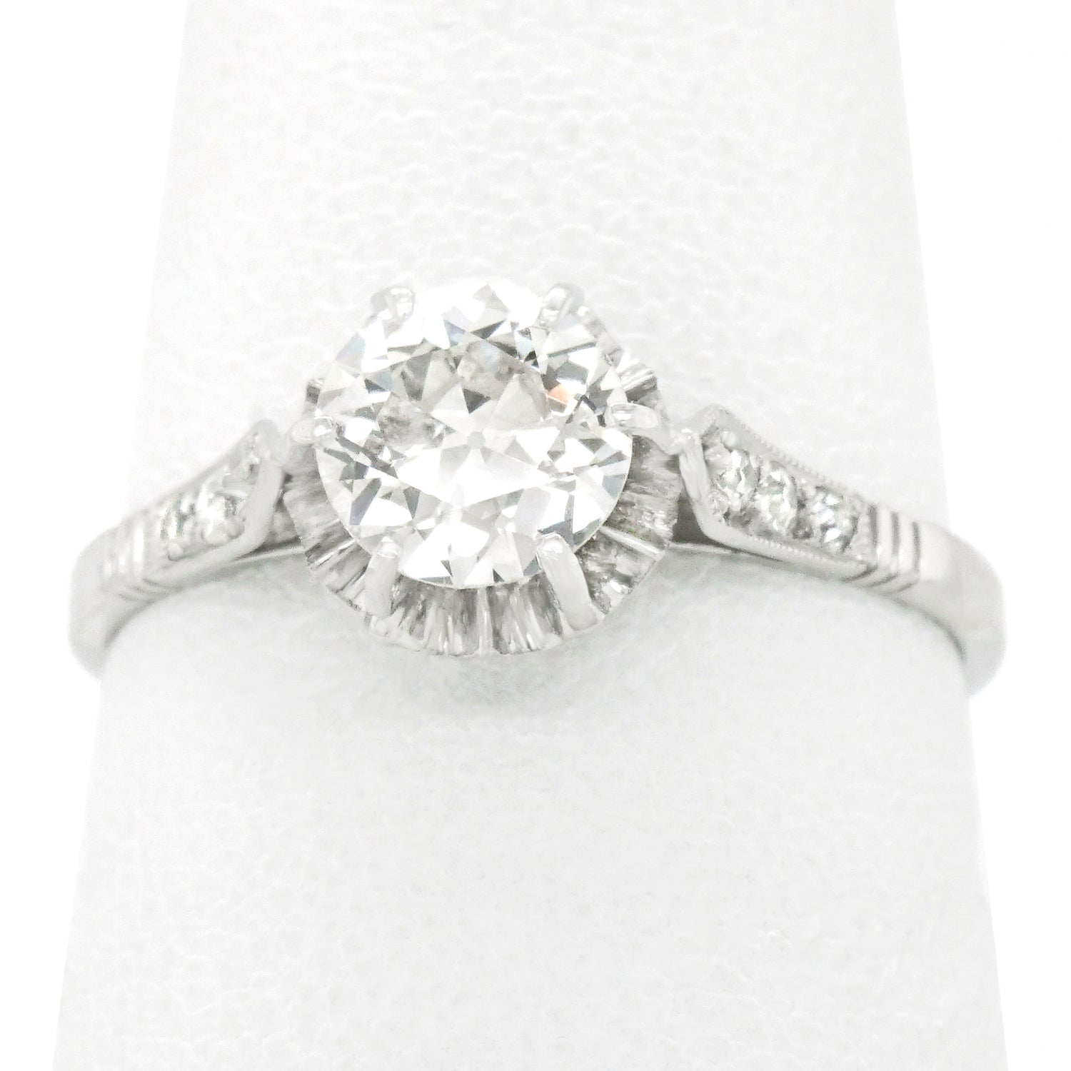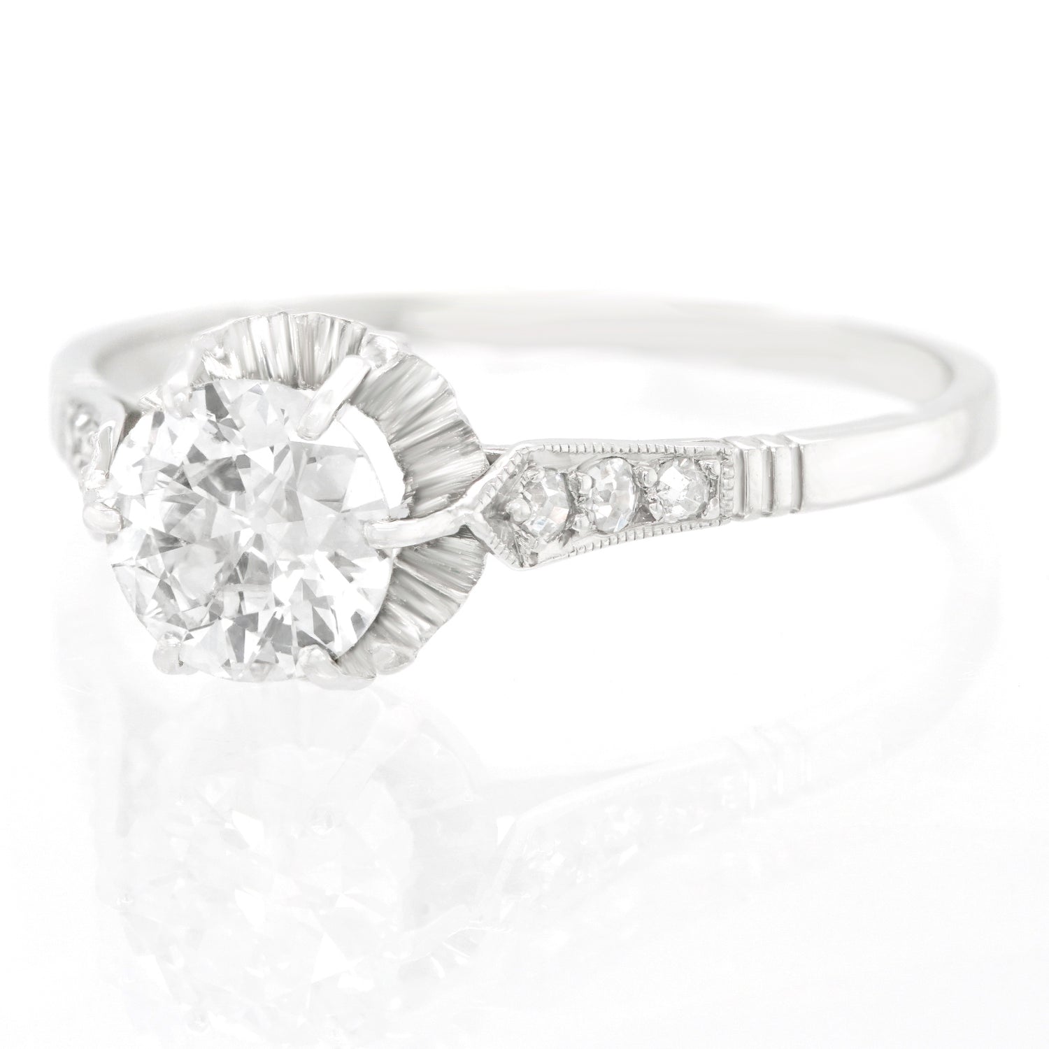 Stones: .80 carat H Color SI1 clarity old European-cut diamond and .08 additional accent diamonds