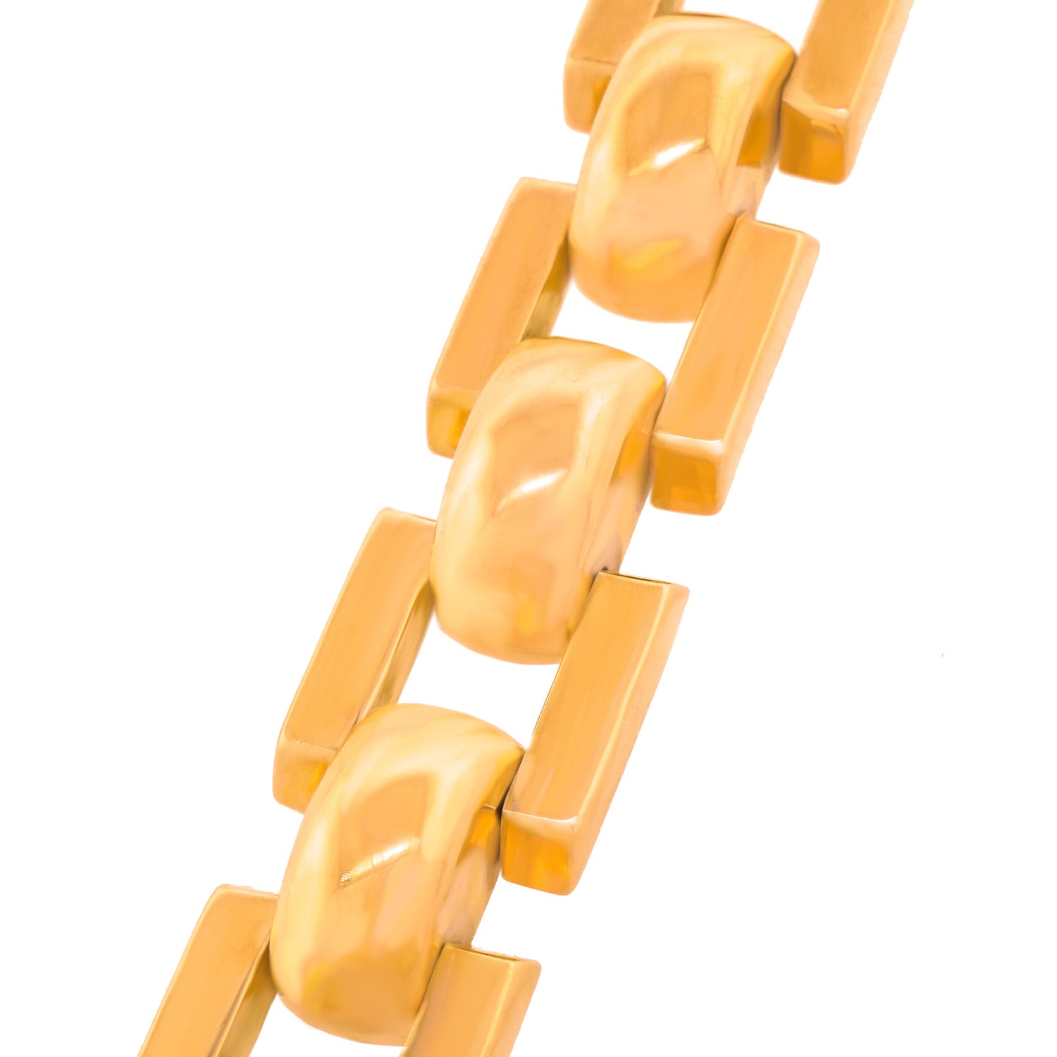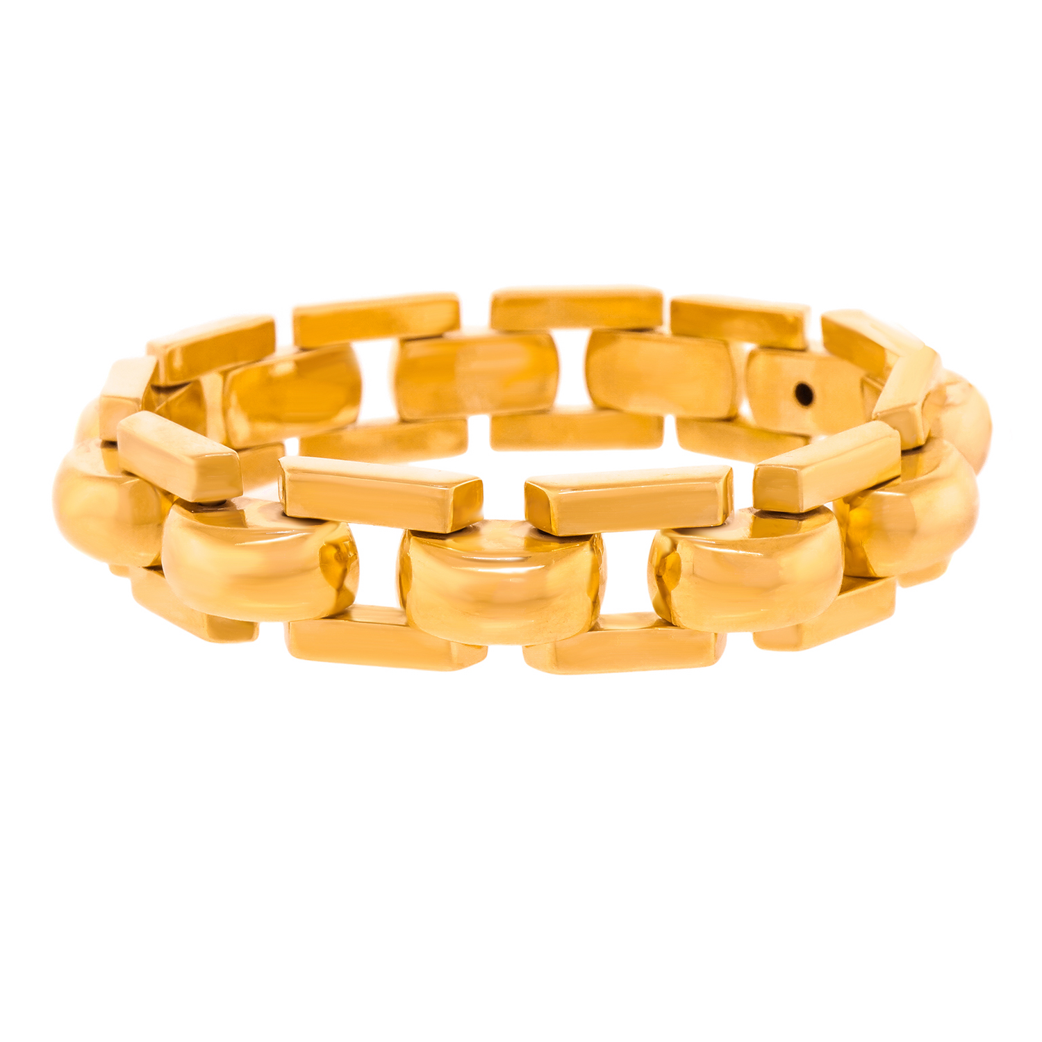 Circa 1930s, 18k, American. Art Deco design and chunky dimensionality come together in this stylish 1930s bracelet. Heavy and well-made in 18k yellow gold, the look is fearlessly fresh. This brilliant example of early twentieth-century American jewelry is in excellent condition.