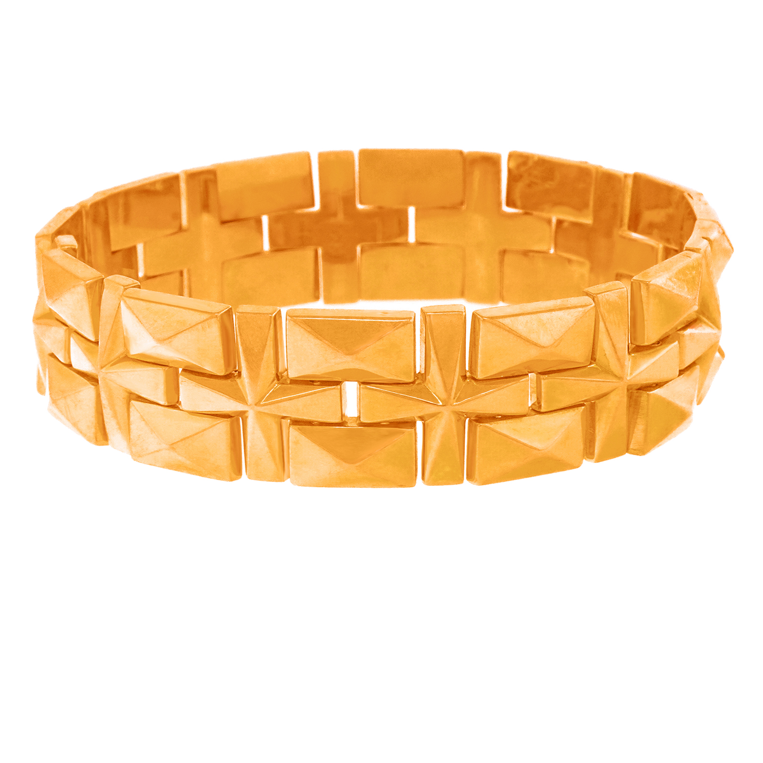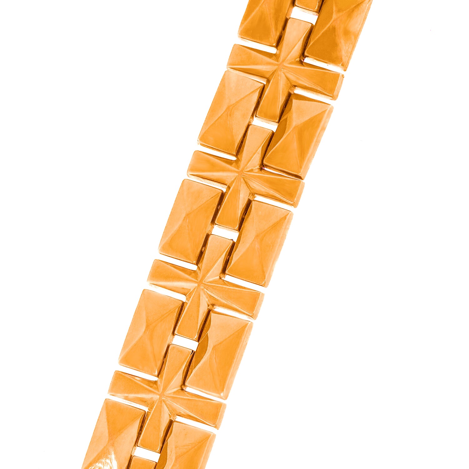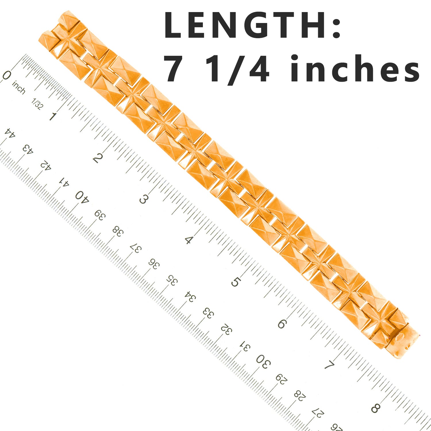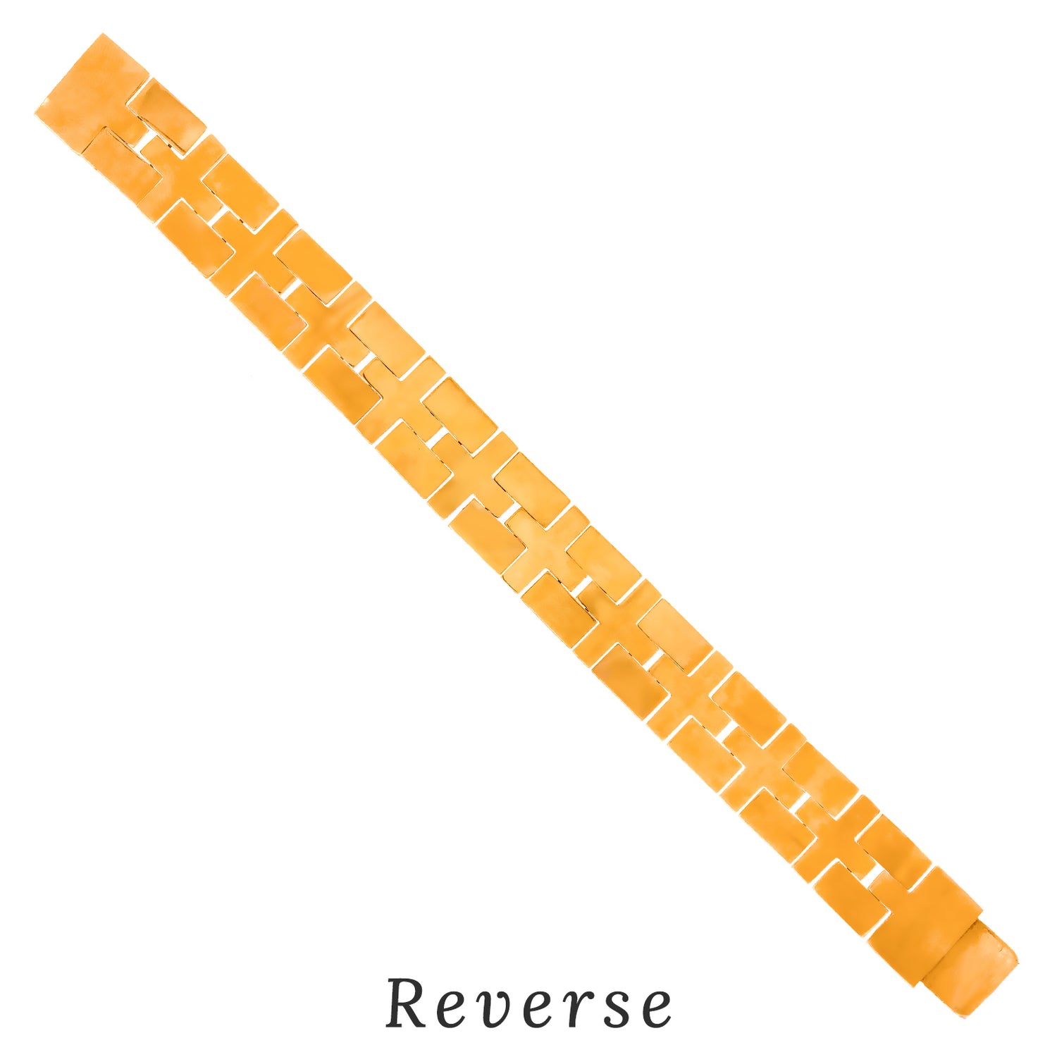 Circa 1920s, 18k, Paris, France. A particularly fine example of French Art Deco jewelry, this 1920s bracelet's chic geometry is underscored by the delicious visual of soft rose gold. The look is fearlessly fresh. Excellent condition.