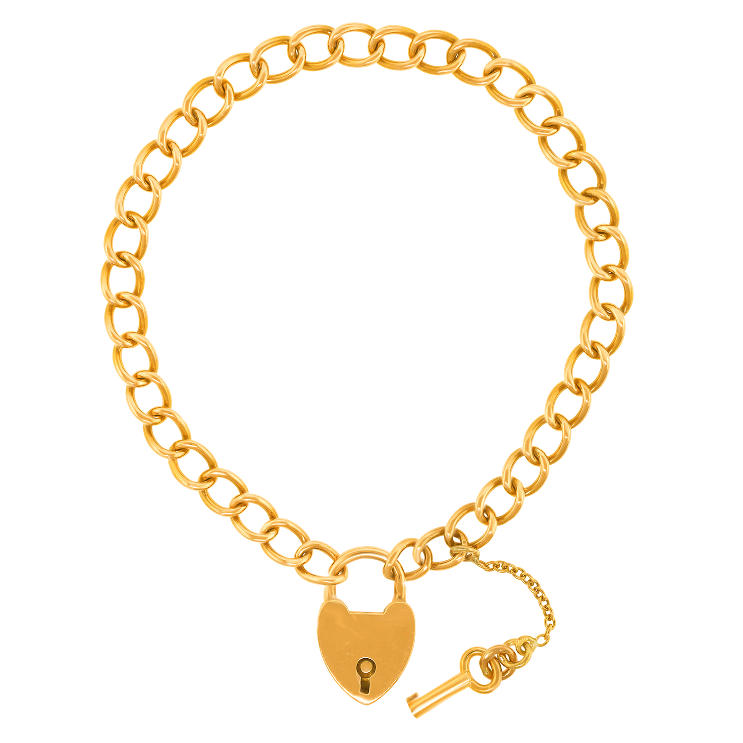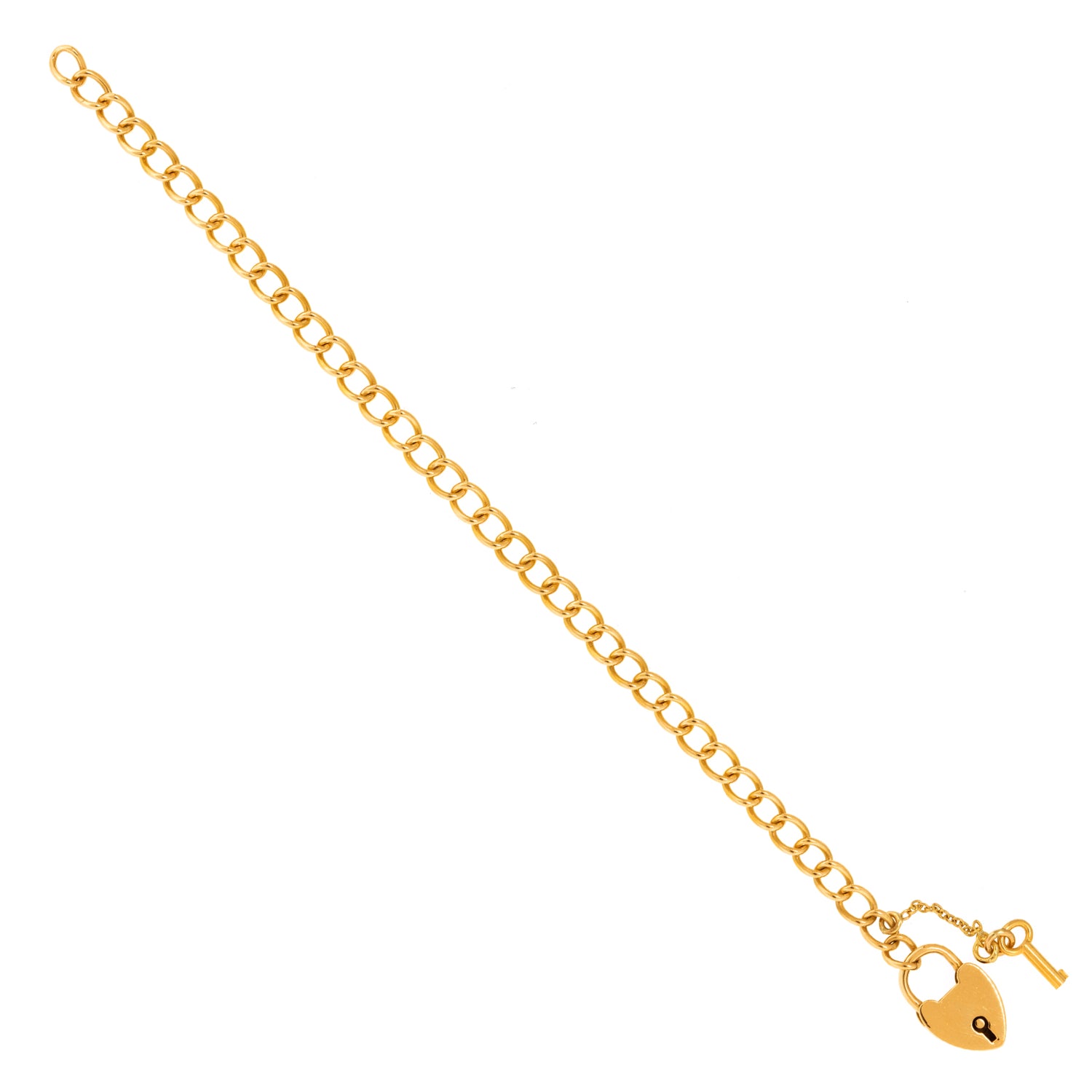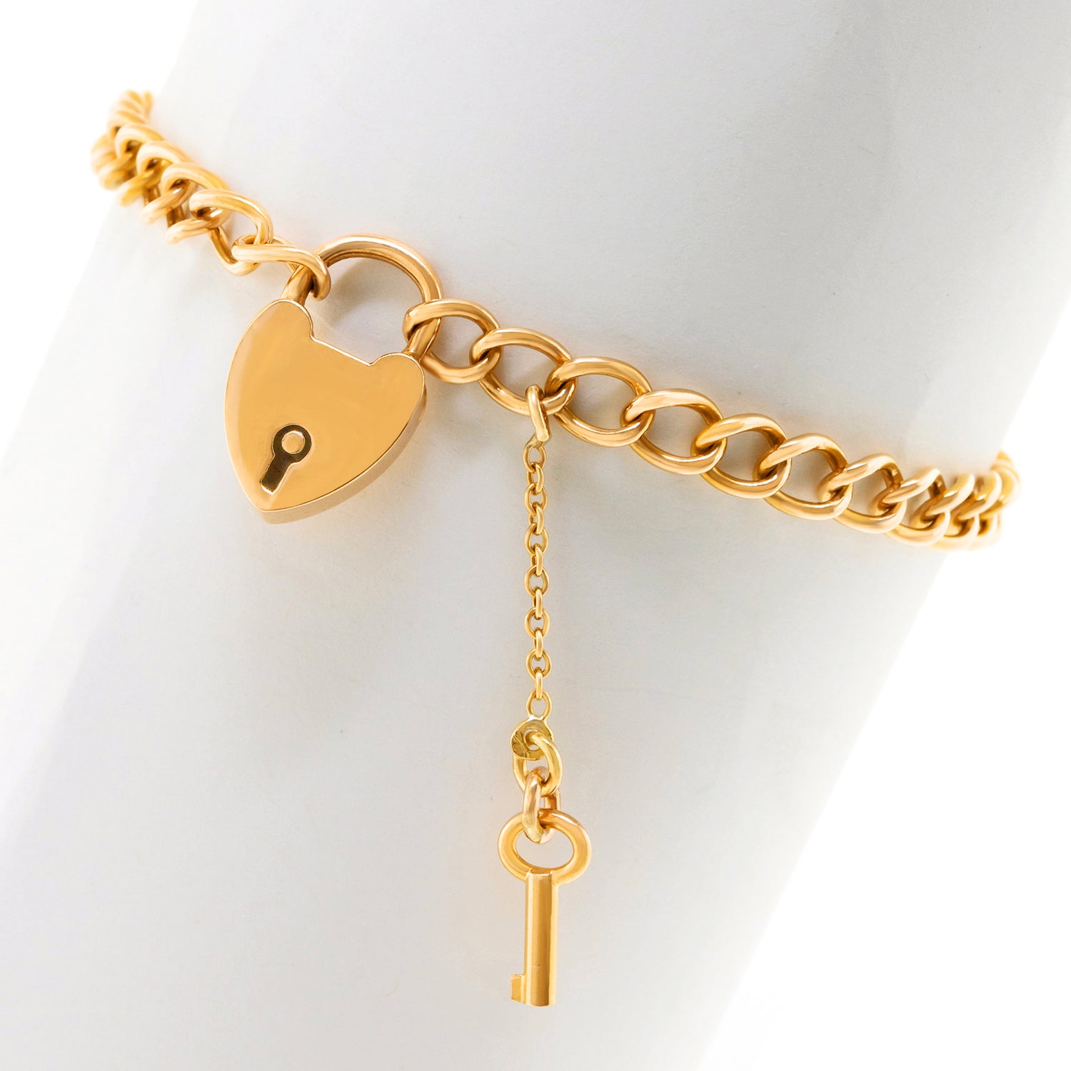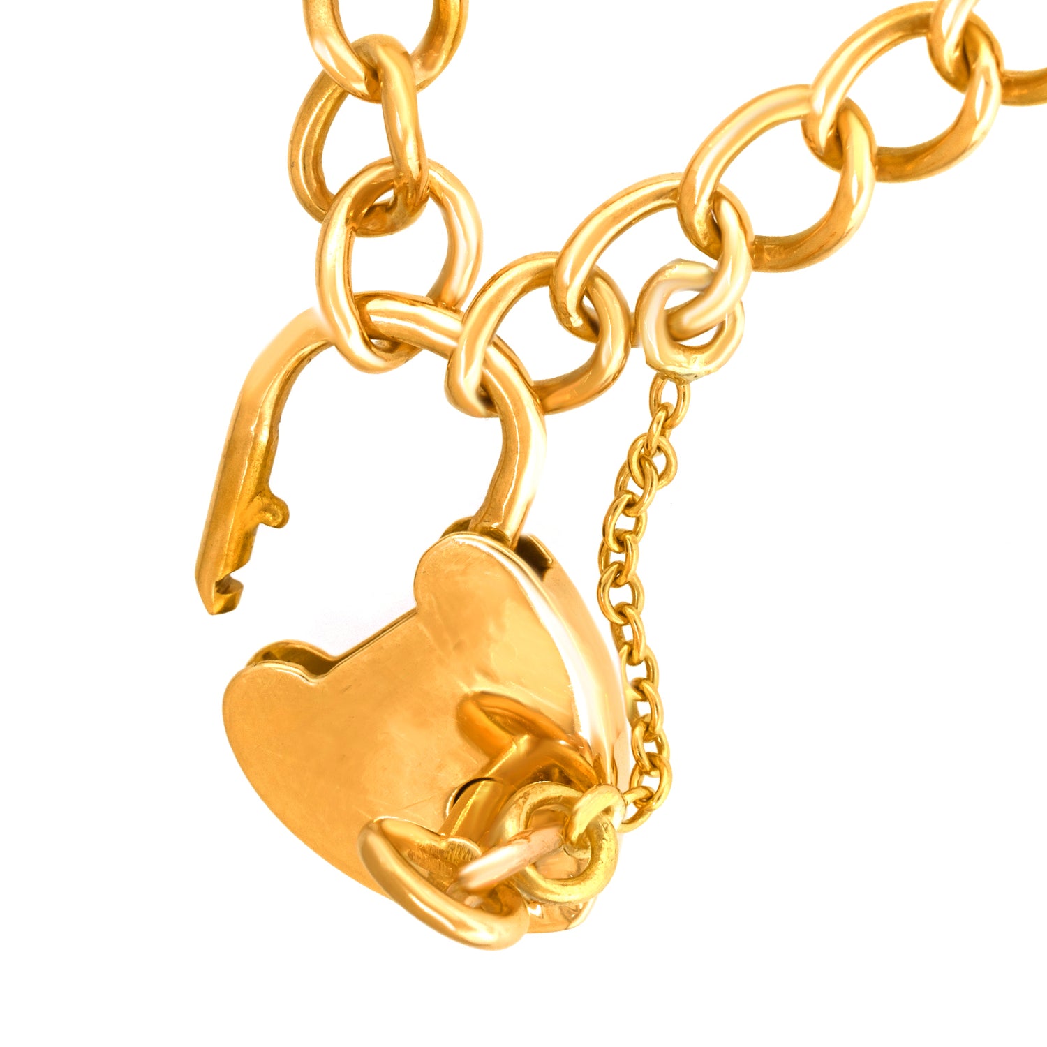 Circa 1920s, 14k, American. This chic antique lock and key bracelet is the perfect yellow-gold accessory. The look is Art Deco whimsy at its stylish American best. Finely fabricated in fourteen-karat yellow gold, this piece, with its working lock and key, is in excellent condition.