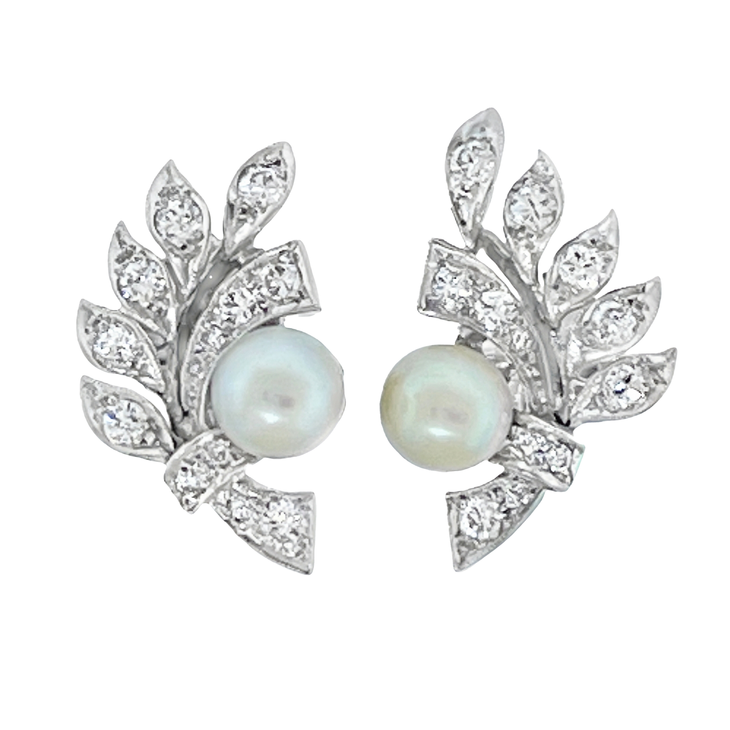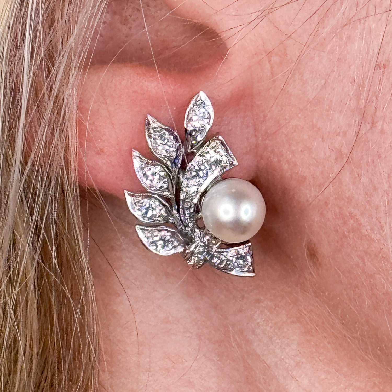 Pearl and 1.25 carats total of H-G color, VS clarity diamonds