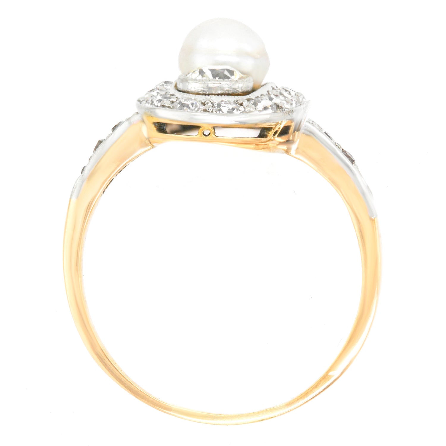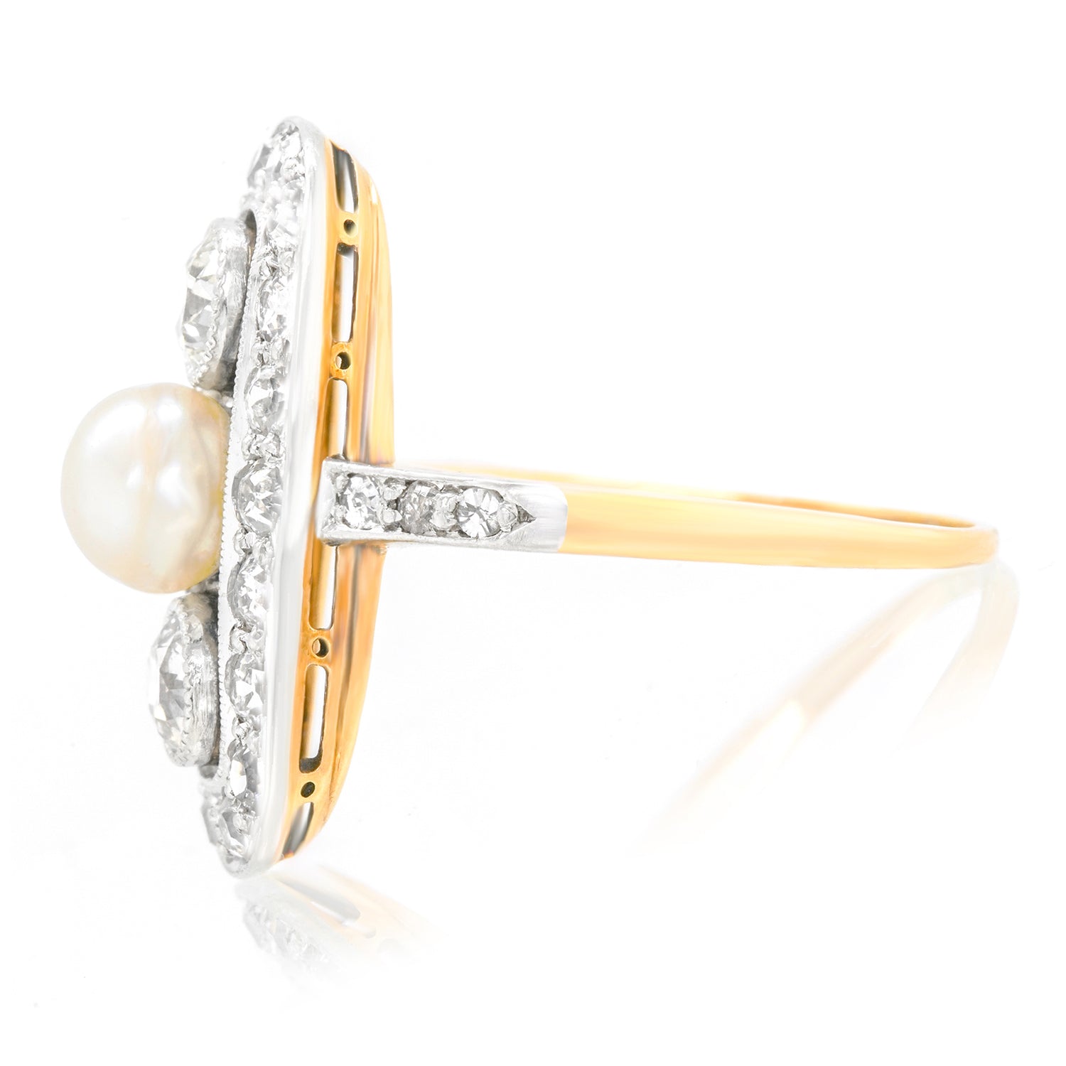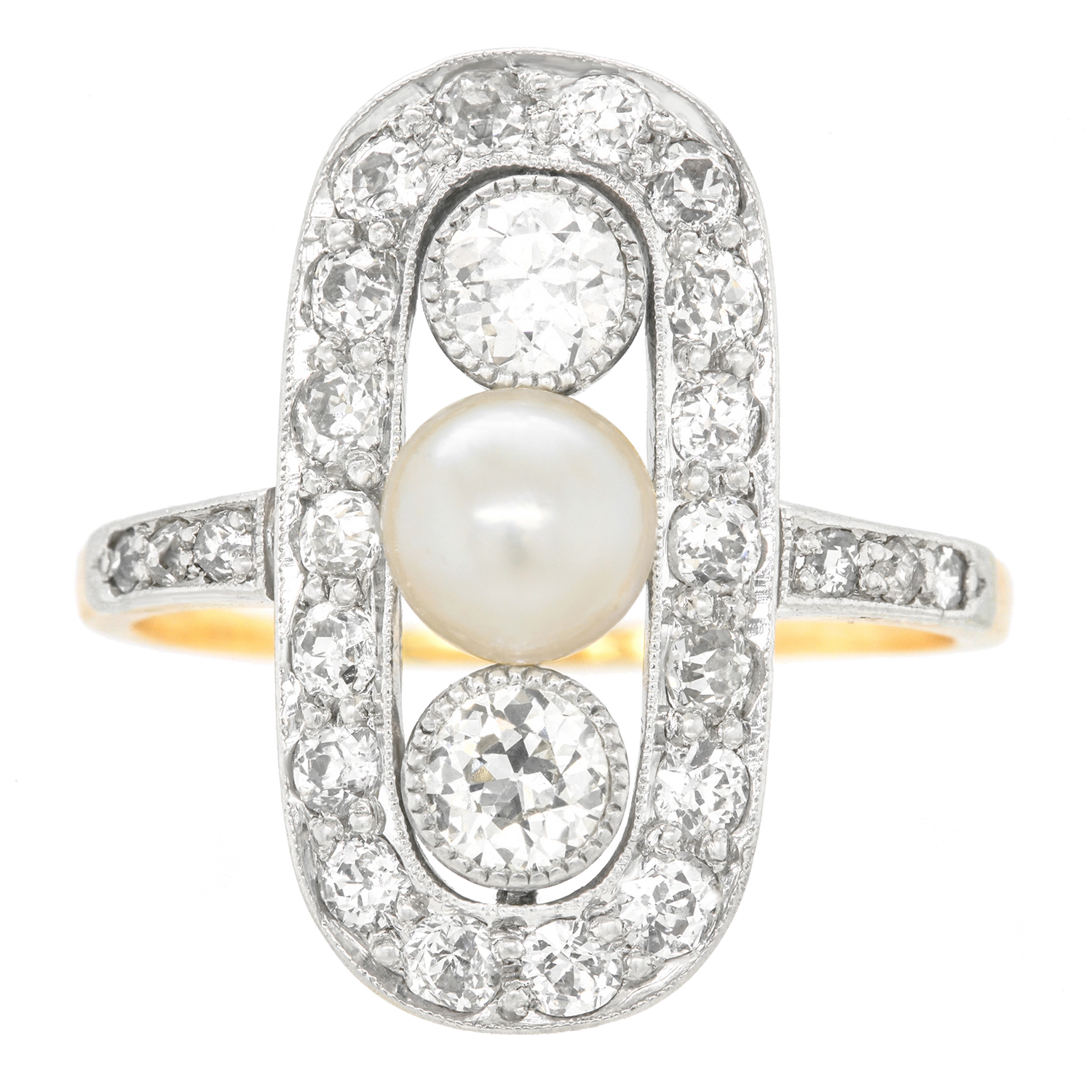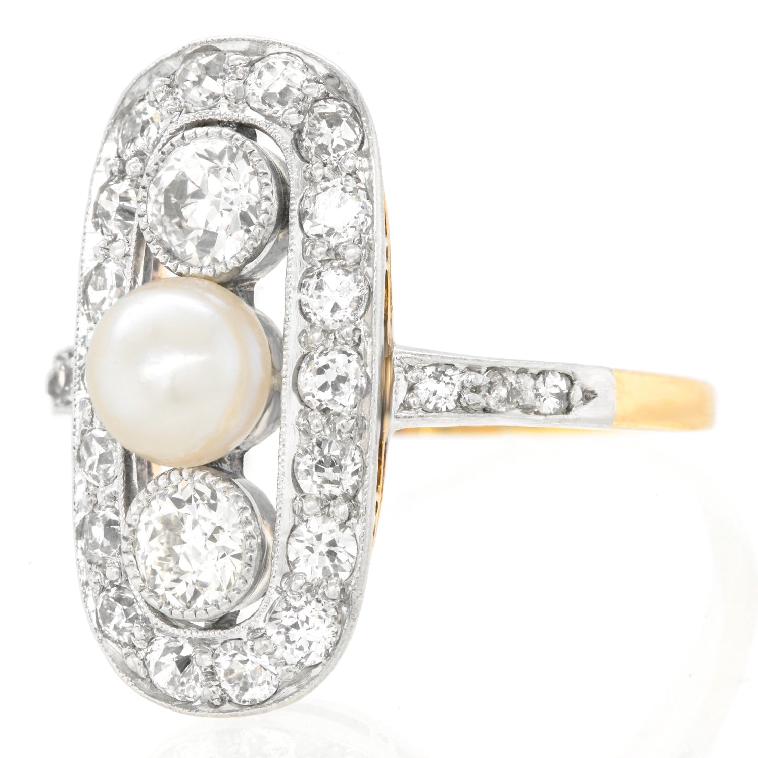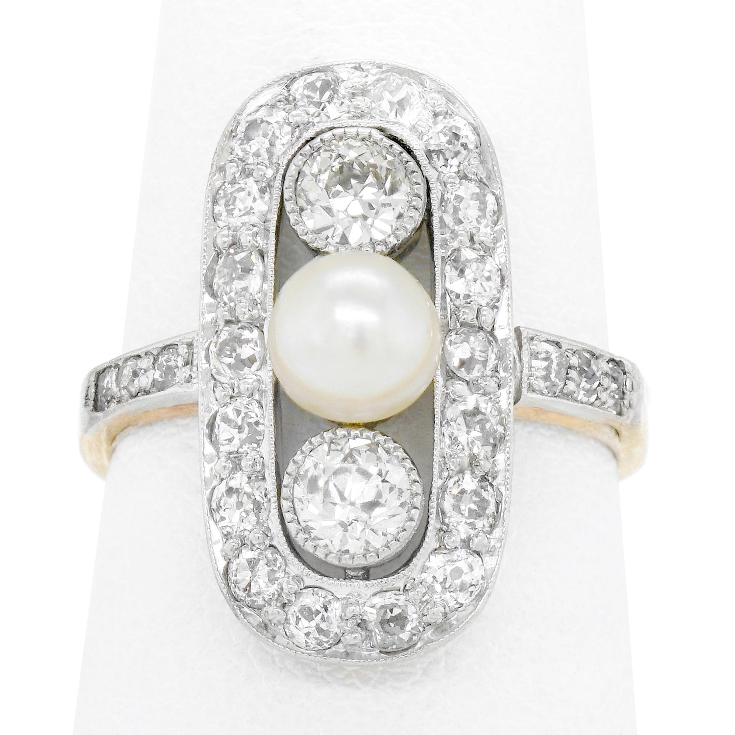 Stones: 1.0 carats of H color, SI1 clarity diamonds, and pearl, possibly natural