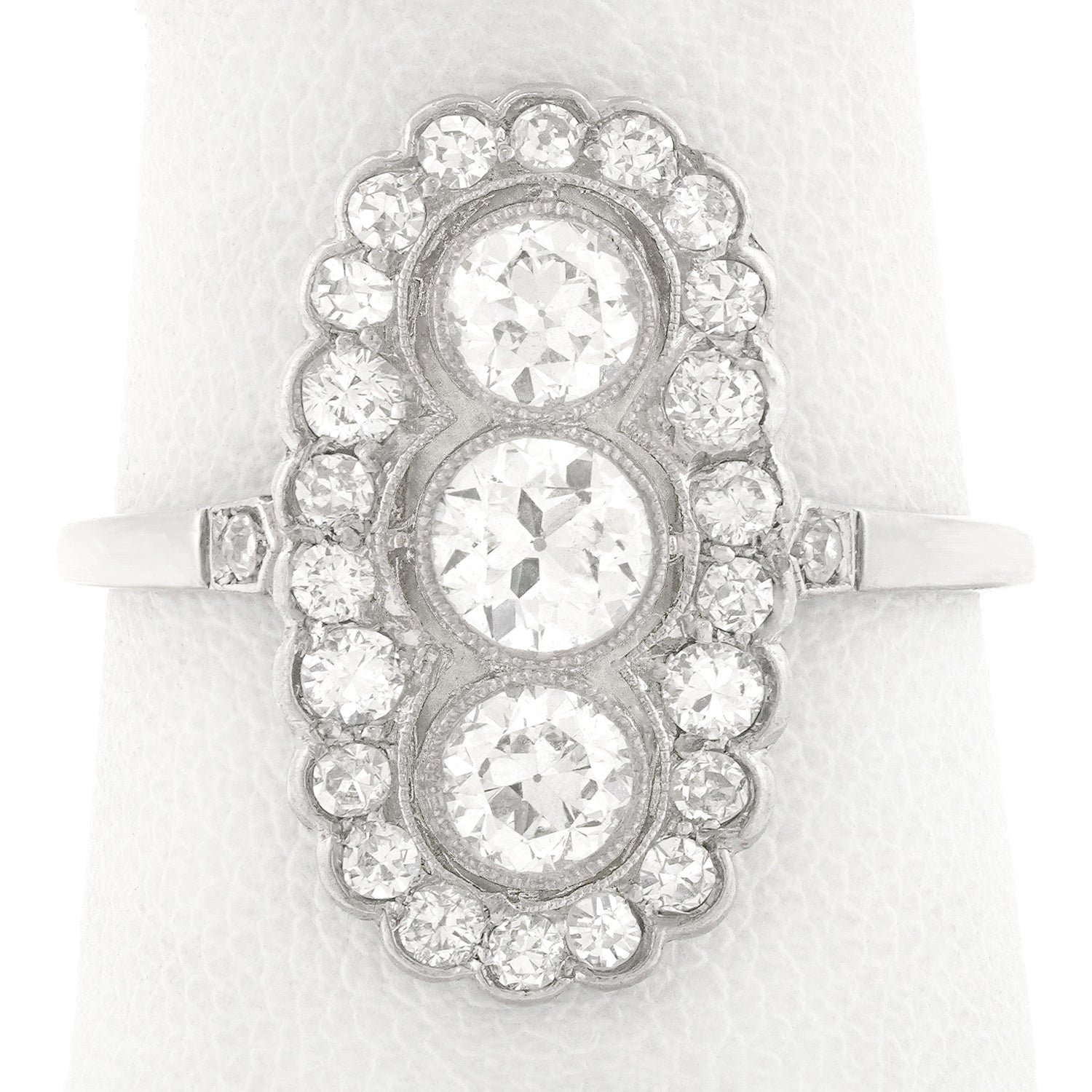Circa 1920s, Platinum. This Art Deco jewel reflects the confident style that is the hallmark of twenties jewelry. Featuring 1.50 carats of exceptional white diamonds, fine fabrication in platinum completes the picture. Excellent condition.