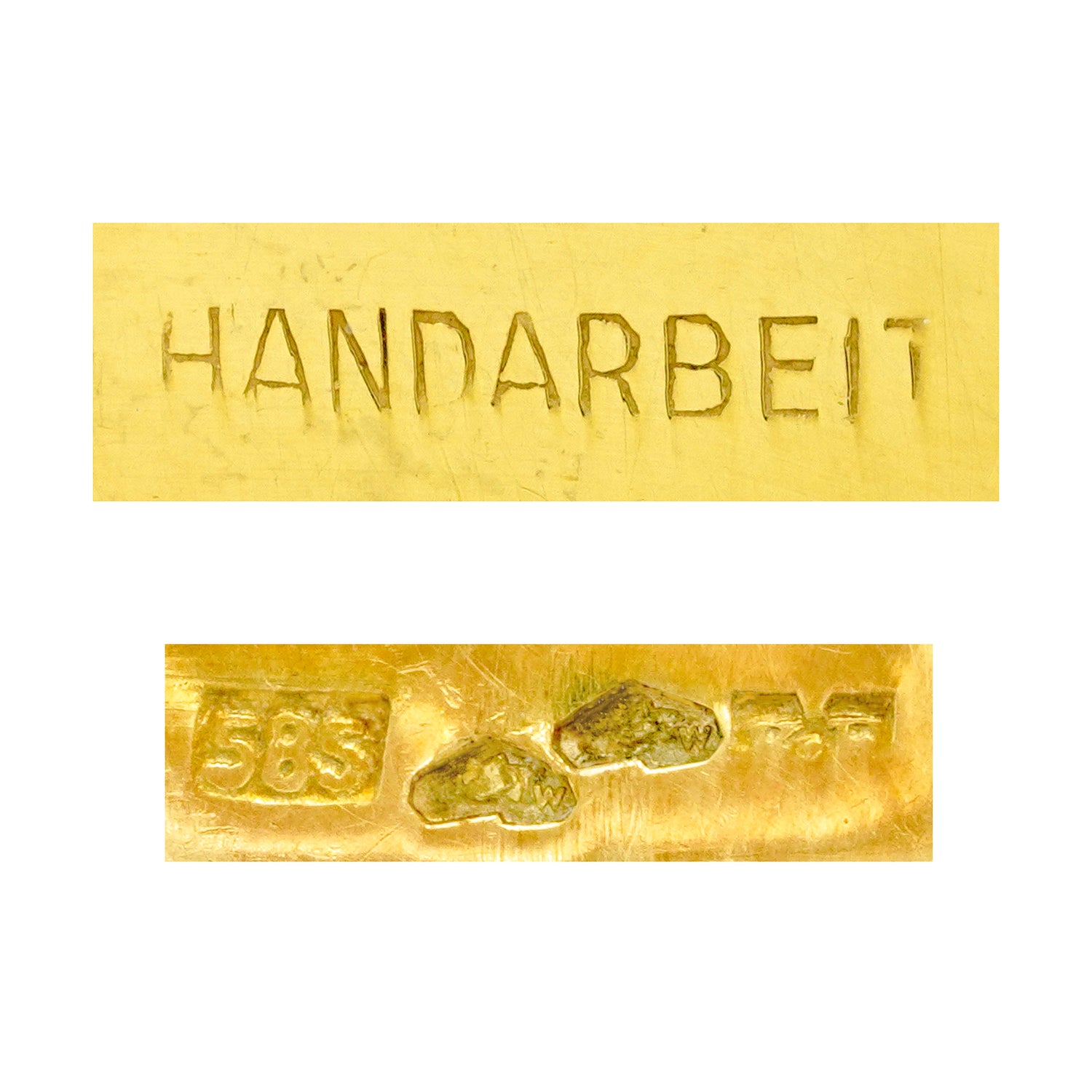 Hallmarks: 585 for 14k, Austrian Guarantee marks for 14k and Vienna, goldsmith's mark and Handarbeit for handmade