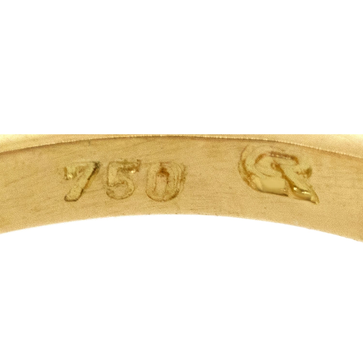Hallmarks: 750 for 18k and stylized R, likely later marks by reseller