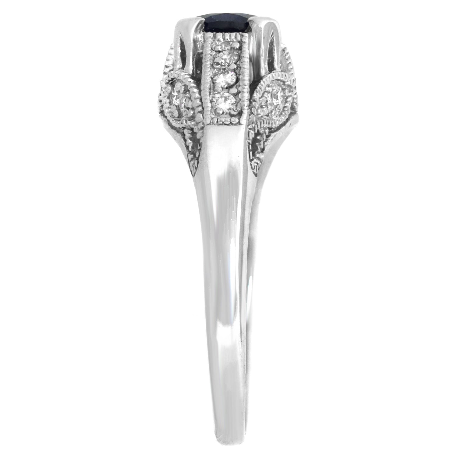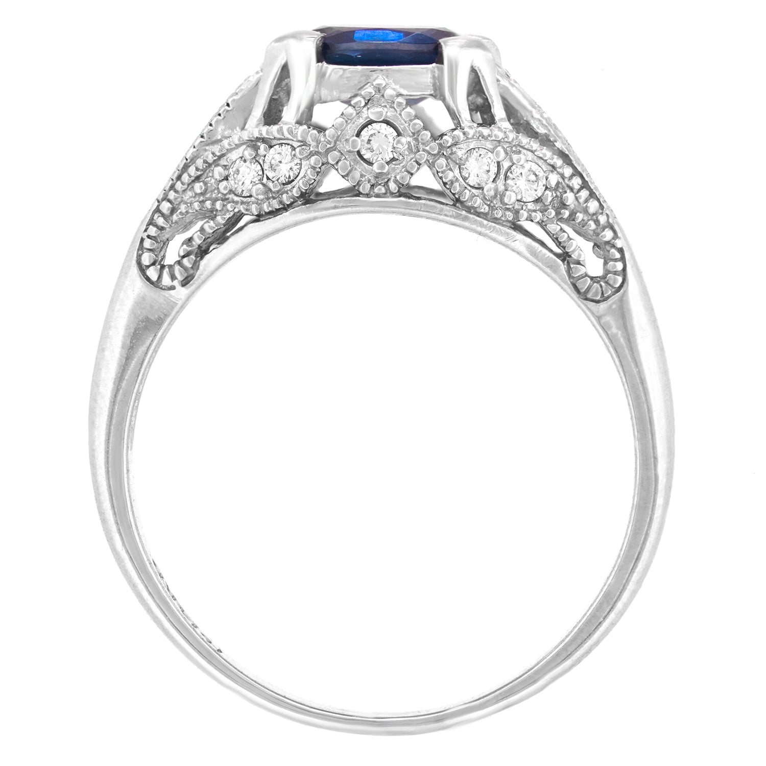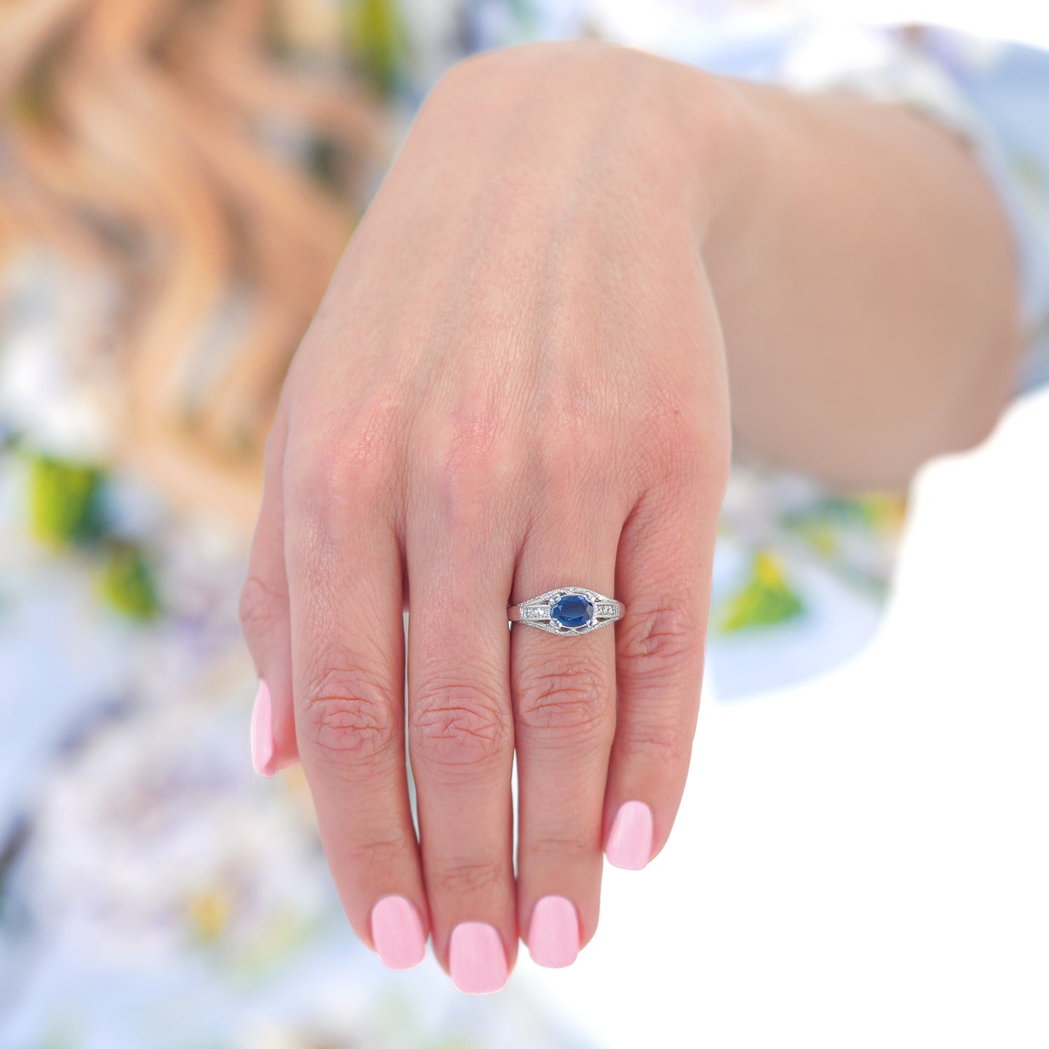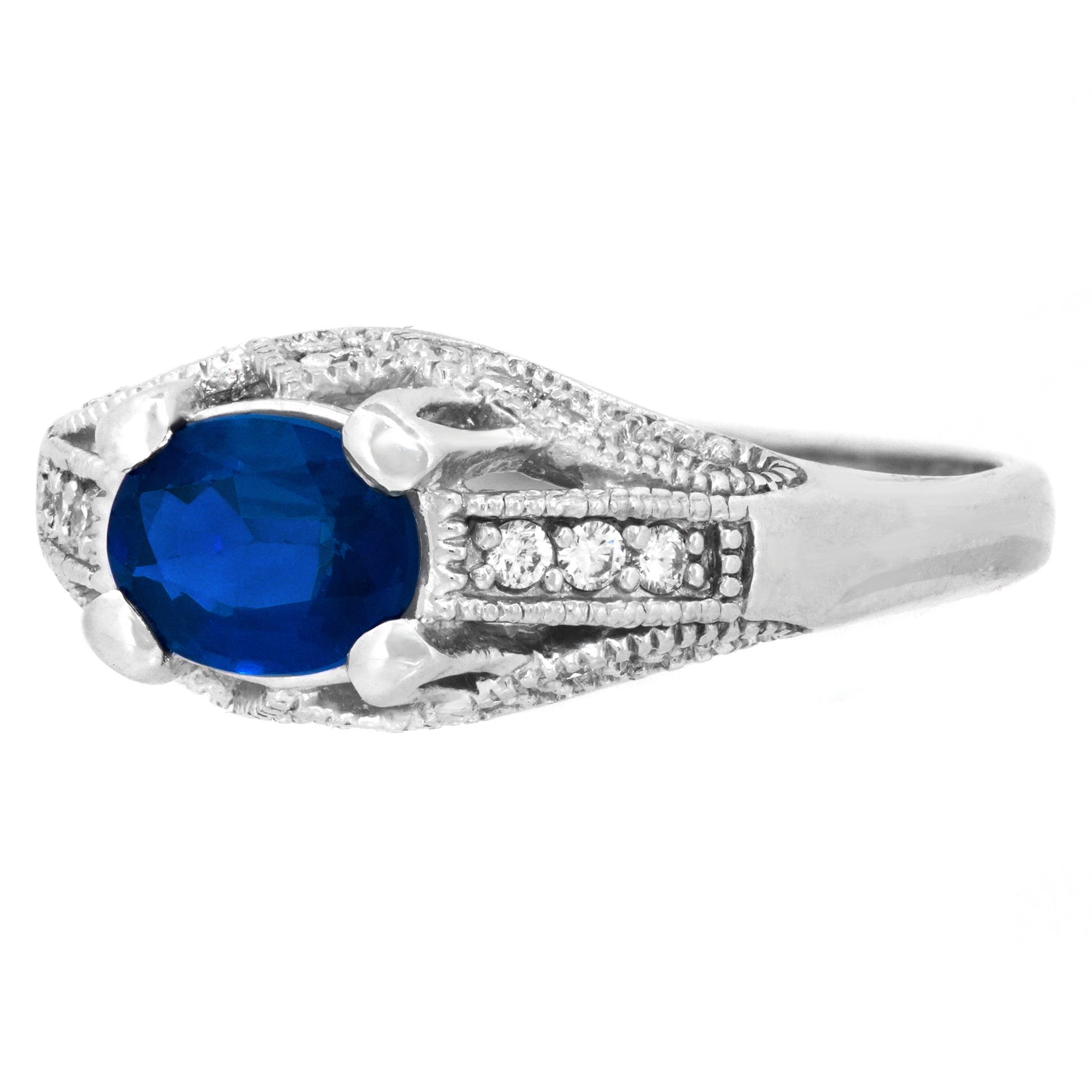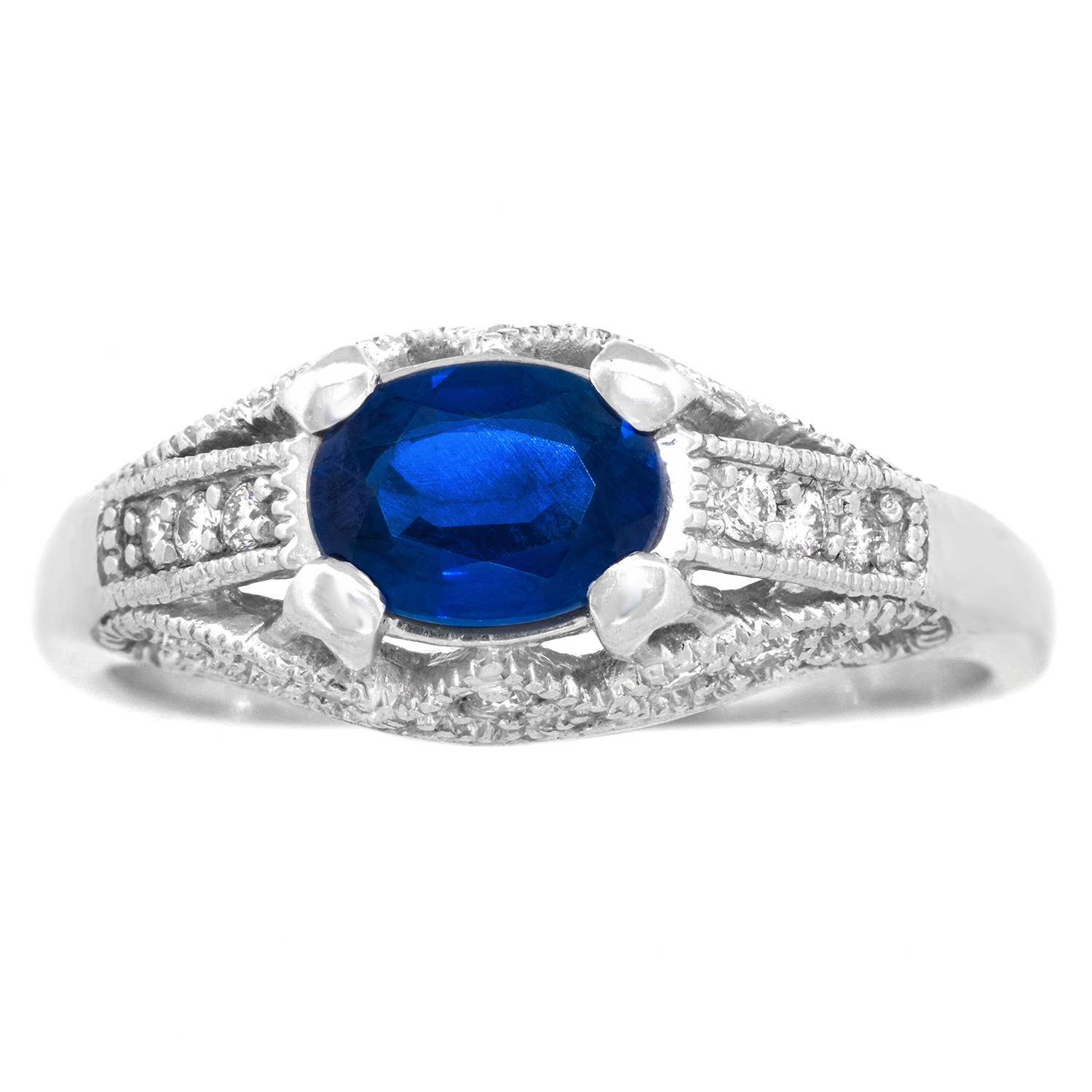 Stones: 1.0-carat sapphire and .16 carats total weight F color, VS clarity diamonds