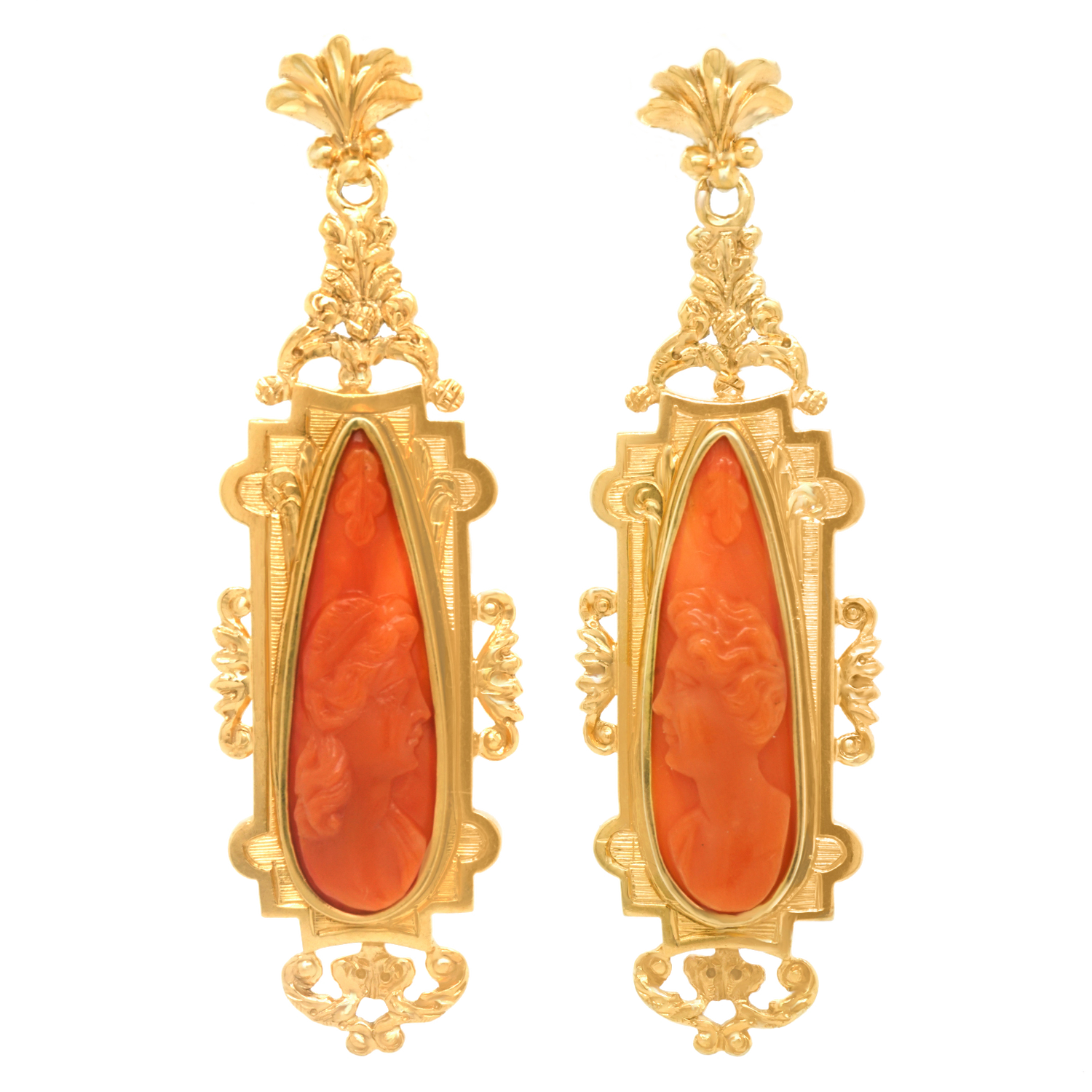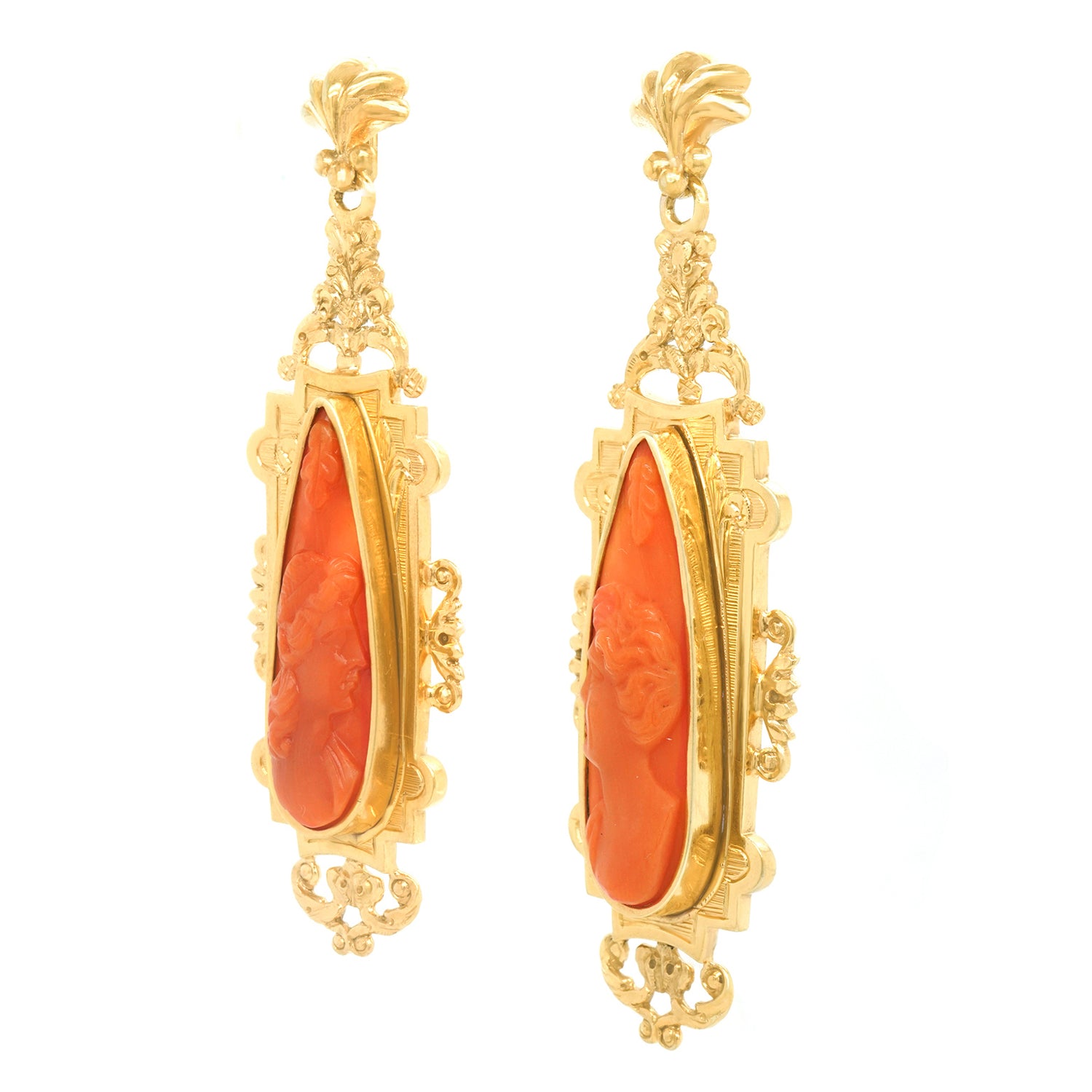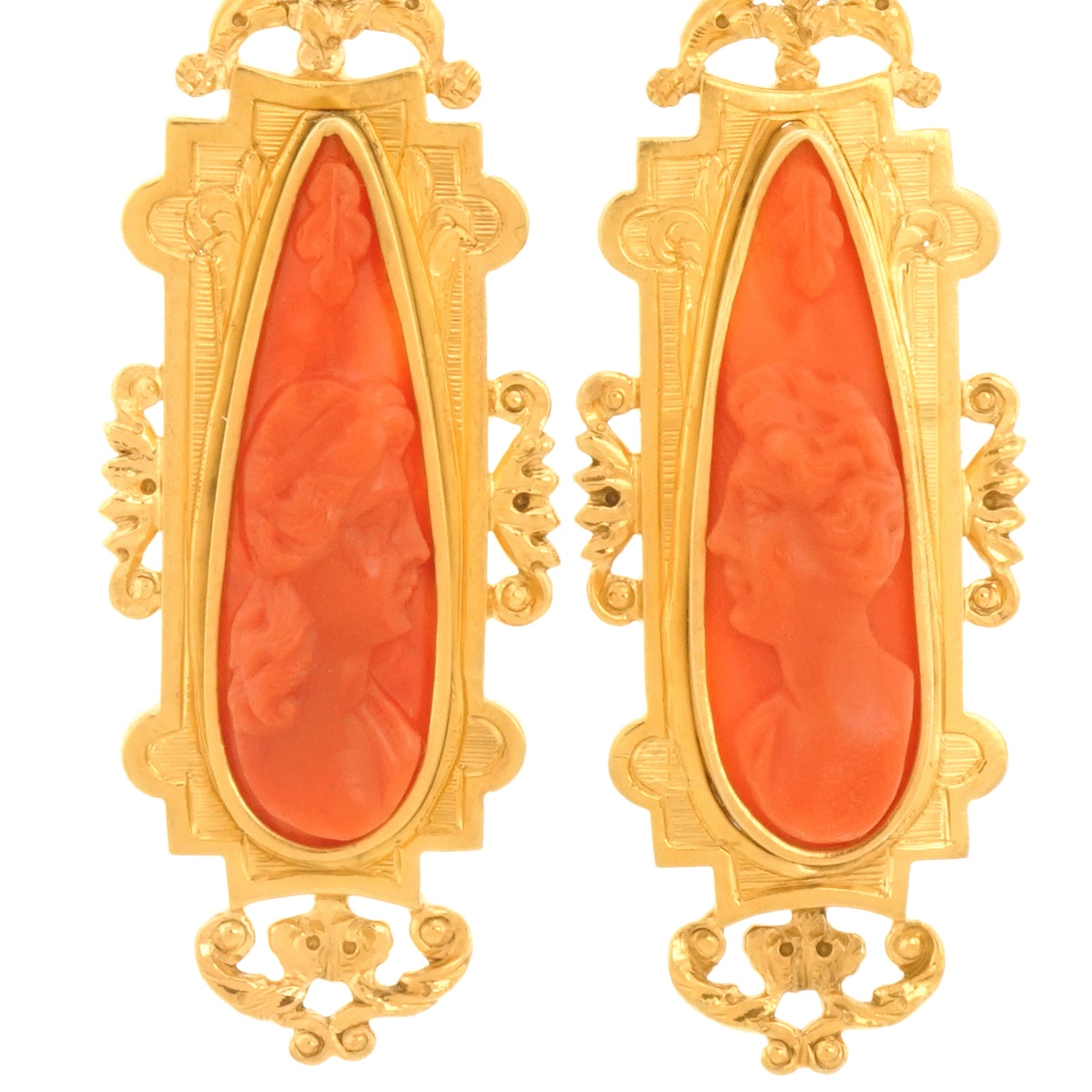 #22148 - Baroque Revival Coral Cameo Chandelier Earrings