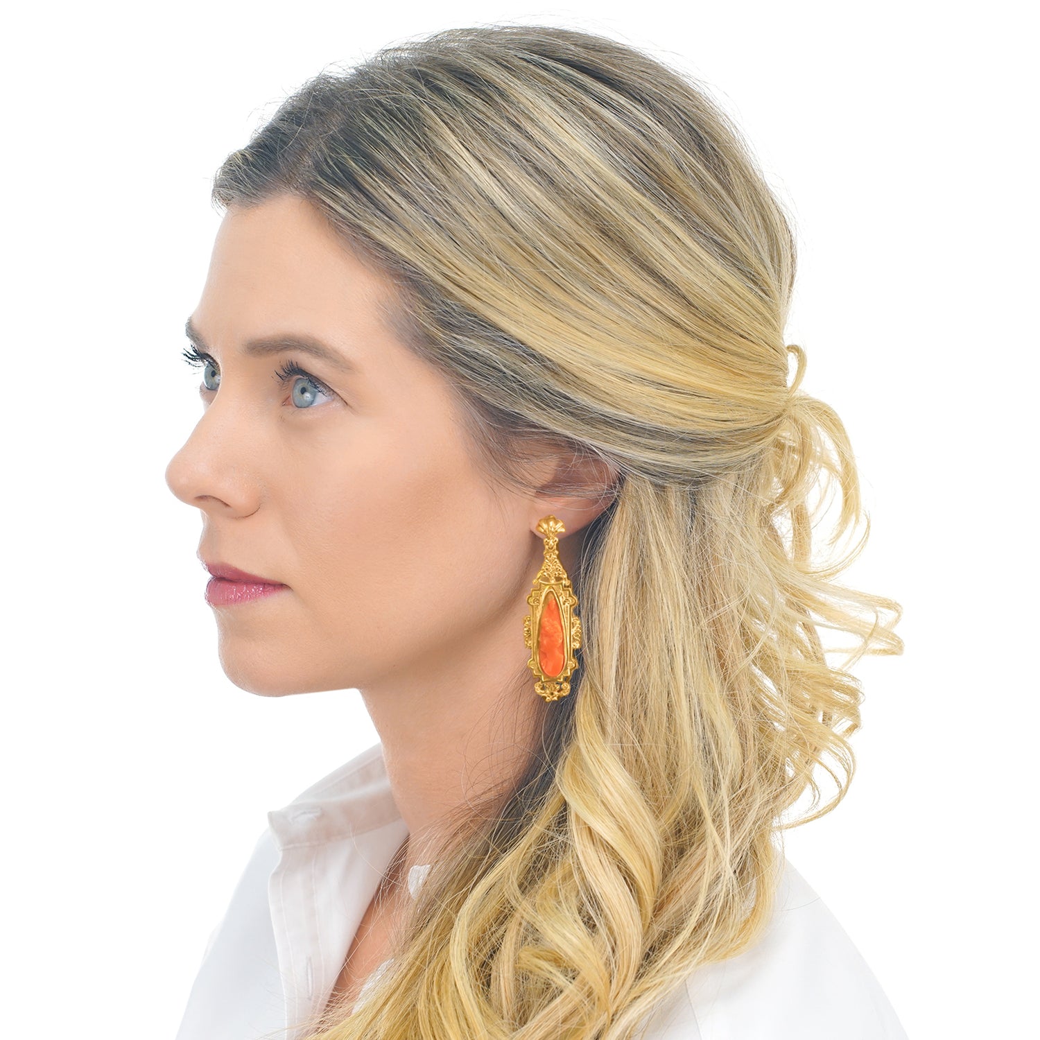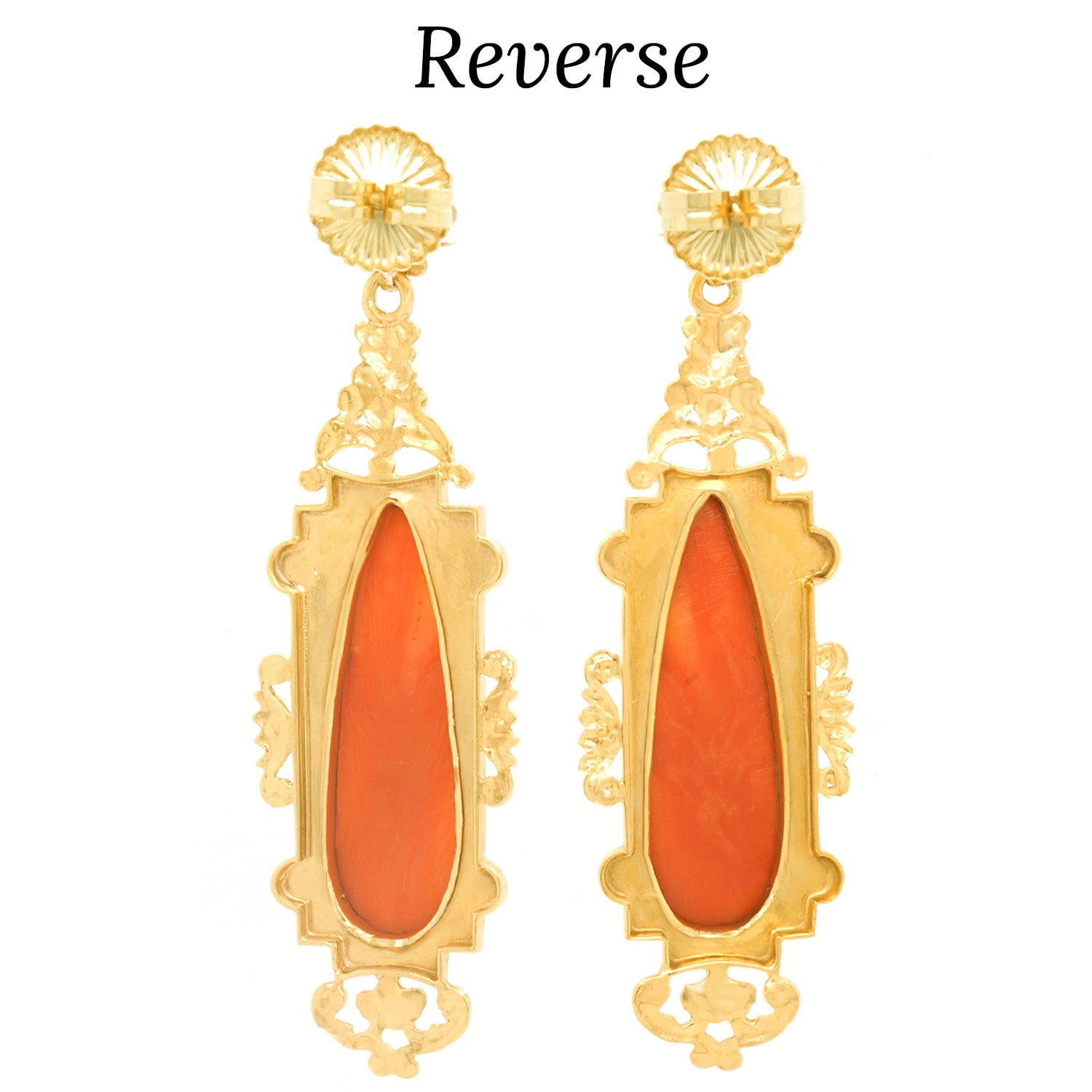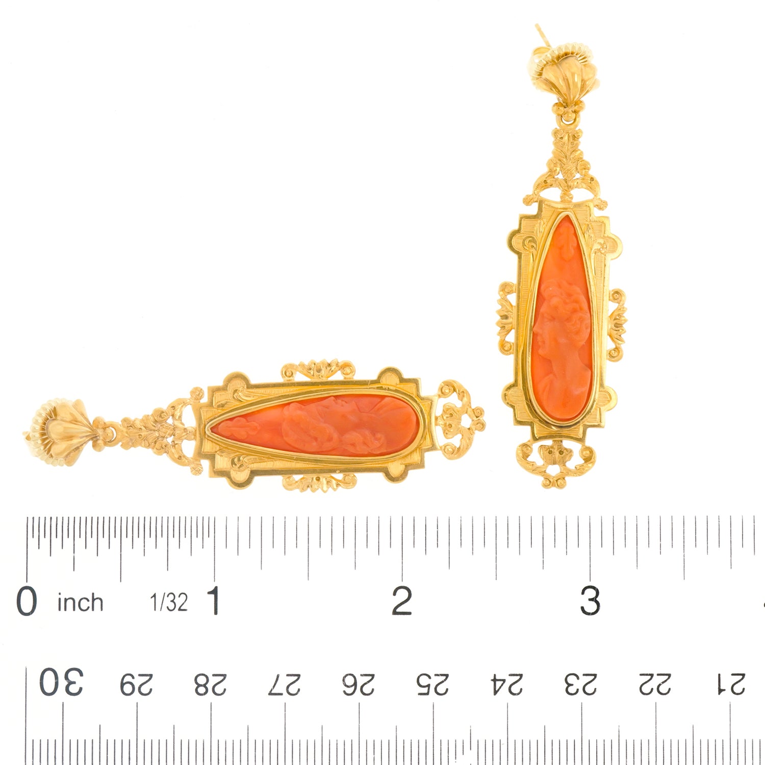 #22148 - Baroque Revival Coral Cameo Chandelier Earrings