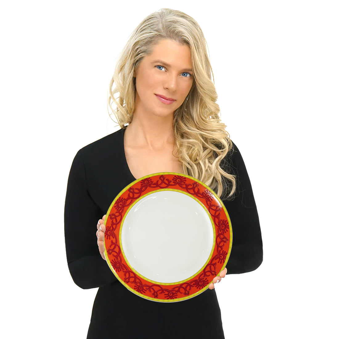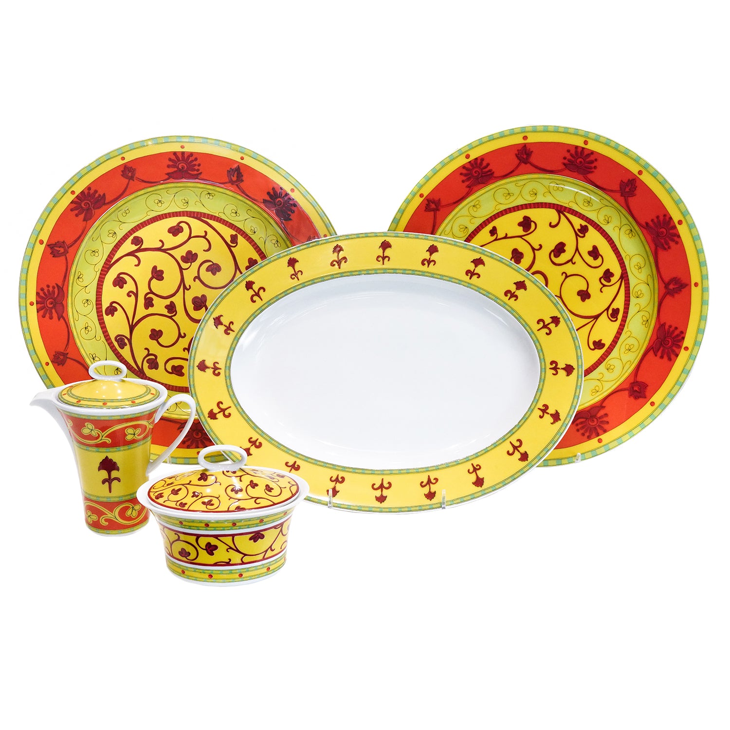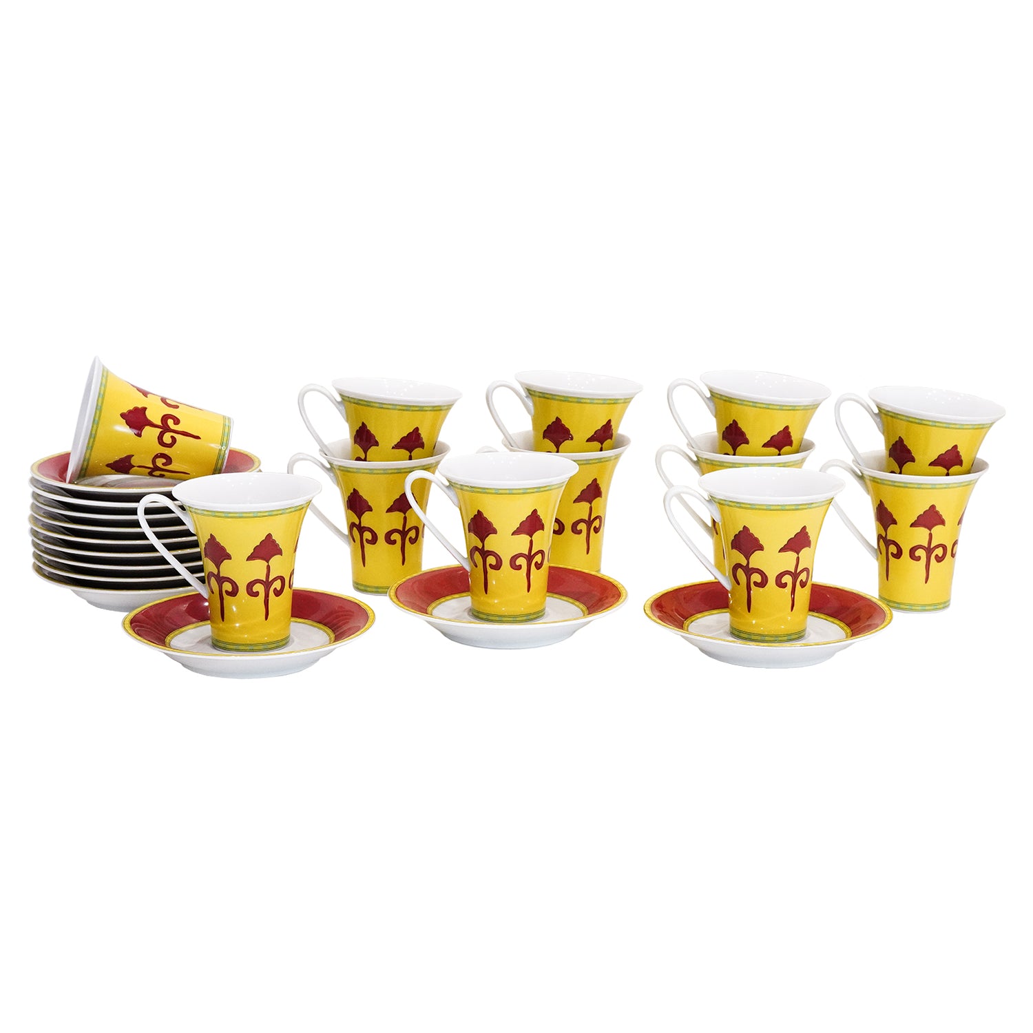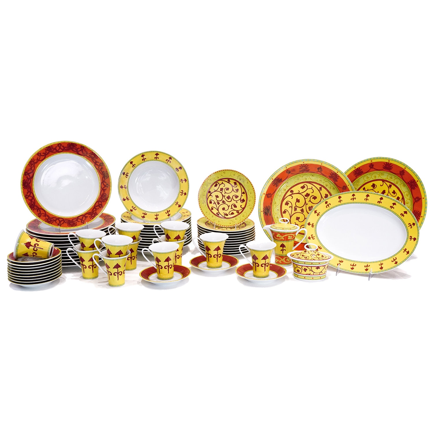 Circa 1990s, by Paul Wunderlich for Rosenthal Studio-Line, Germany. Found in the gorgeous Bokhara pattern by Rosenthal, this dinner set is complete for 12. Perfect for your urban farmhouse, it is comprised of 64 pieces. Excellent condition throughout.