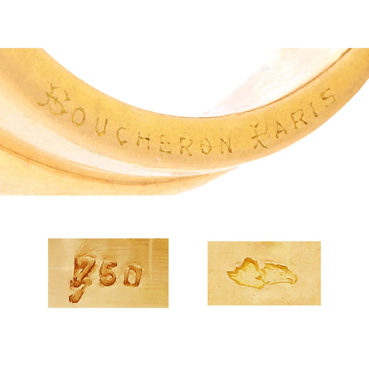 Circa 1920-30s, 18k, by Boucheron, France. This sublime Art Deco diamond ring from the storied house of Boucheron features 3.20 carats of E to F color, VVS diamonds. The look is twenties French jewelry at its fashionable Parisian best! The Deco narrative is sleek with sophisticated modernist style notes. The ring is finely fashioned, substantial, and comfortable, all the qualities we expect from Boucheron. Excellent condition.