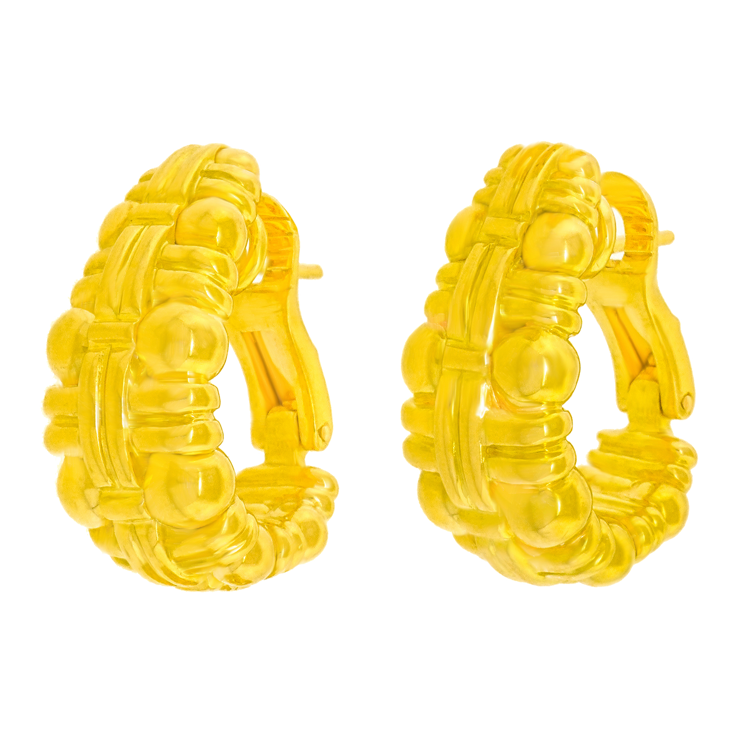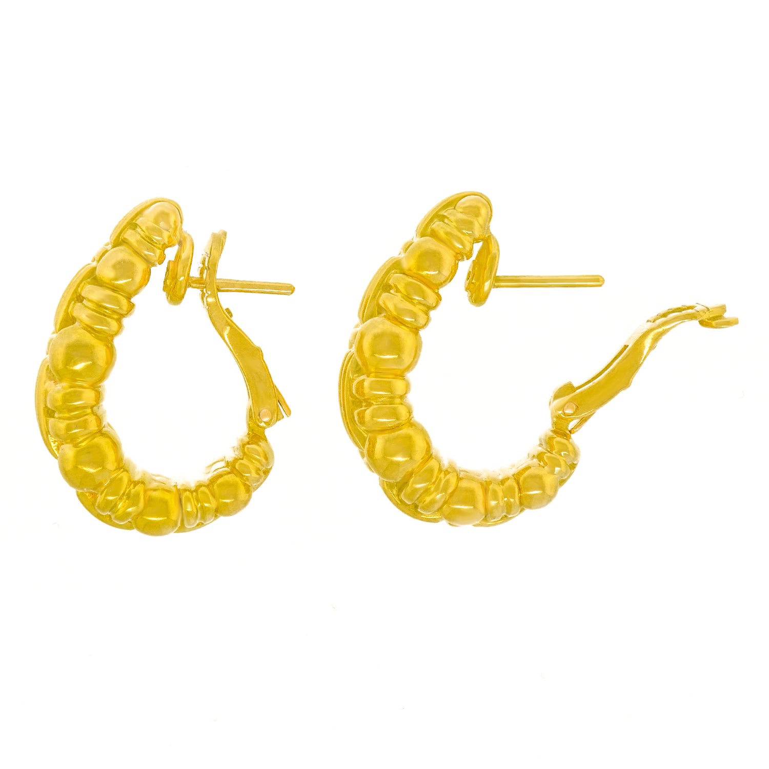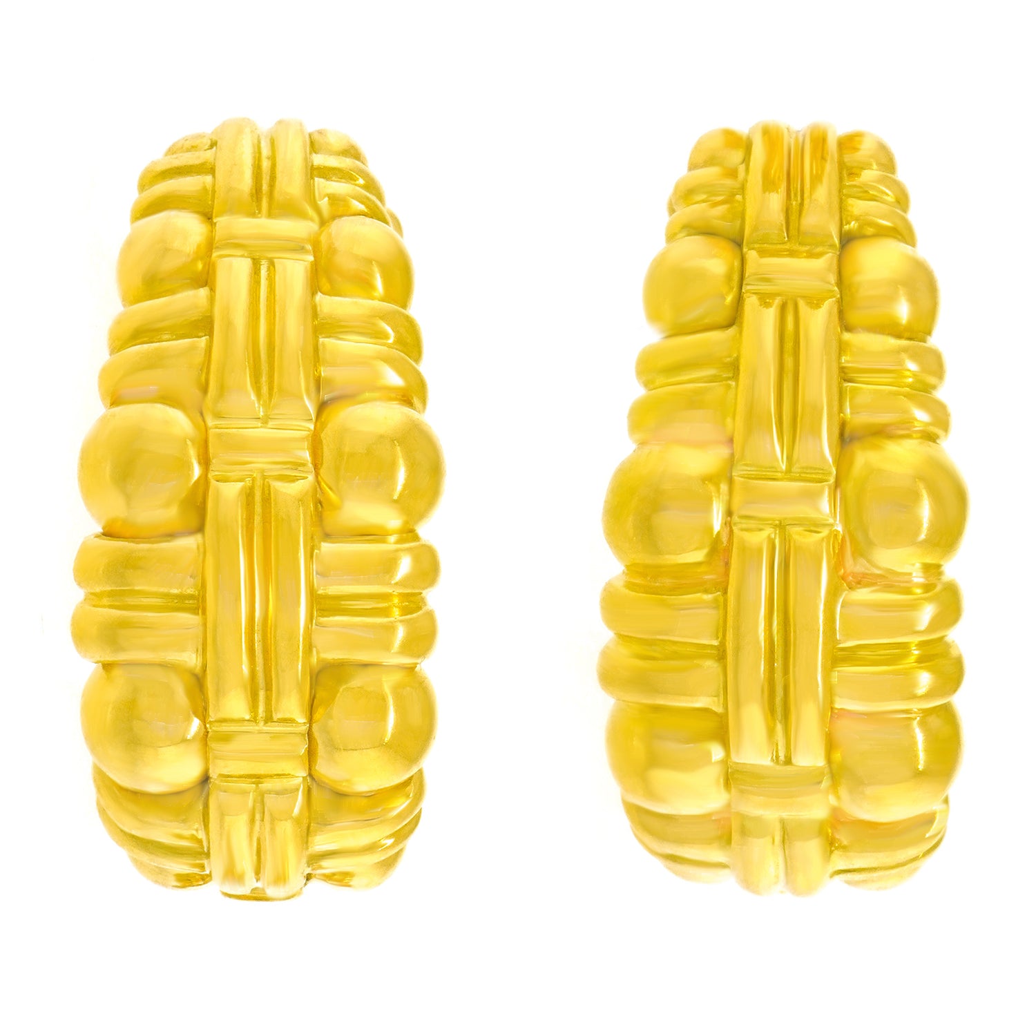 Circa 1960s, 18k, by Boucheron, France. These yellow gold earrings are very stylish, very Parisian, and so very Boucheron! Their restrained modernist design effortlessly dresses up and down, perfect for any moment of fashion. Meticulously fabricated in polished yellow gold, they are in excellent condition.