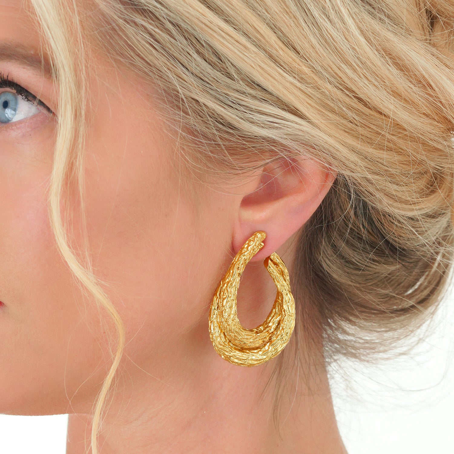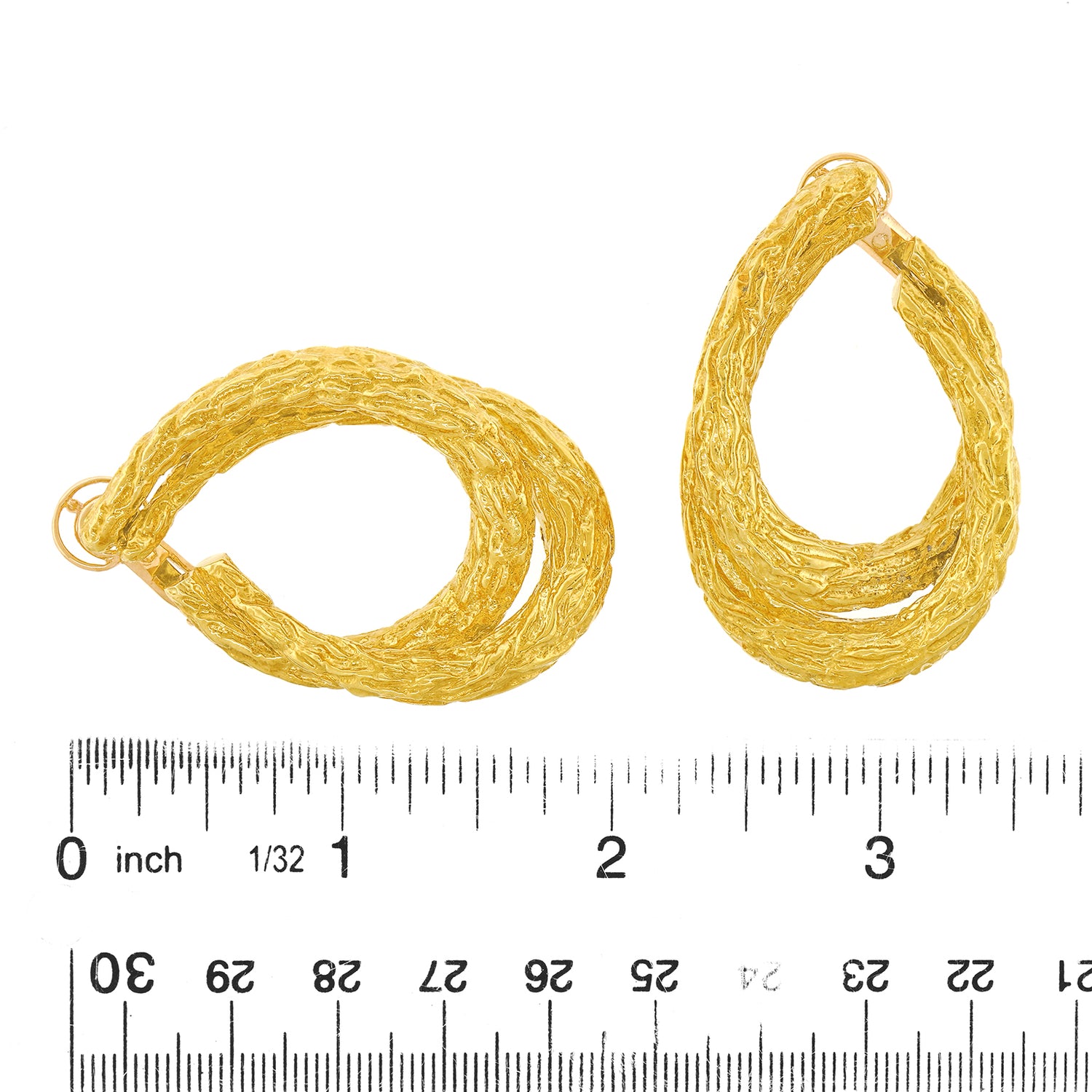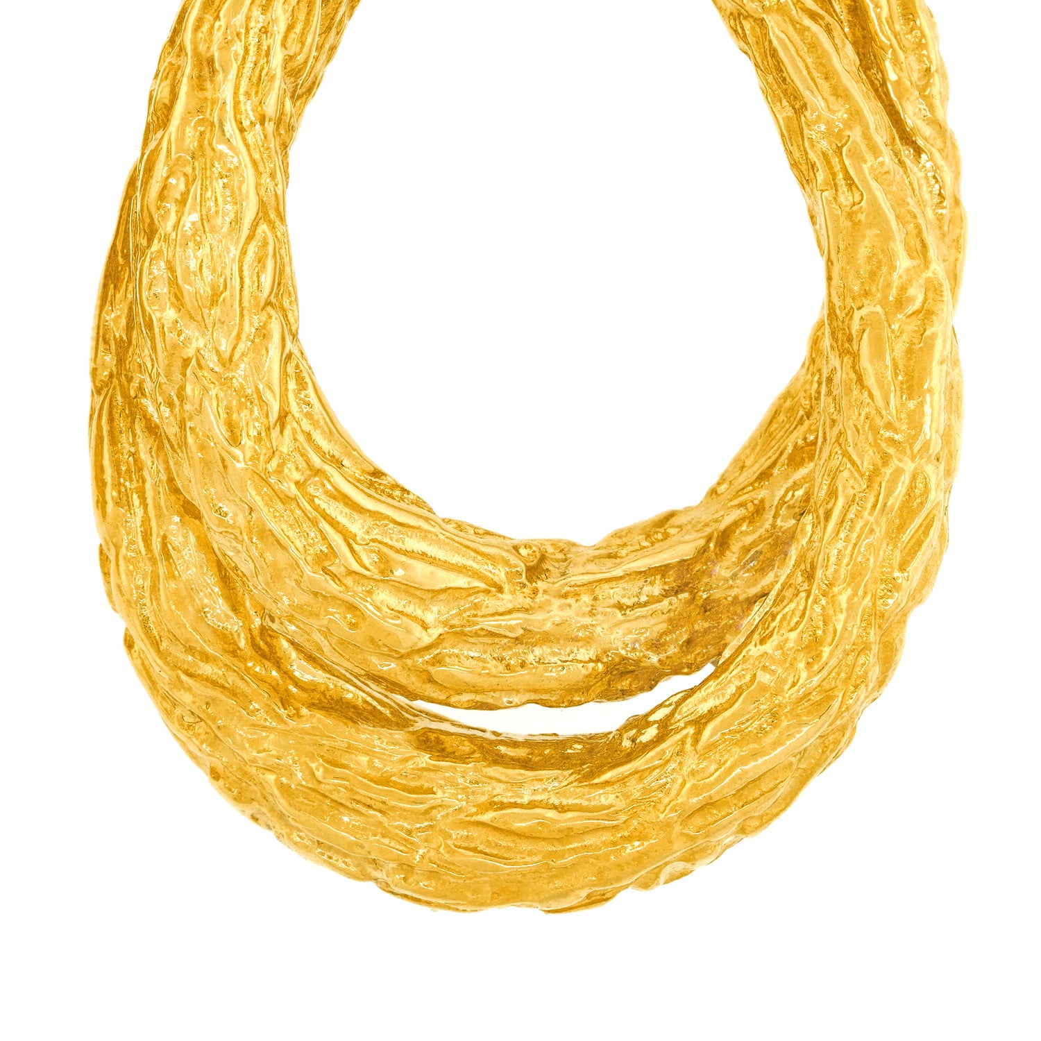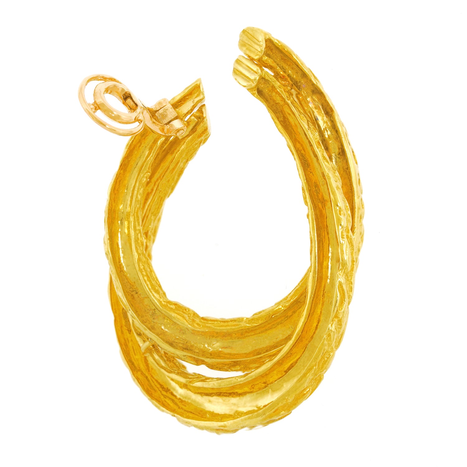 Circa 1970s, 18k, by Boucheron, Paris, France. Featuring organo-chic texture, a wonderful double hoop form, and epic size, these earrings are 18k yellow gold perfection. Boucheron, renowned for quality and style has been the cornerstone of Parisian jewelry fashion since 1858. Particularly fabulous, these versatile earrings effortlessly transition from day to night. They have a comfortable elegance that goes with everything.  Original box included.  Excellent condition.