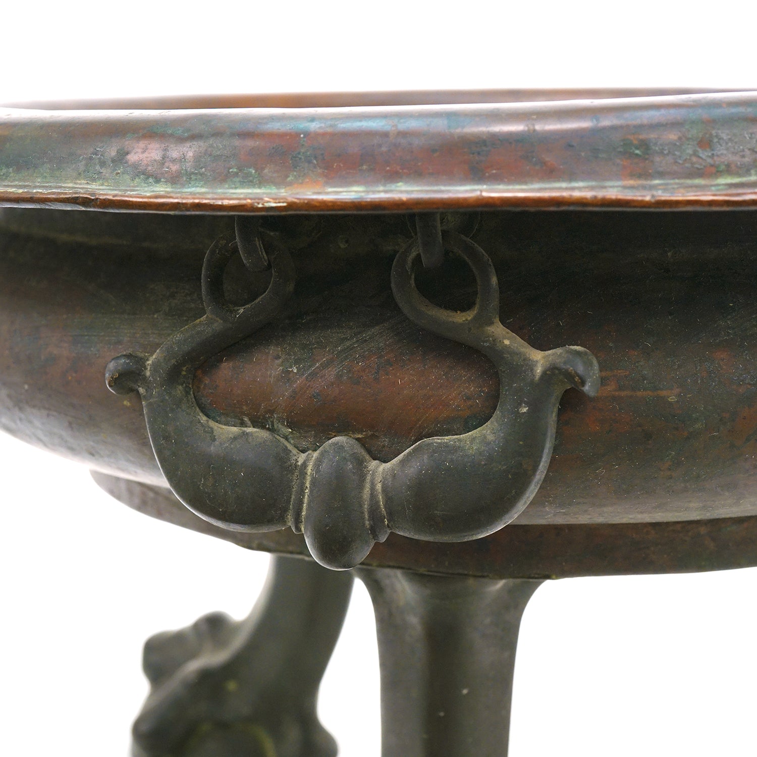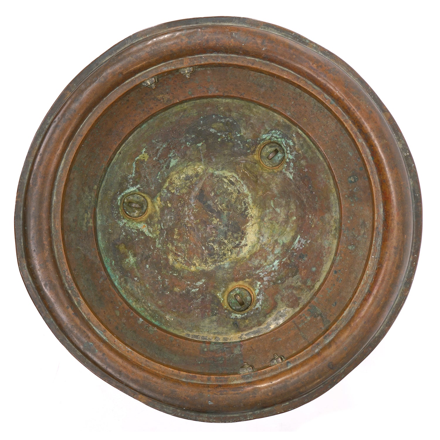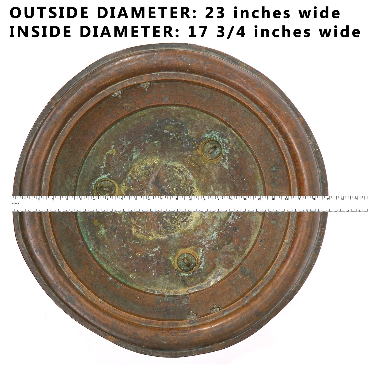 Noted: We have left the original patina on the copper. If desired, it can be polished to a bright finish.