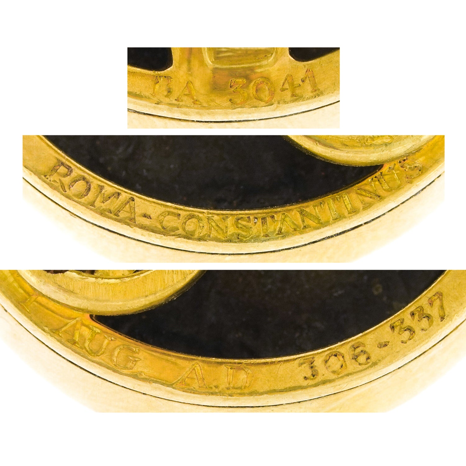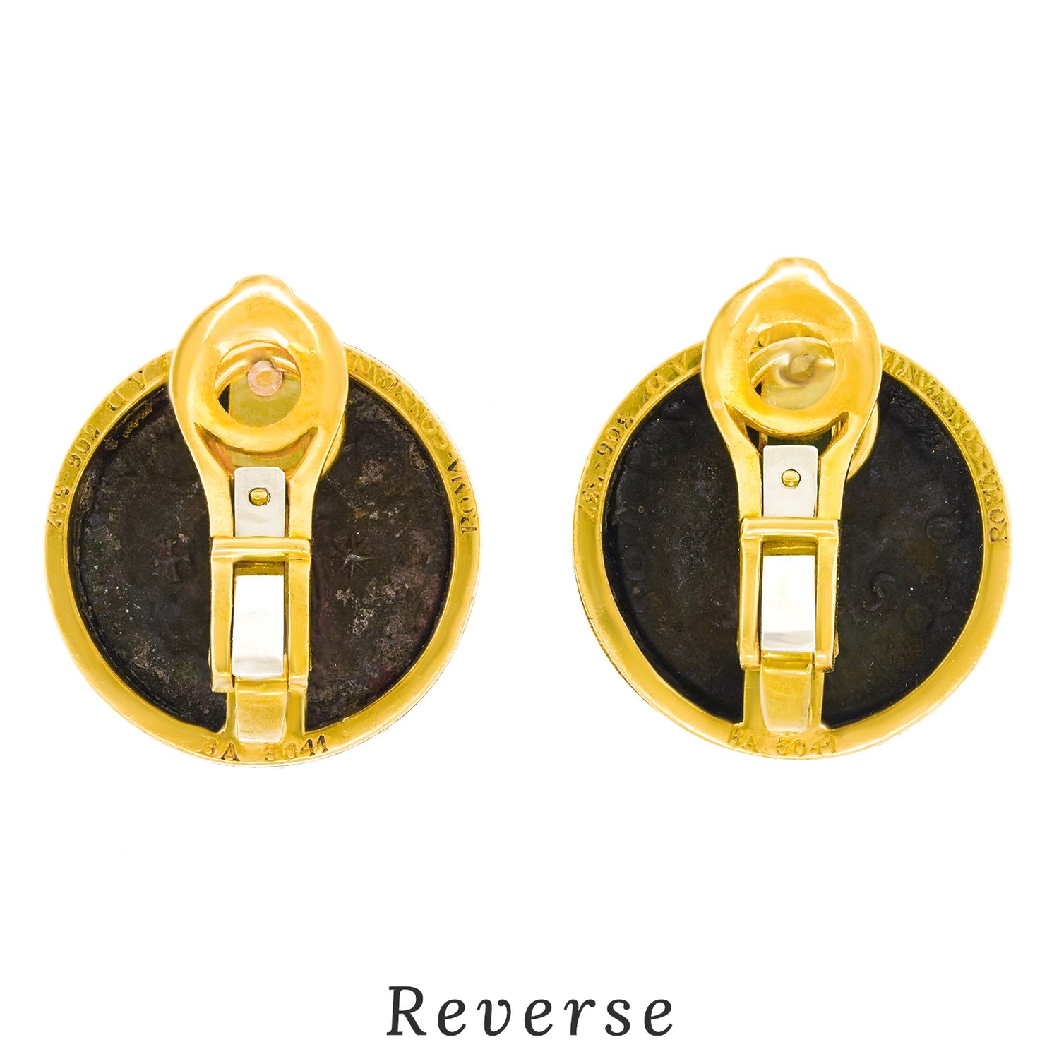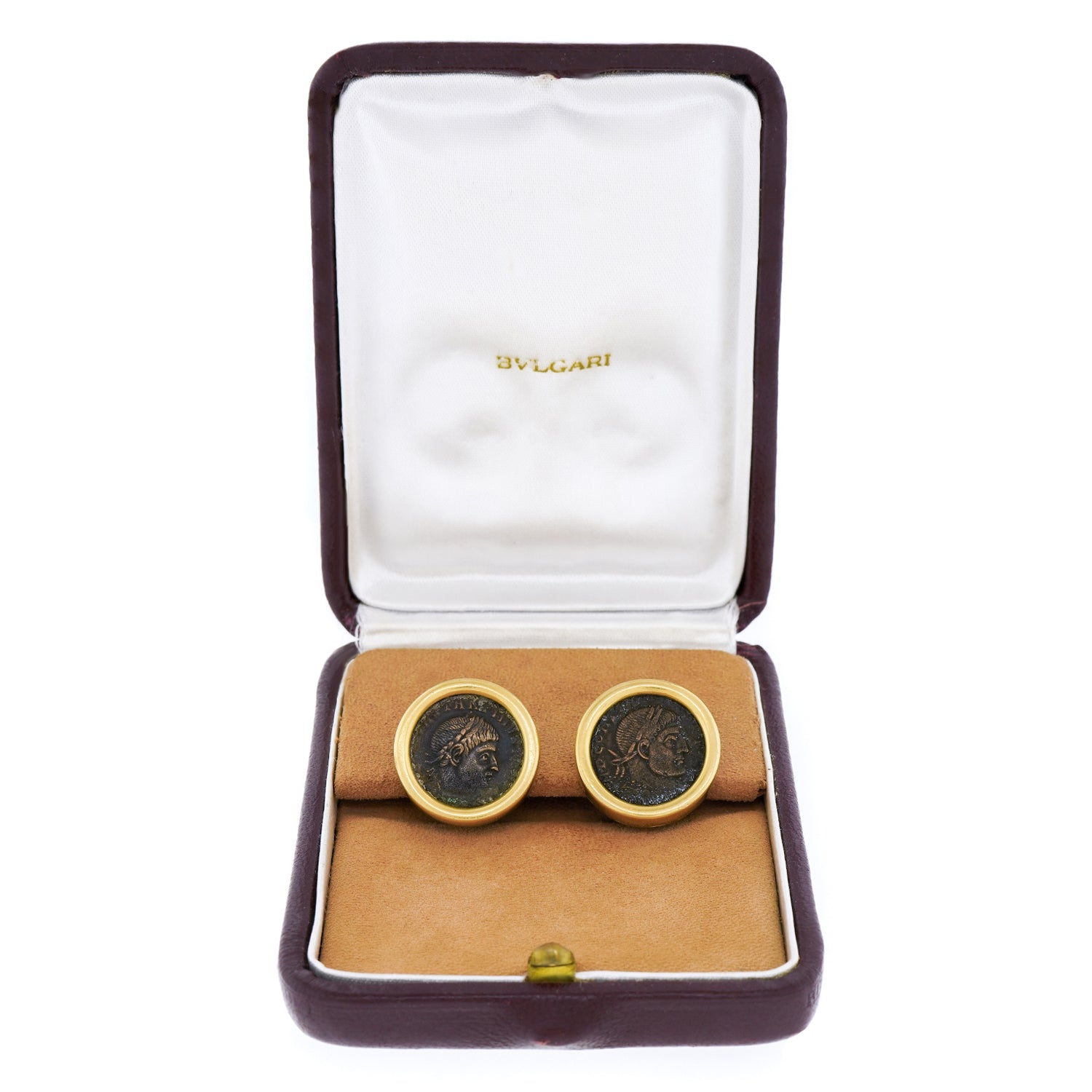 Circa 1970s, 18k, attributed to Bvlgari, Italy. These classic Bvlgari earrings are set with coins featuring Emperor Constantine dating from 306-307 AD. Framed in eighteen-karat gold, they are the ultimate in everyday chic. Well made and in excellent condition.