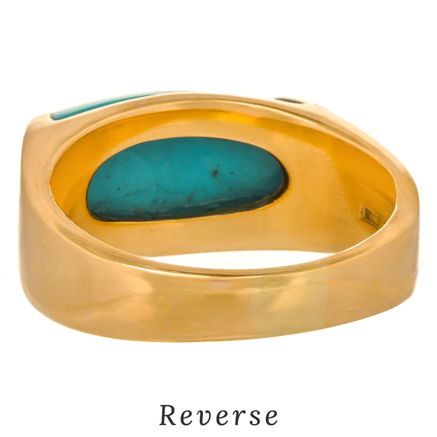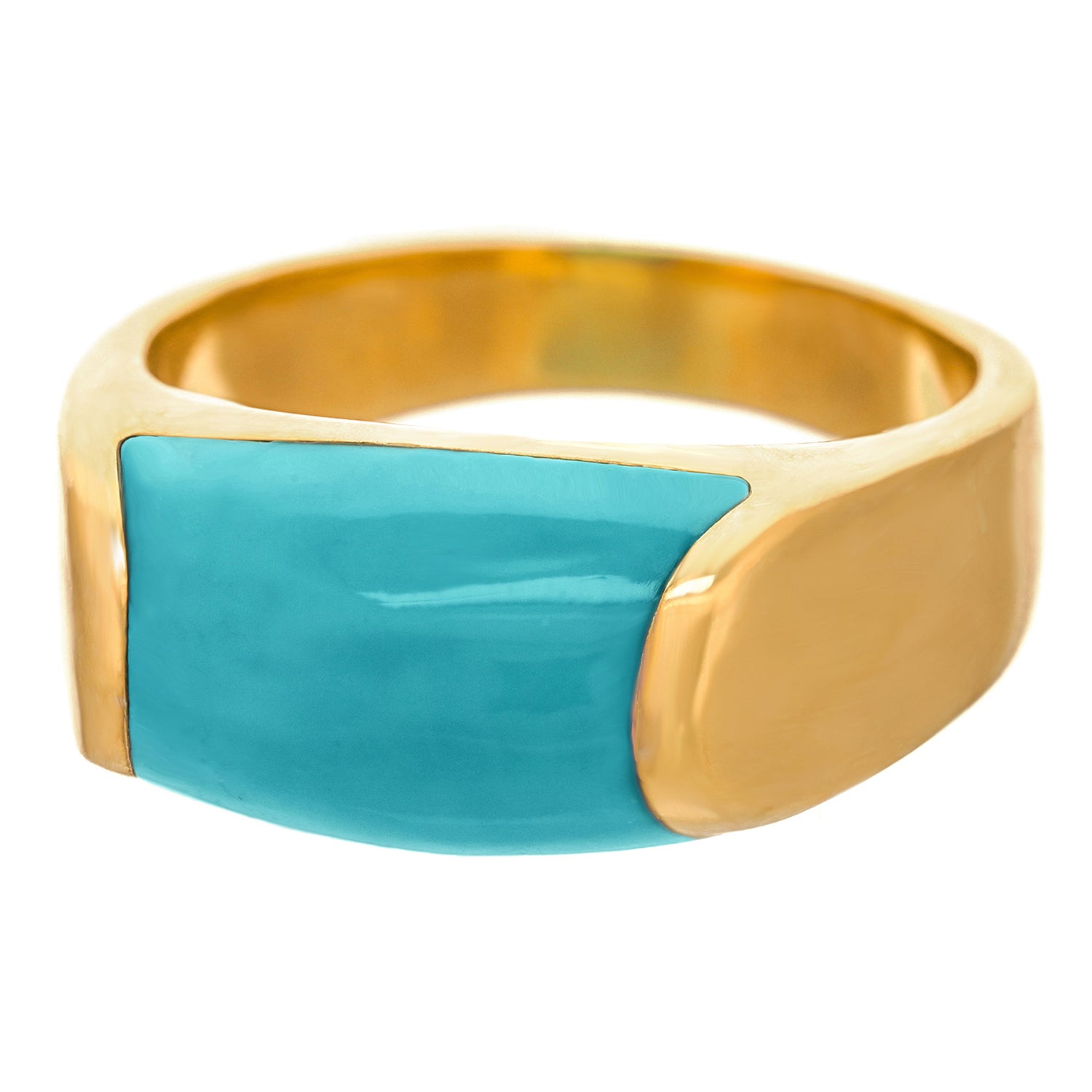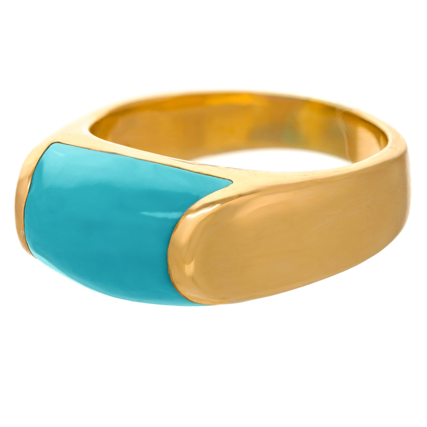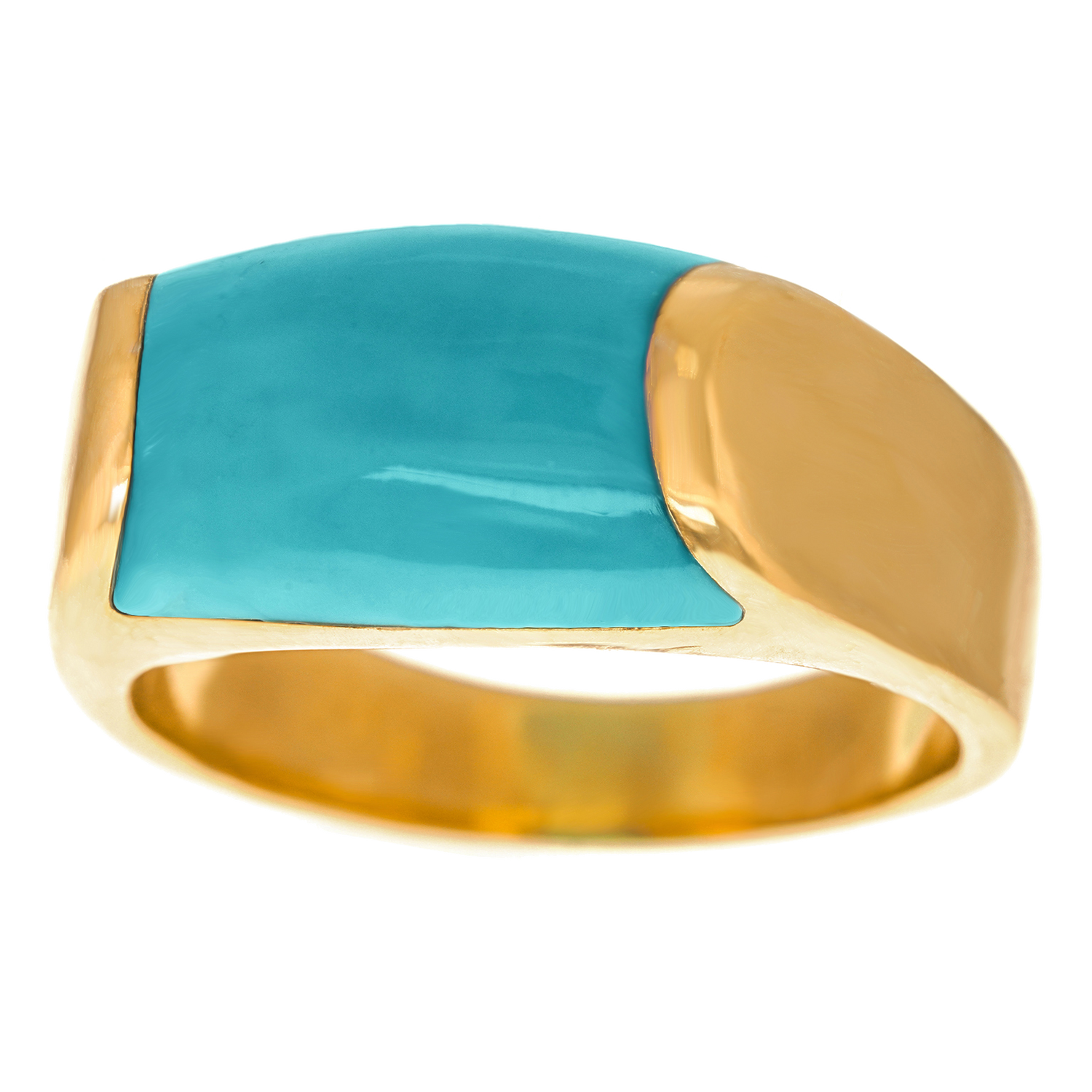 Circa 1990s, 18k, by Bvlgari, Italy. Bvlgari style at its everyday Italian best! This Tronchetto ring is set with gorgeous turquoise. Perfect for everyday wear, this colorful ring is wonderful alone or fabulous as part of a stack. Effortlessly dressing up or down, it is superbly fabricated and in excellent condition.