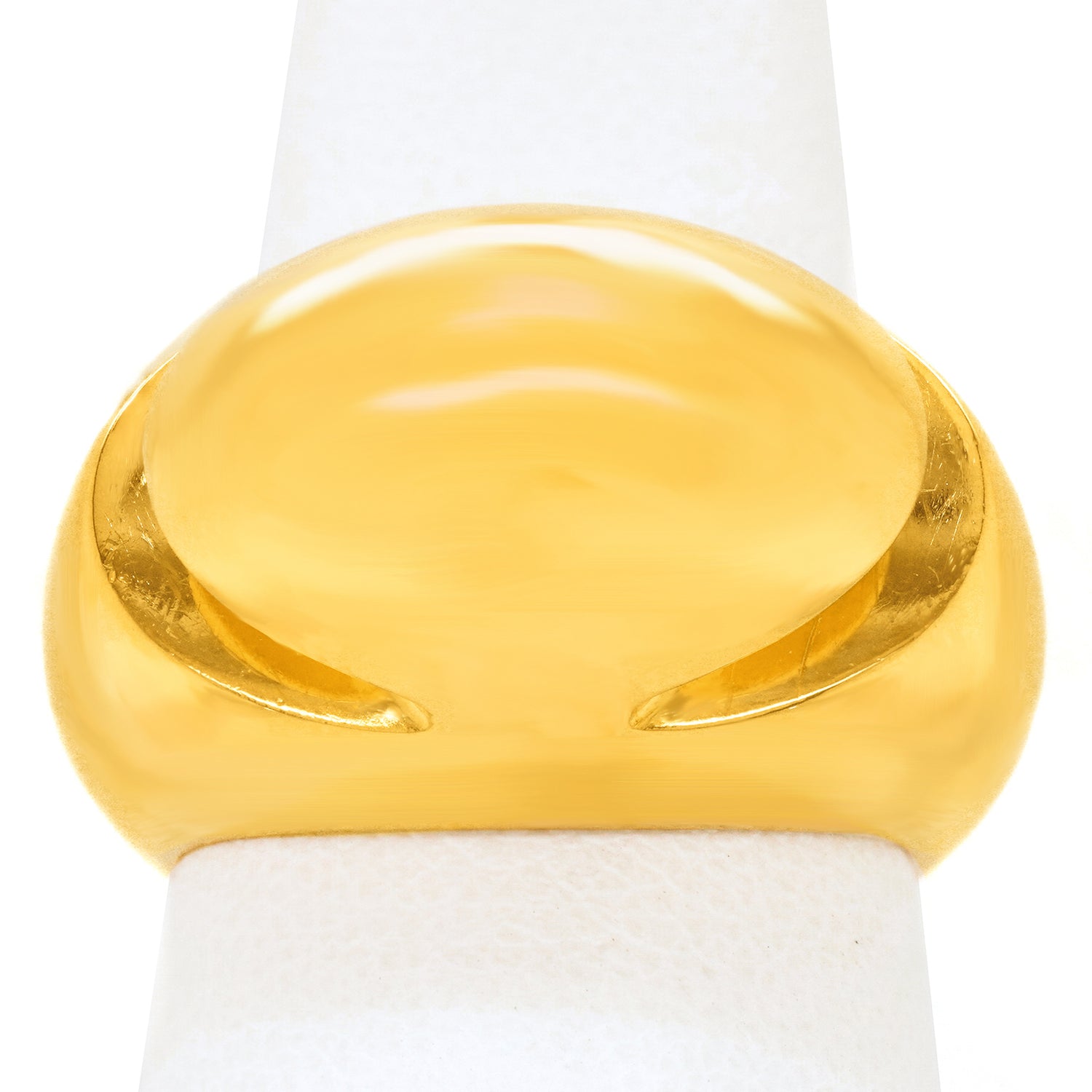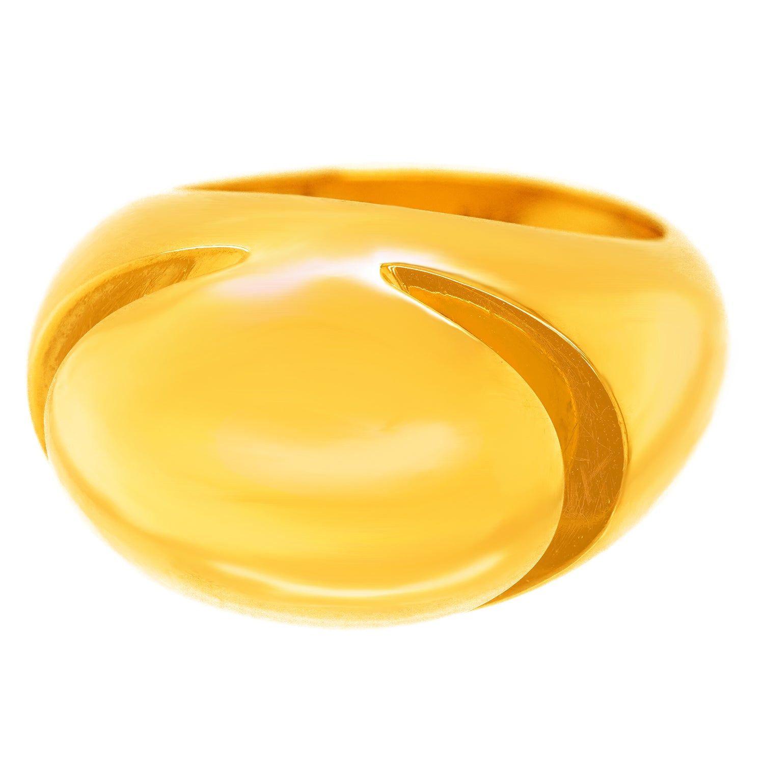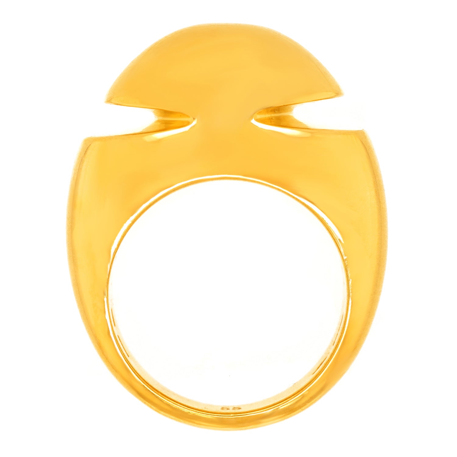 Circa 2000s, 18k, by Bvlgari, Italy. Count on Bvlgari to make it chic! Count on Bvlgari to make it cool! This heavy 18k yellow gold ring is all about sleek curves and crisp angles. Effortless, it is a visually enticing piece of wearable art. Excellent condition.