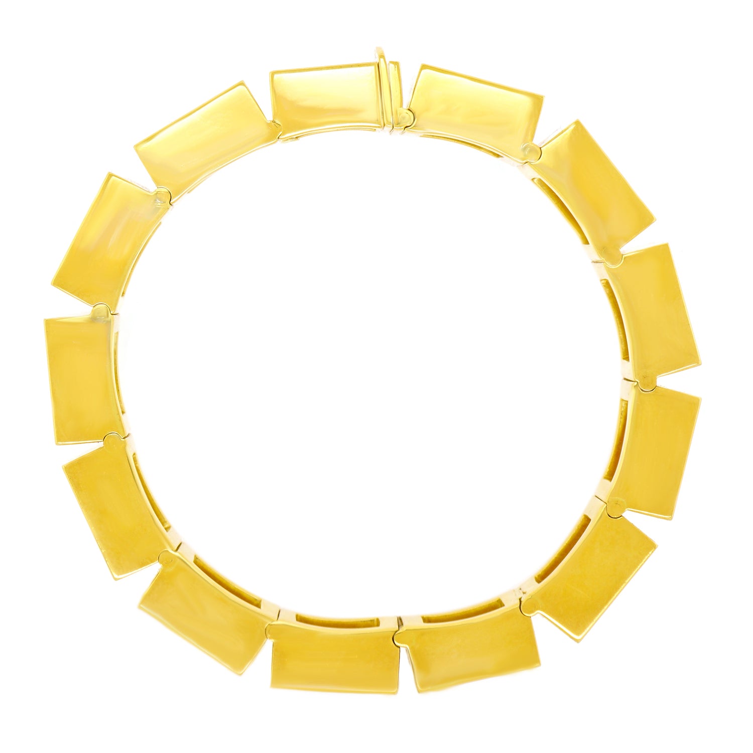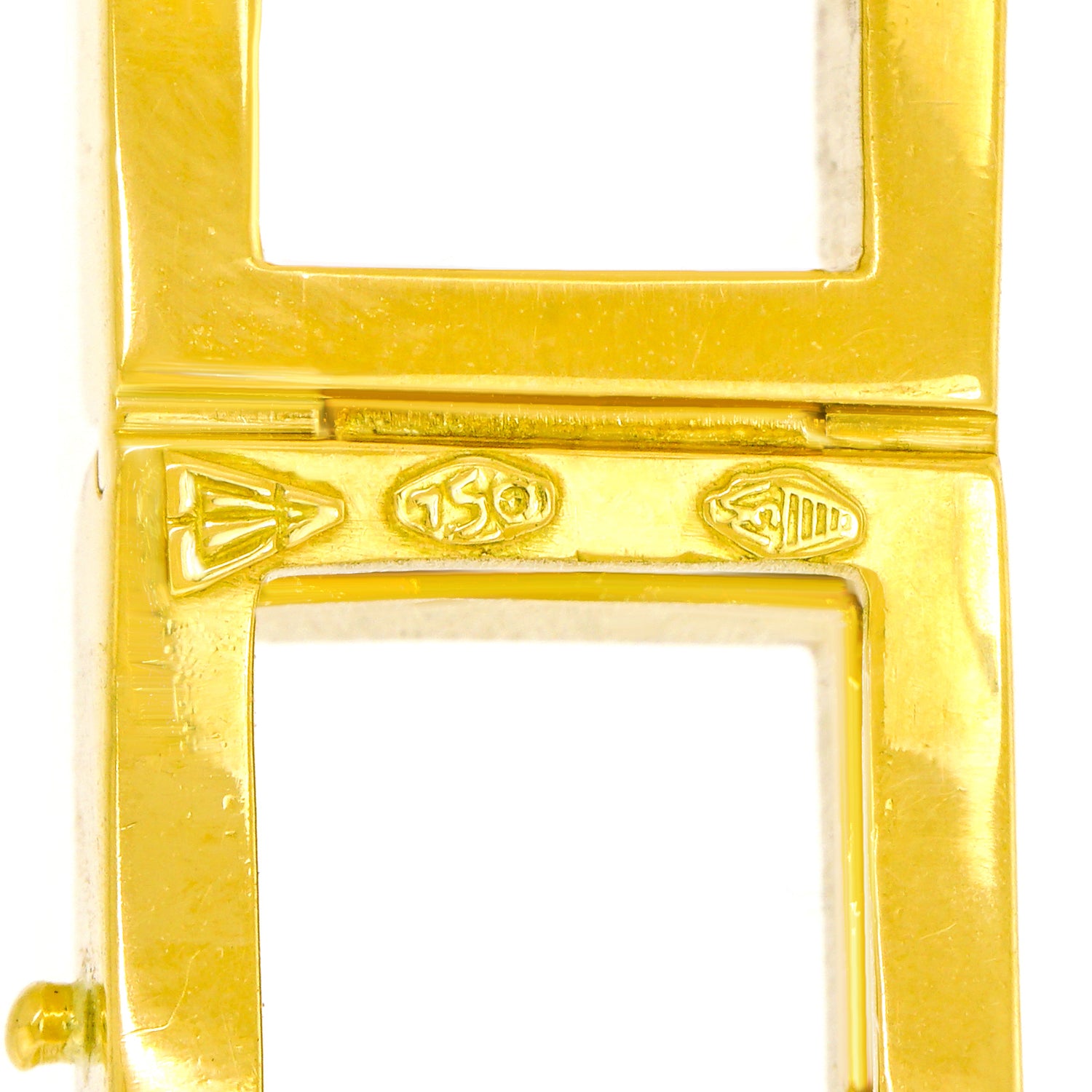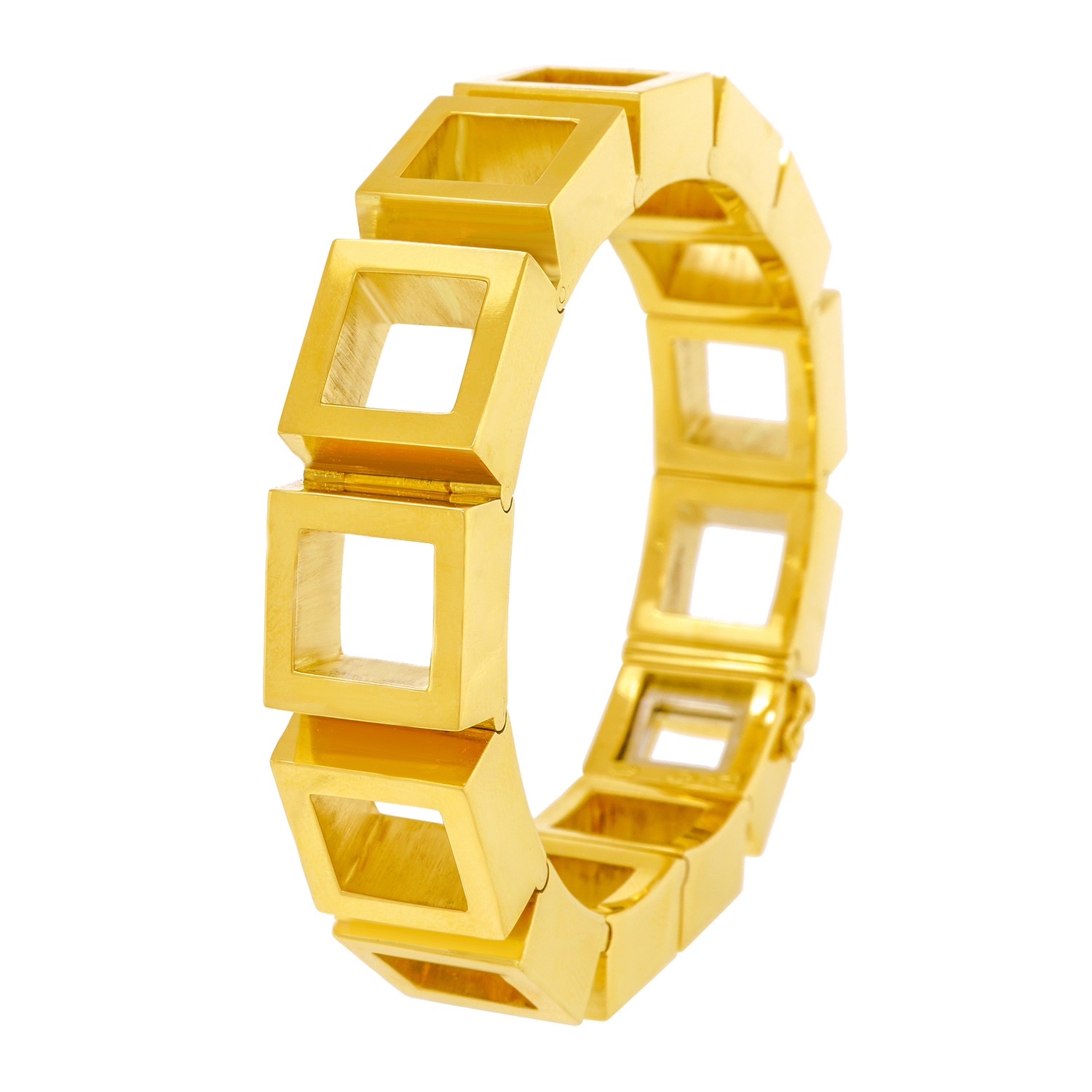 Circa 1960s, 18k, by Weingrill for Tannler of Zurich, made in Italy.  This refined modernist bracelet by Carlo Weingrill for Tannler of Zurich is sixties chic incarnate. Its elegantly understated look features a geometric design that effortlessly becomes the style signature in any moment of fashion. Reflecting the superb quality and spectacular creativity both firms were known for, it is in excellent condition.