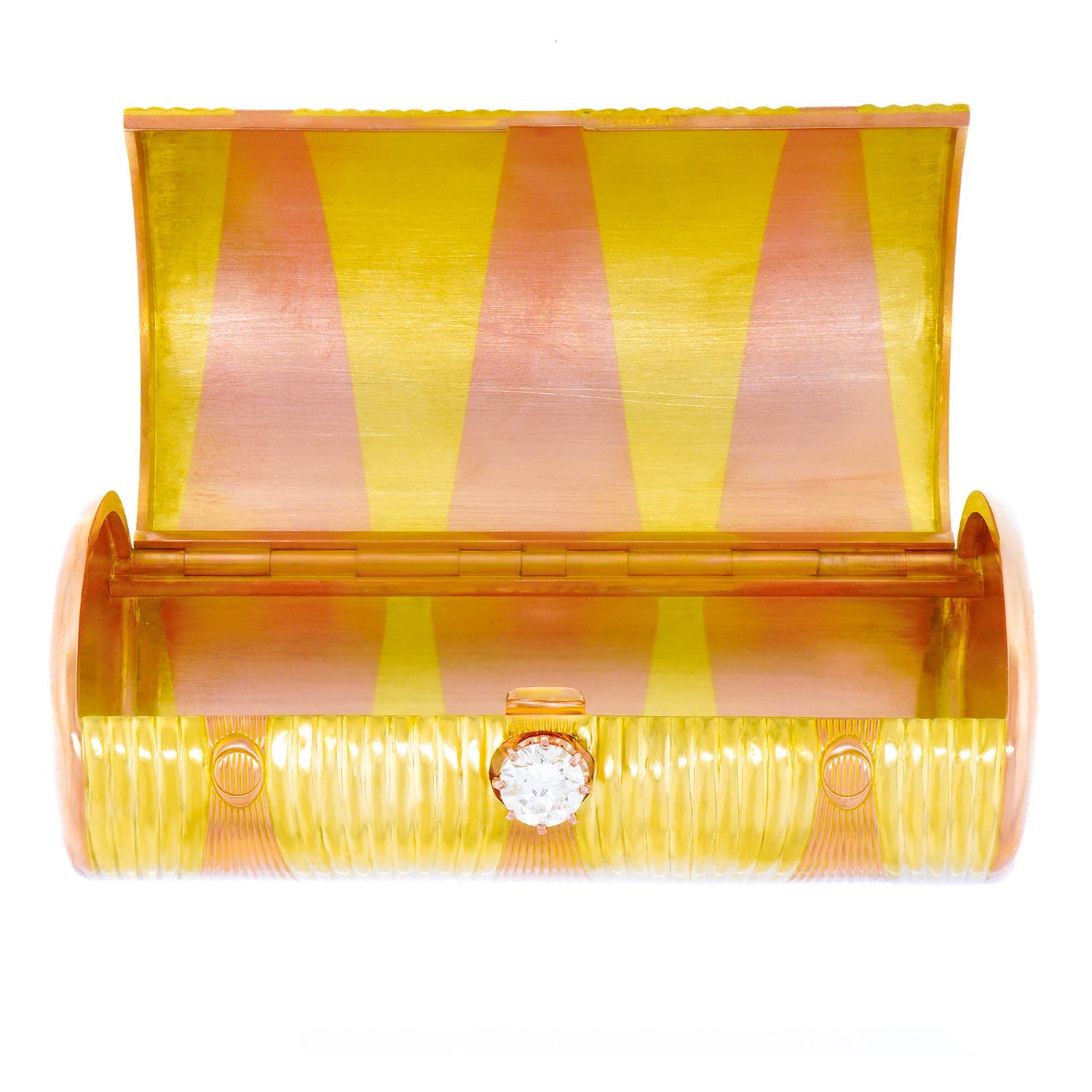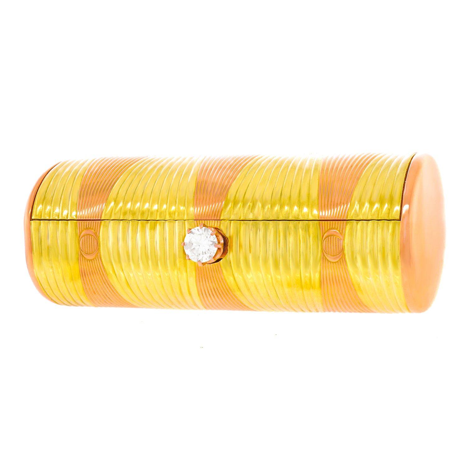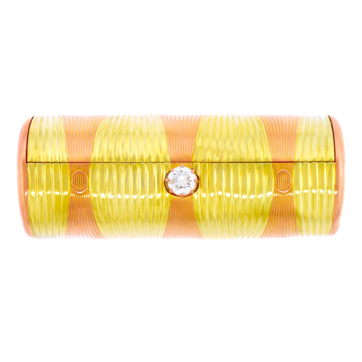 Circa 1950s, 18k, by Cartier, London. Stunning, rare, and authentic, this Cartier London 18k bi-color gold box will make an exquisite addition to any collection. Heavy ( 134.6 grams) in the hand with sublime good looks, it is easy to understand why gold boxes have been the treasured collectible of royalty for centuries. Meticulously fabricated and in excellent condition.