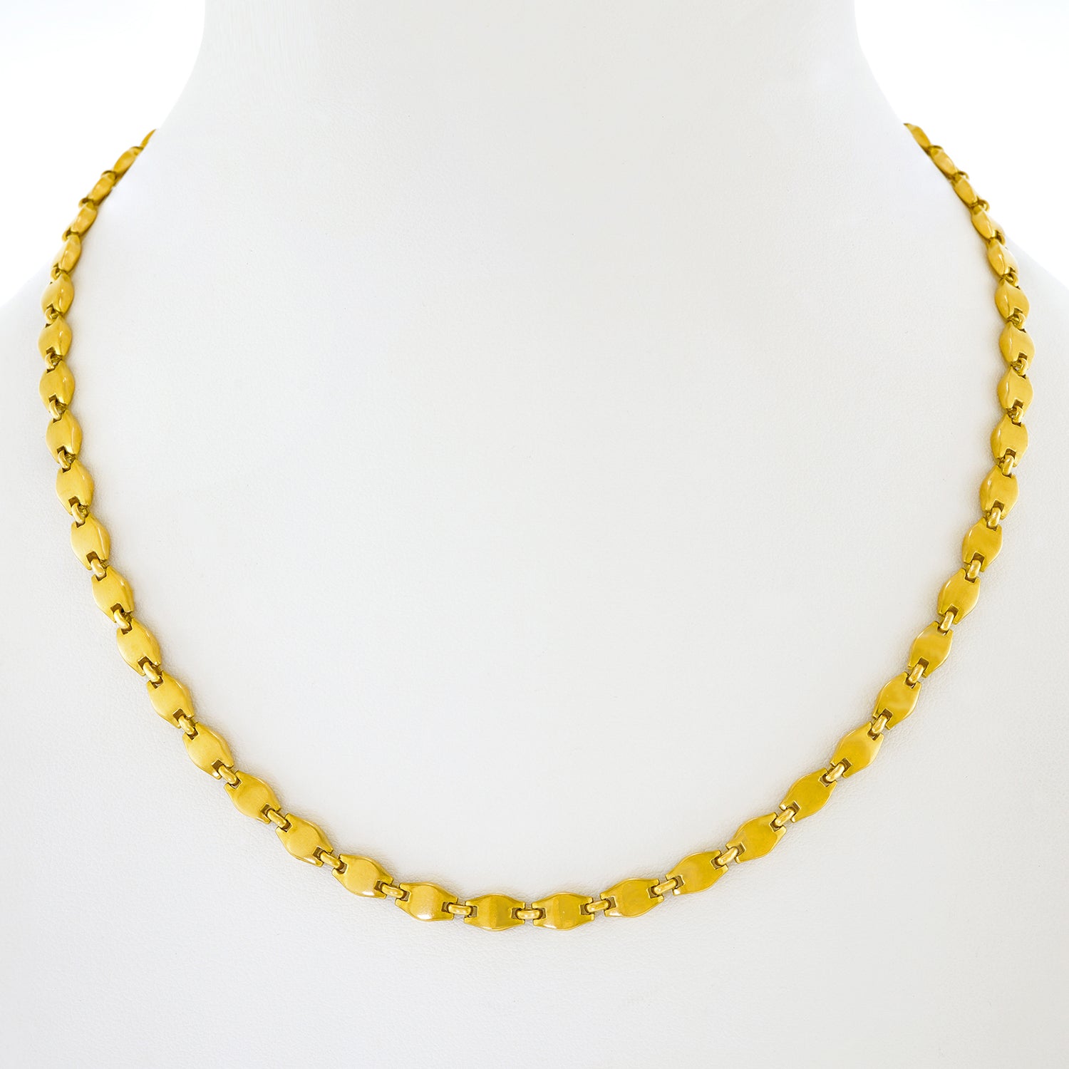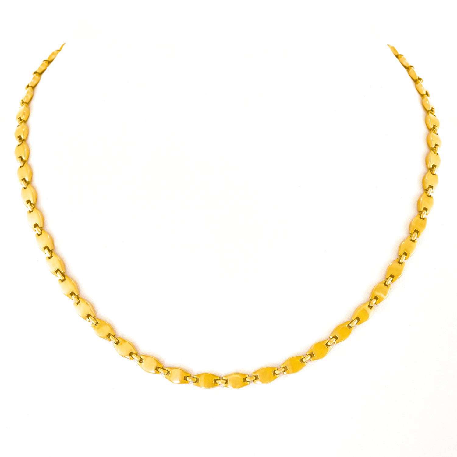 Circa 1960s, 18k, by Cartier. This chic 18k yellow gold necklace by Cartier features a unique modernist interpretation of their iconic anchor link motif. Brilliantly, designed and fabricated to Cartier's high standard, this flawless everyday necklace is in excellent condition.