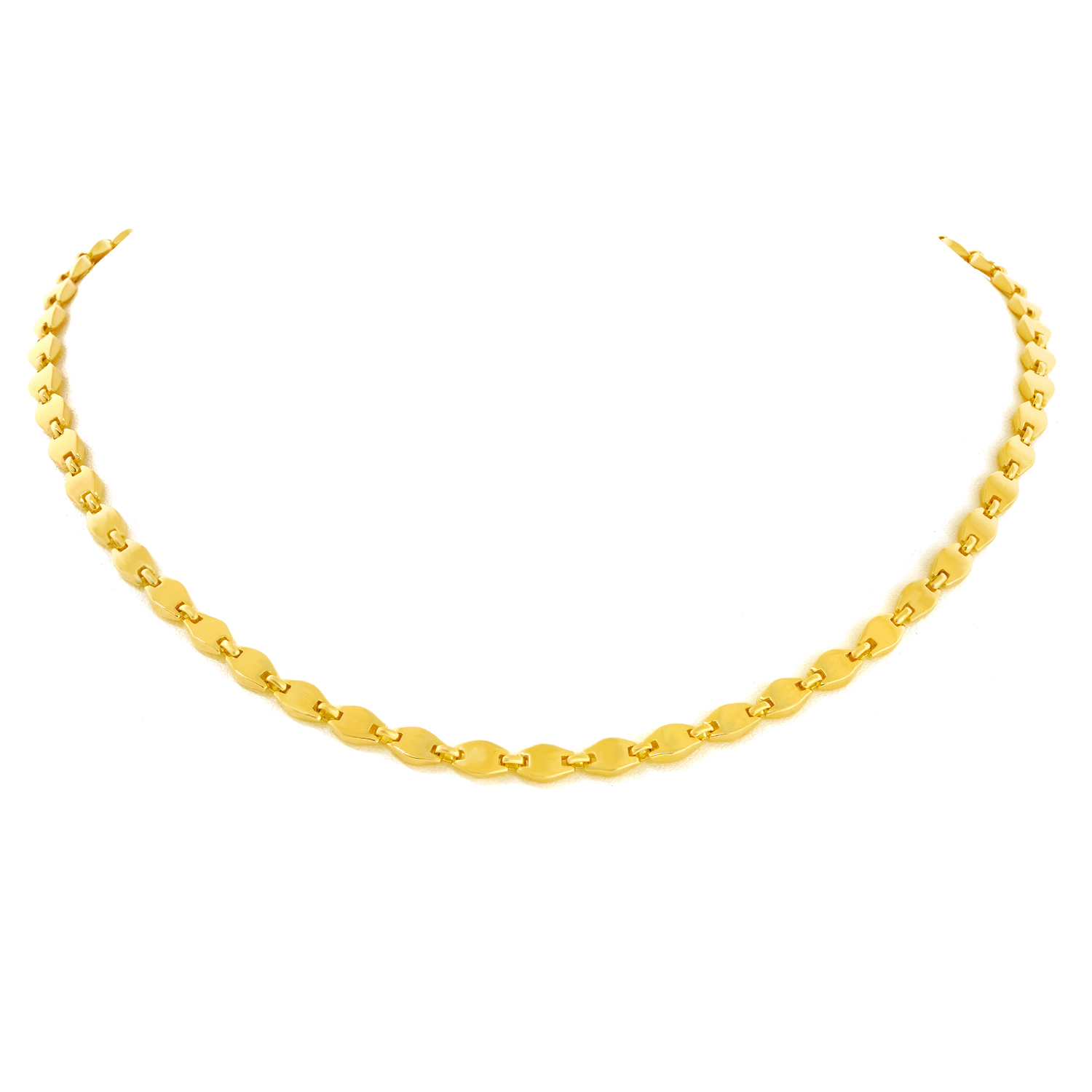 Circa 1960s, 18k, by Cartier. This chic 18k yellow gold necklace by Cartier features a unique modernist interpretation of their iconic anchor link motif. Brilliantly, designed and fabricated to Cartier's high standard, this flawless everyday necklace is in excellent condition.