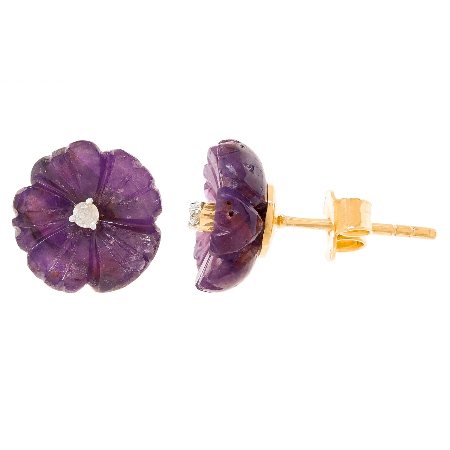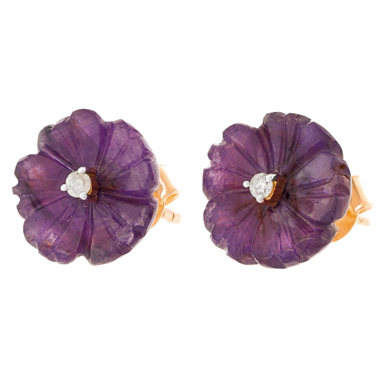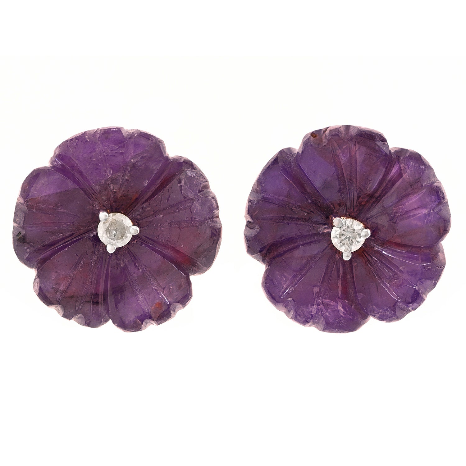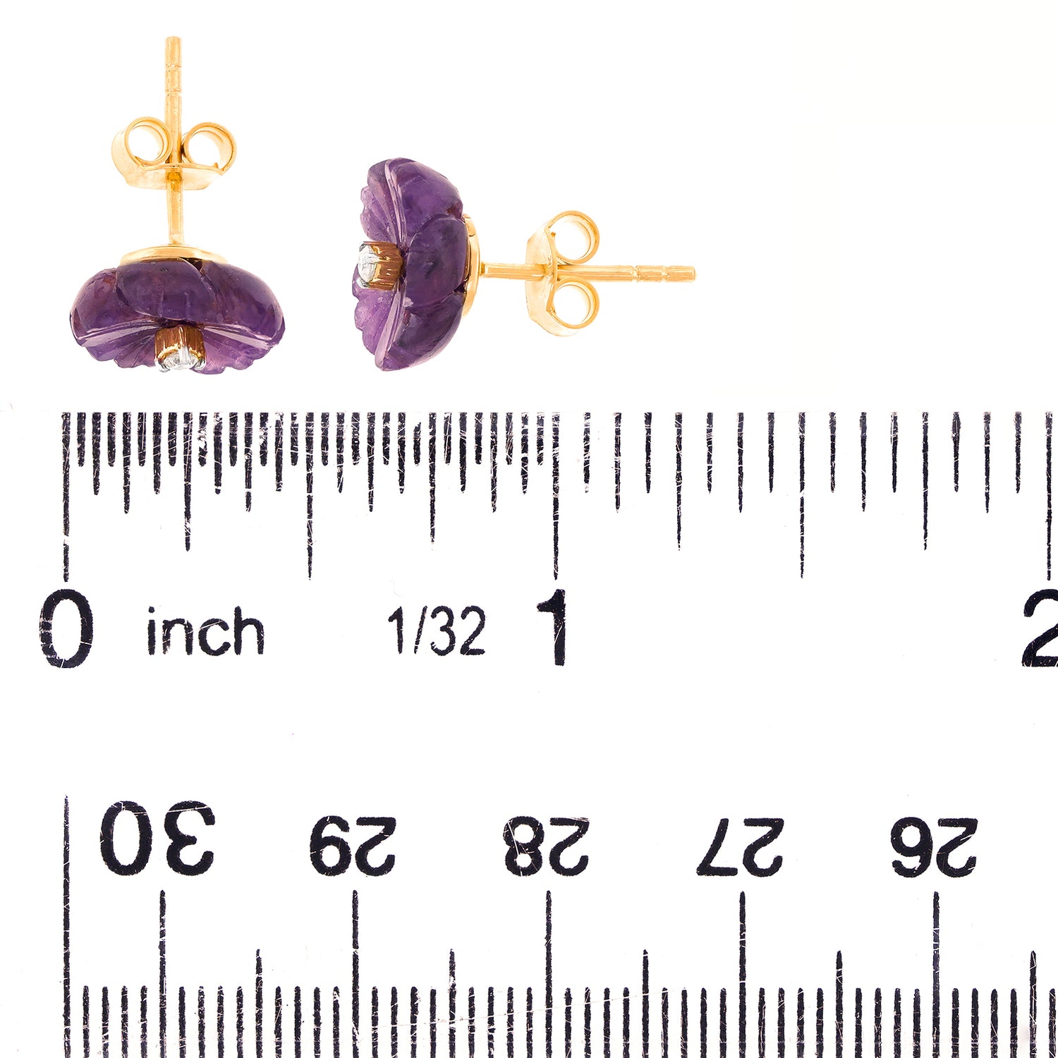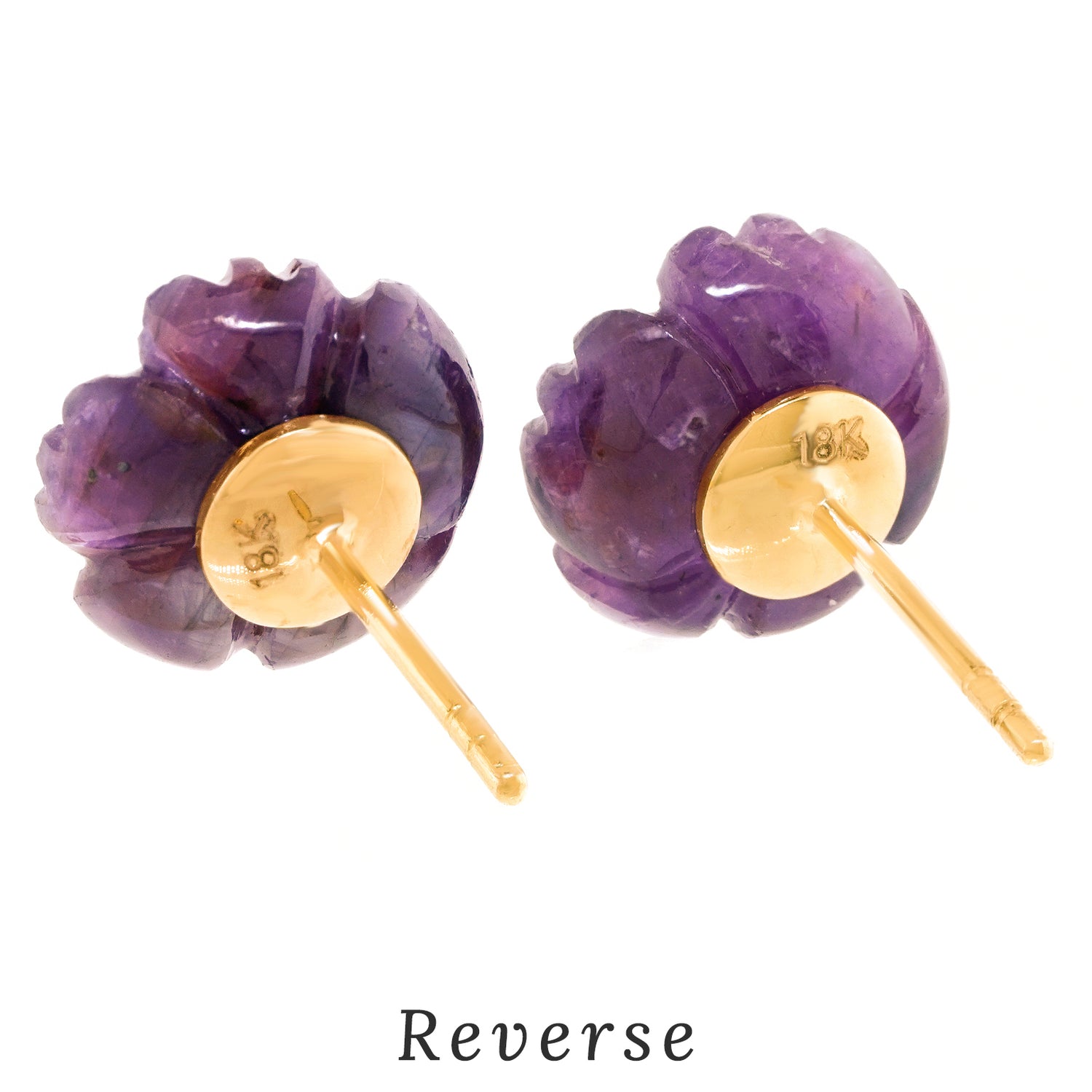 Circa 1980s, 18k. These lush flower earrings of natural purple sapphire and diamond are charming, colorful, and beautifully made. Excellent condition.