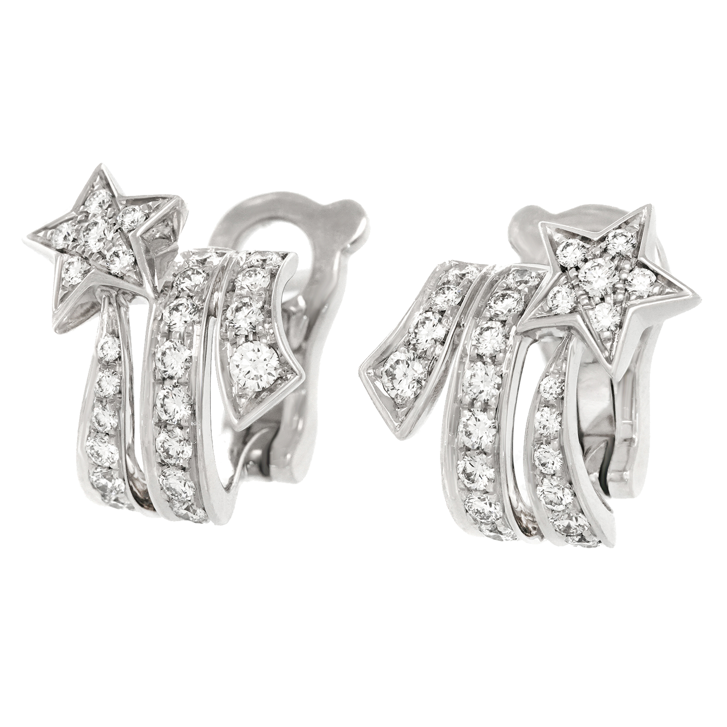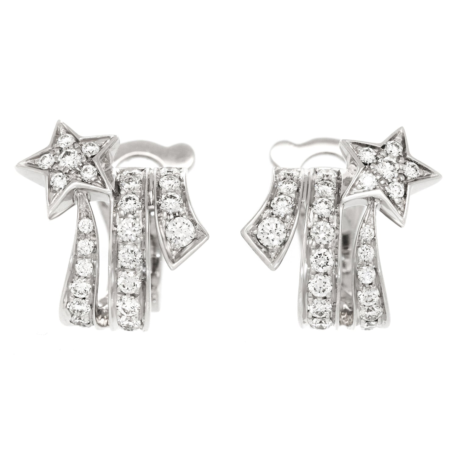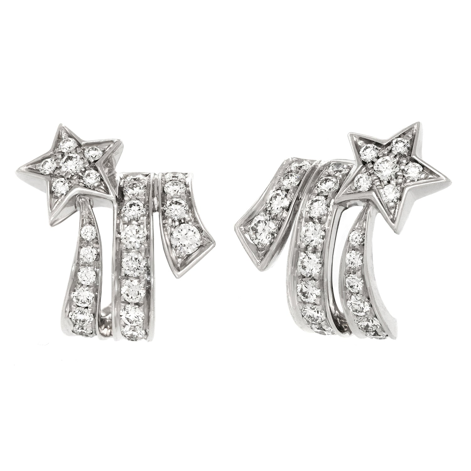 Circa 2000s, 18k, by Chanel, France. “I wanted to cover women in constellations,” said Gabrielle Chanel in 1932. In my opinion, she succeeded! Chanel designs are instantly recognizable. Superbly constructed in eighteen-karat white gold and set with .62 carats of fine white diamonds (F color VS clarity), they feature removable posts so they can be worn as posts or clips. Excellent condition.