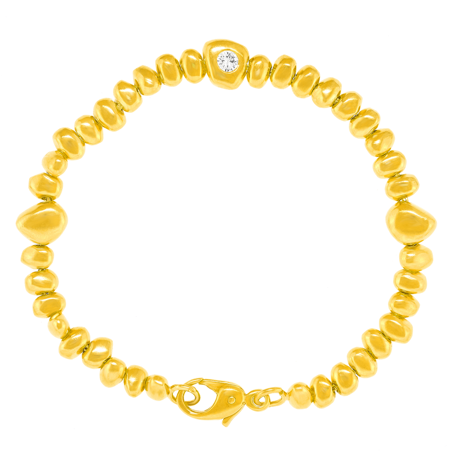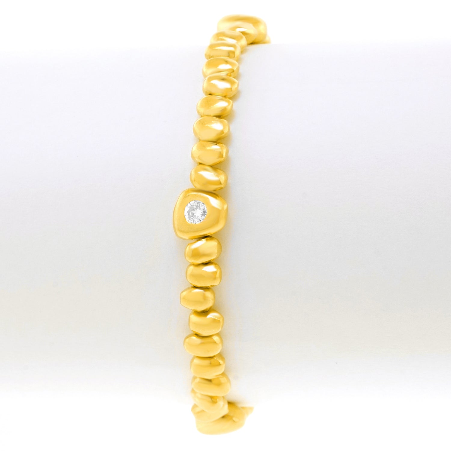Circa 1970s, 18k, by Chaumet, France. This 18k yellow gold bracelet is all about effortless style. Delightfully casual or organo chic elegant, it features delicious drops of gold beads in natural varied organic shapes. Beautifully hand-fabricated, it is in excellent condition.