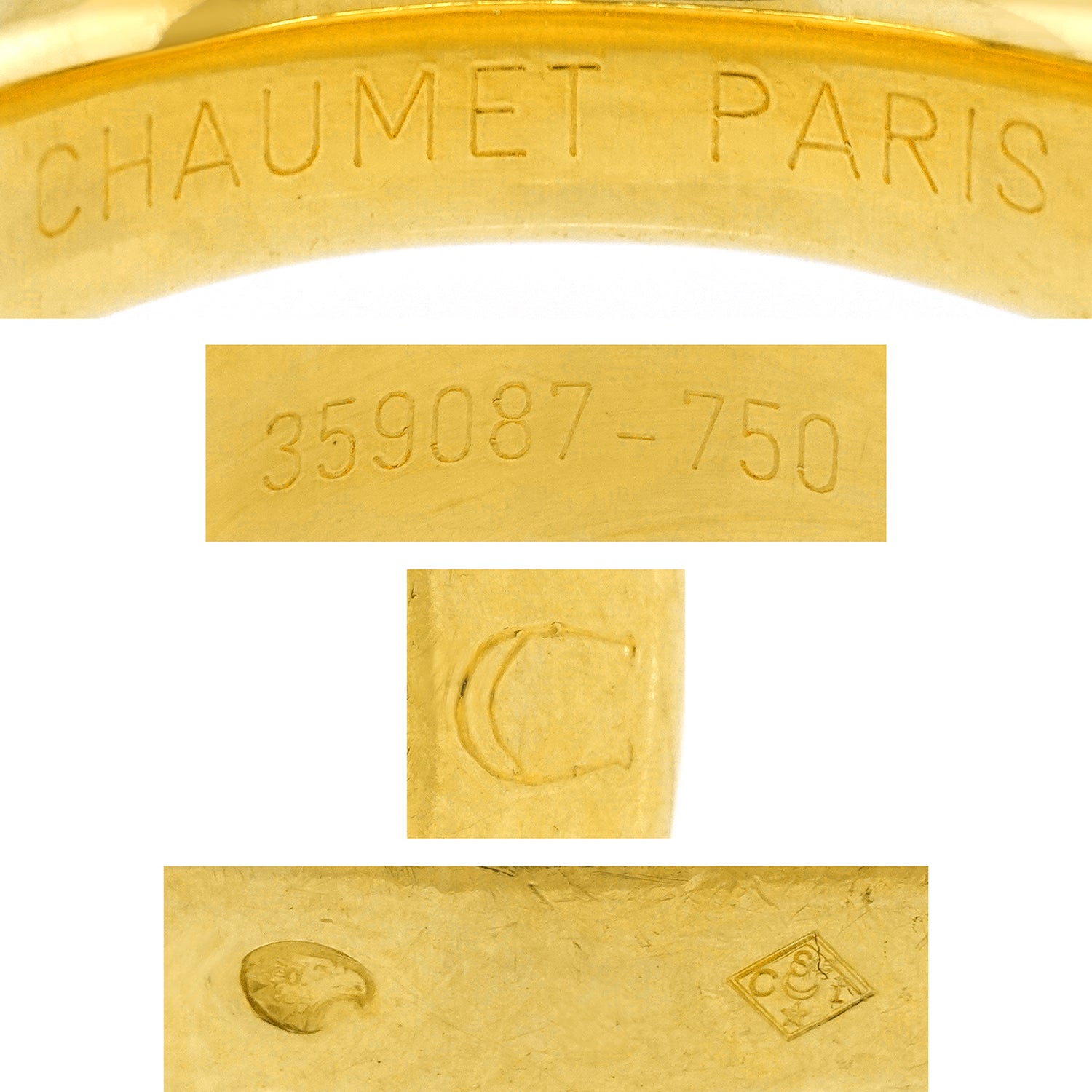 Circa 1990s, 18k, by Chaumet, Paris, France. This elegant yellow gold ring has a chic confident look. Effortlessly dressing up or down, jewels like these rocked the Paris fashion scene for decades. The look is crisp and cool. In a city famous for its jewelers, the Parisian house of Chaumet is especially celebrated. Their long and rich history dates back to 1780. Excellent condition.